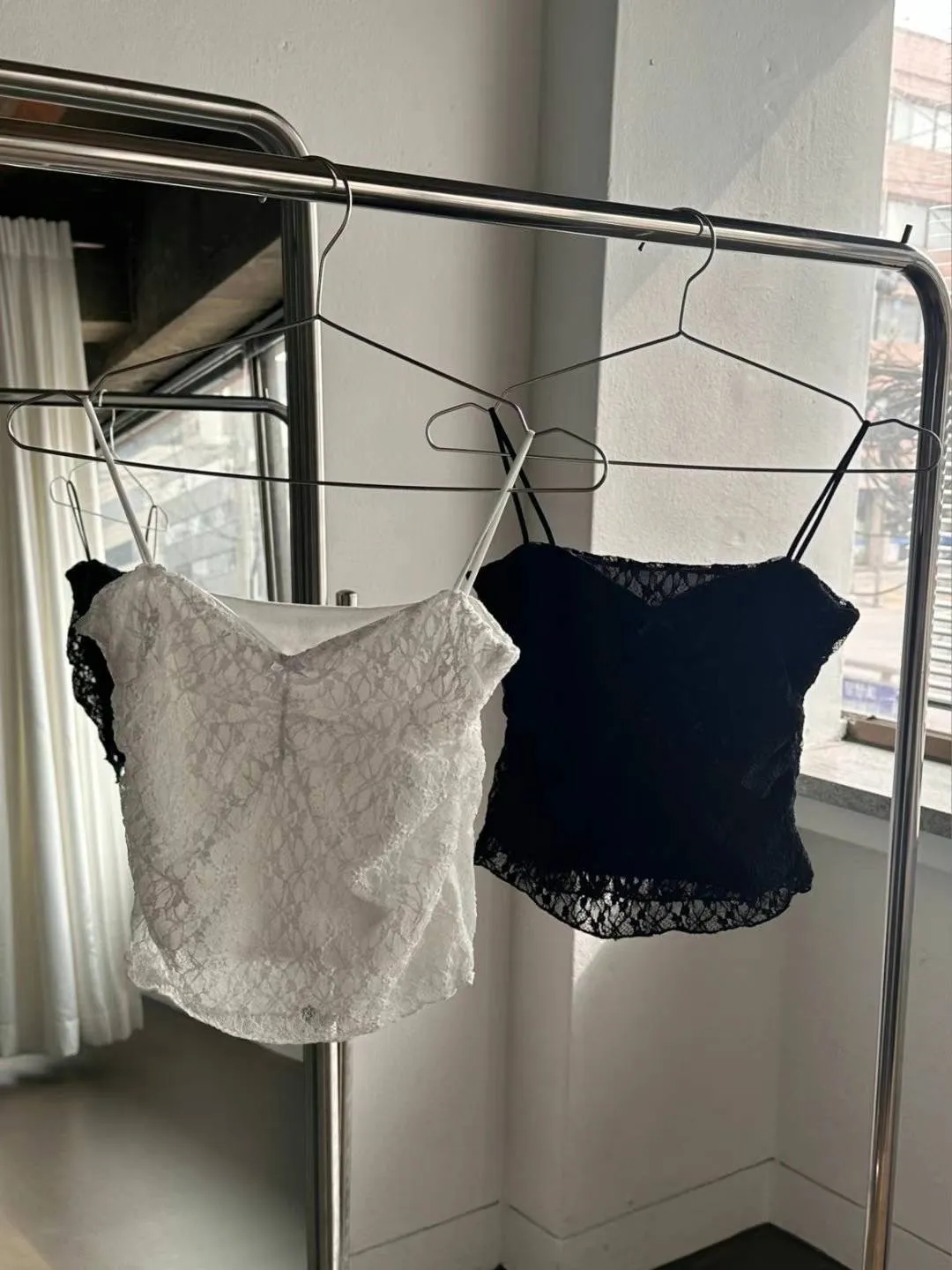 HJ218軟蕾絲透光視覺細肩帶背心 白 黑 官網價$510 線上價$480