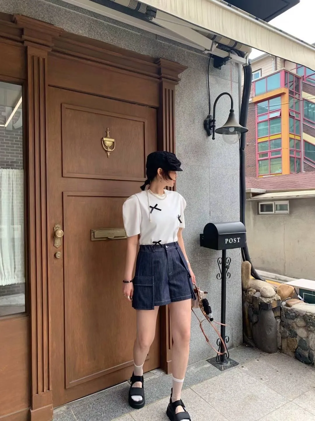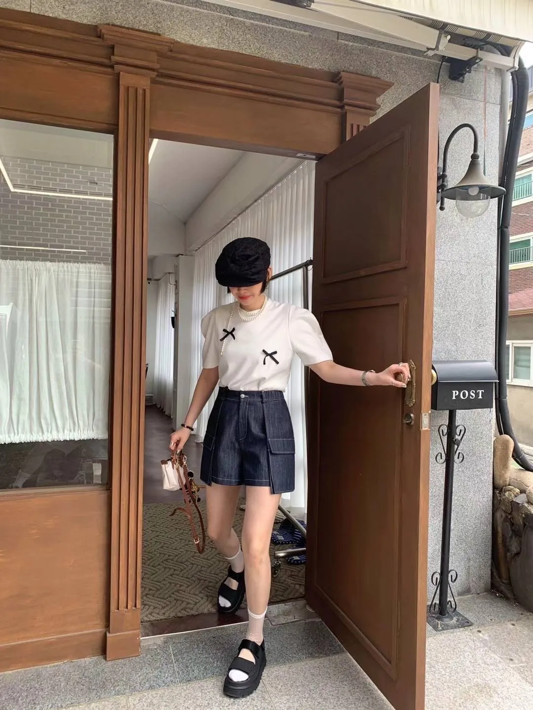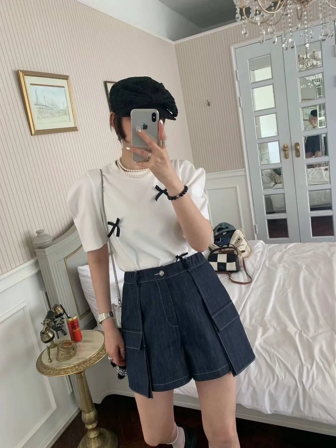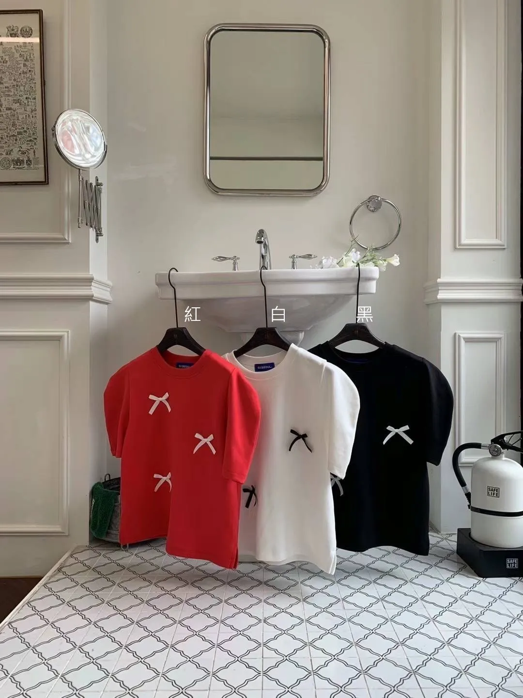 HJ237潮流三緞帶蝴蝶結Tshirt 白 紅 黑 官網價$720 線上價$690