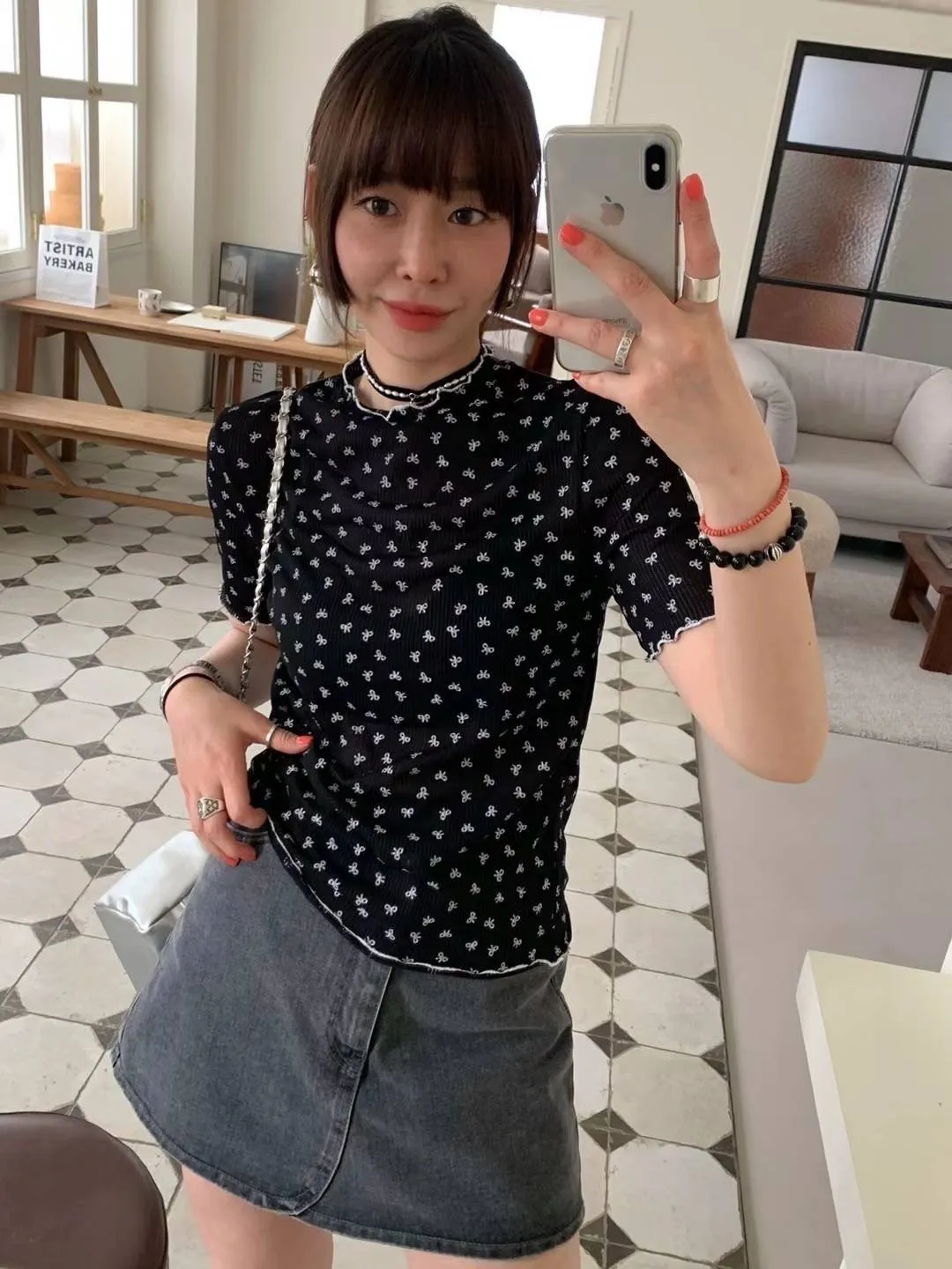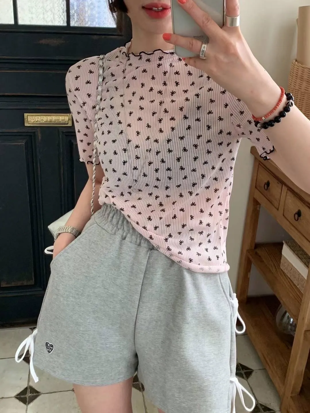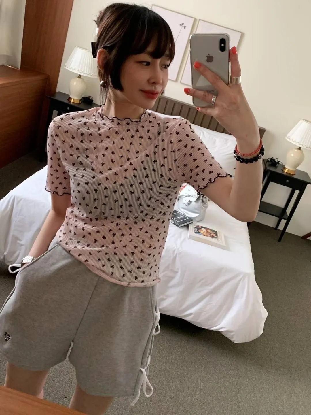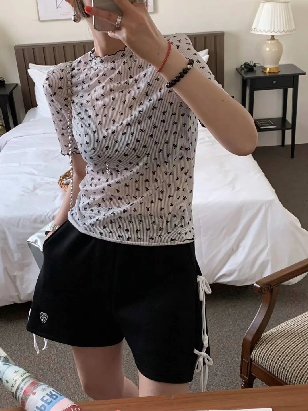 HJ240極薄款潮流滿版小小蝴蝶結木耳上衣