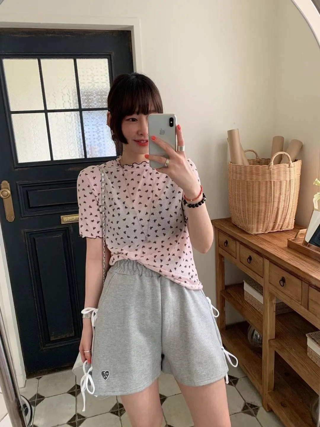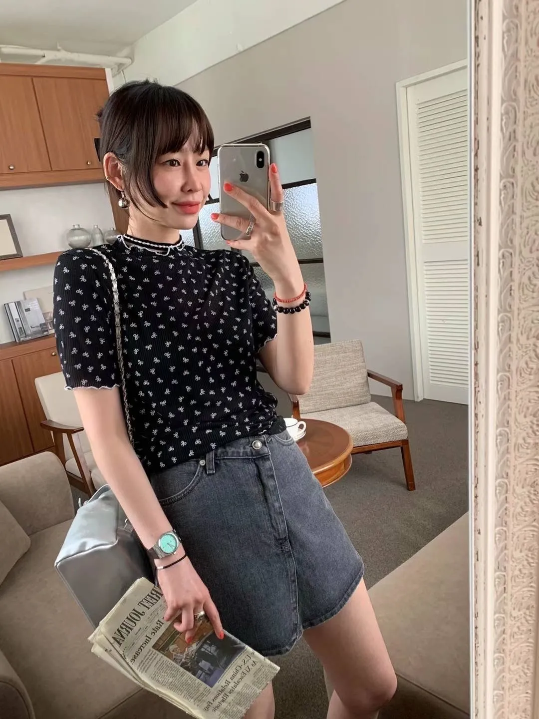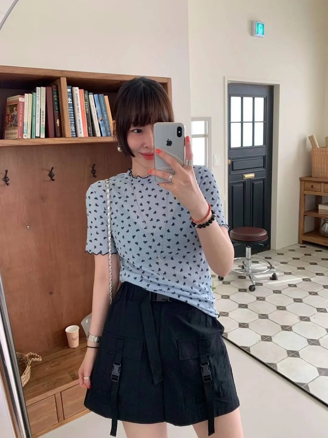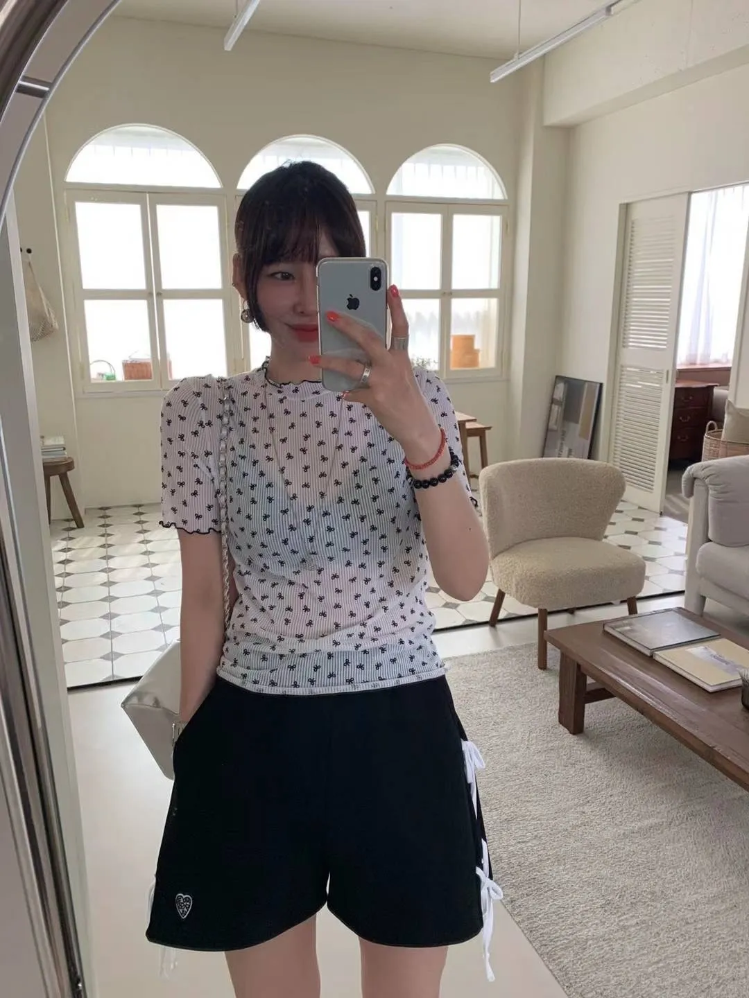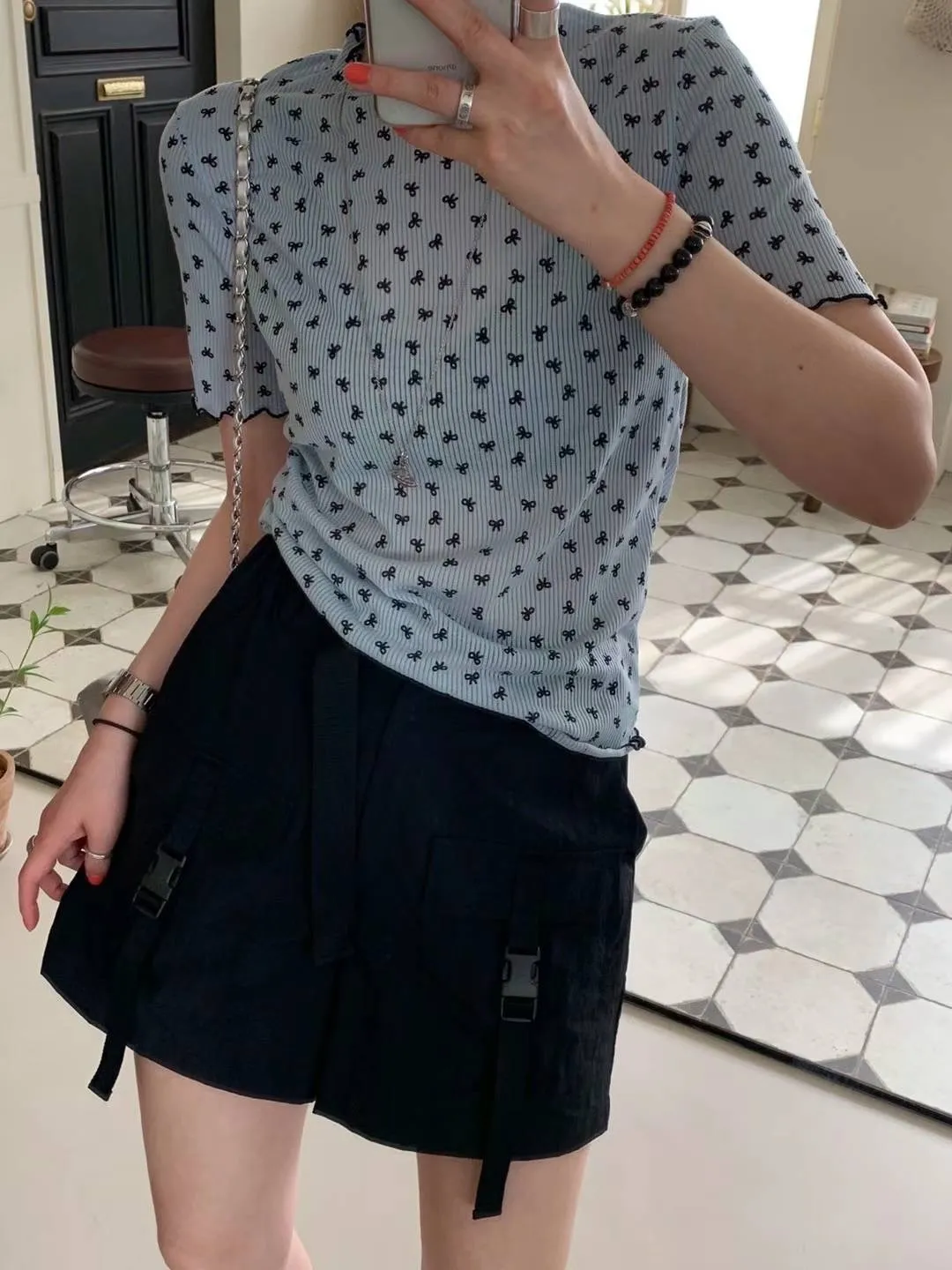 HJ240極薄款潮流滿版小小蝴蝶結木耳上衣