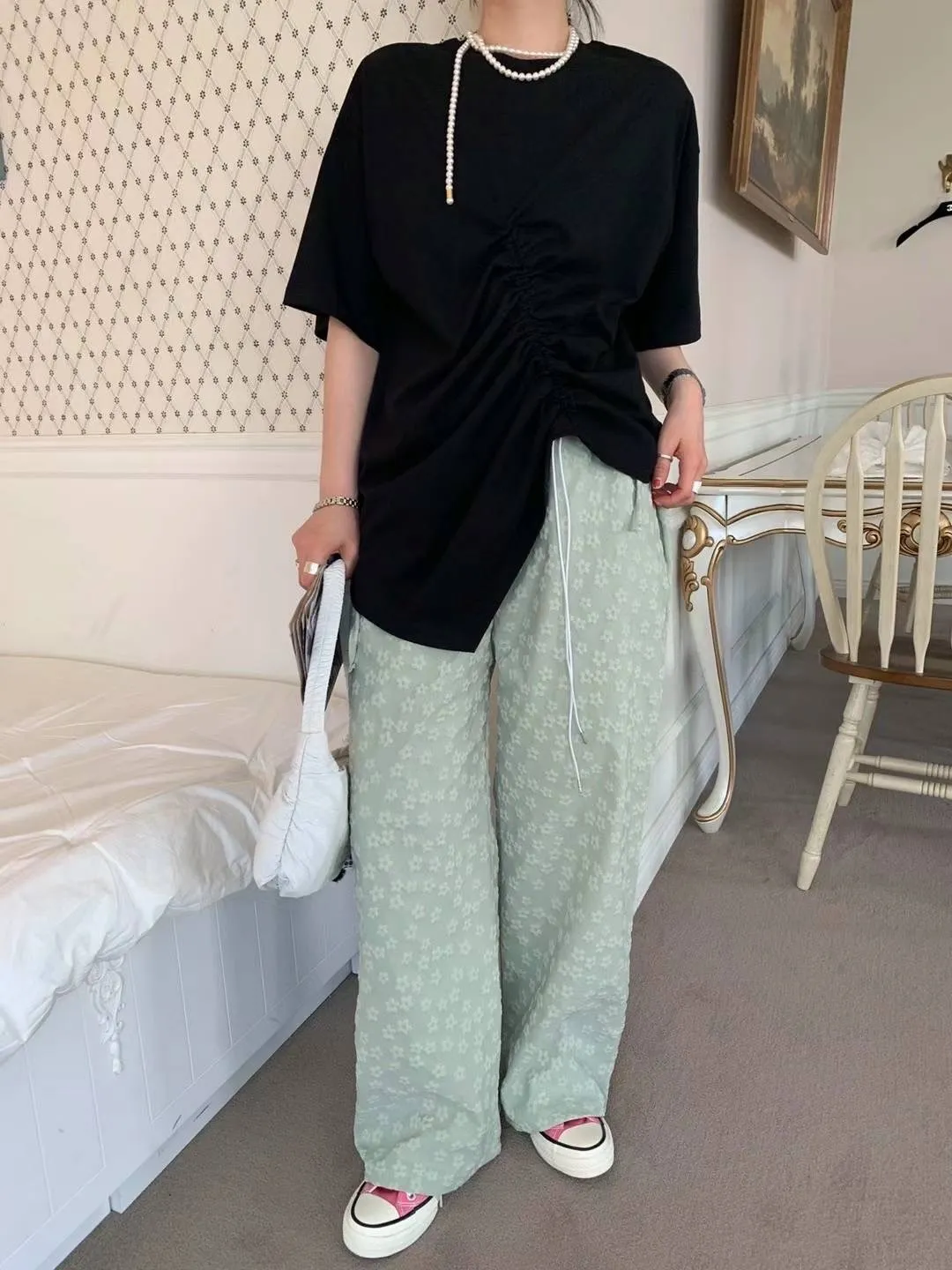 HJ248許願款立體滿版小花長褲 綠 黑 官網價$880 線上價$850