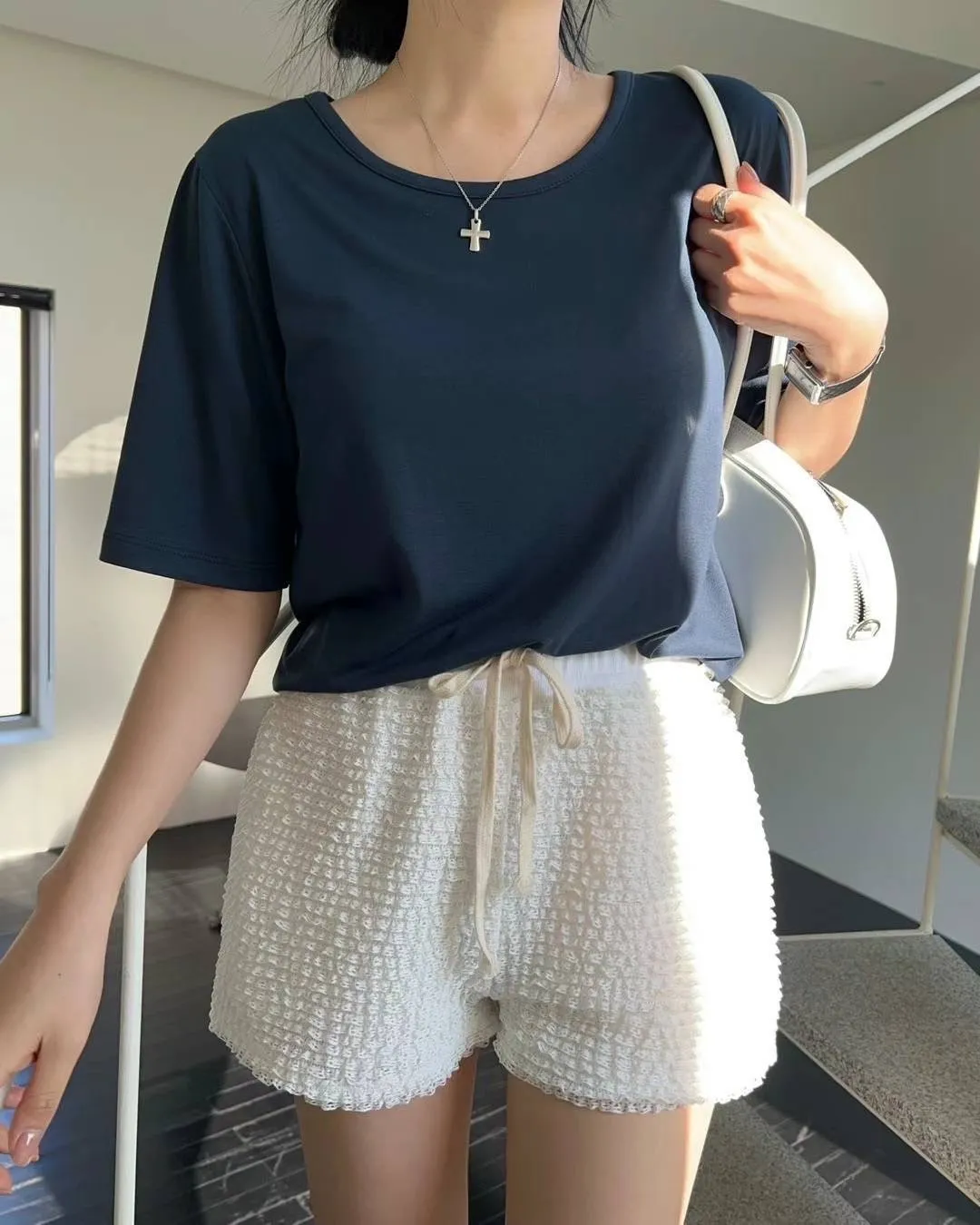 縲縈+聚酯+彈力 舒適親膚 QQ柔軟 微落肩 空間寬鬆 L號友善