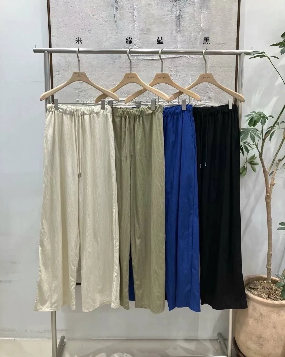 尼龍 薄款 垂墜感佳 寬寬空間感 有口袋 腰鬆緊有抽繩