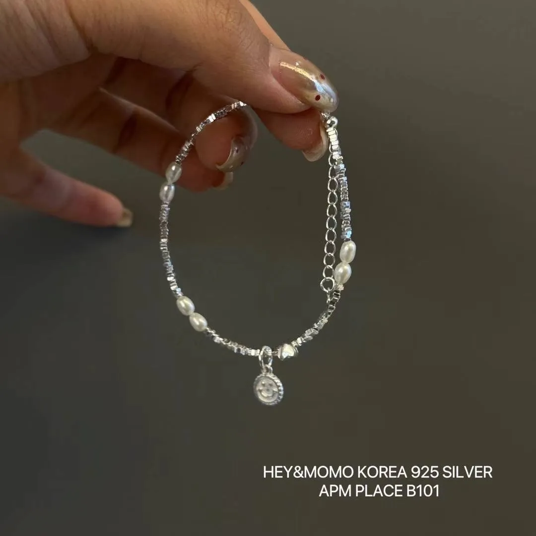 HJ315笑臉碎銀鑲嵌珍珠純銀925手鍊