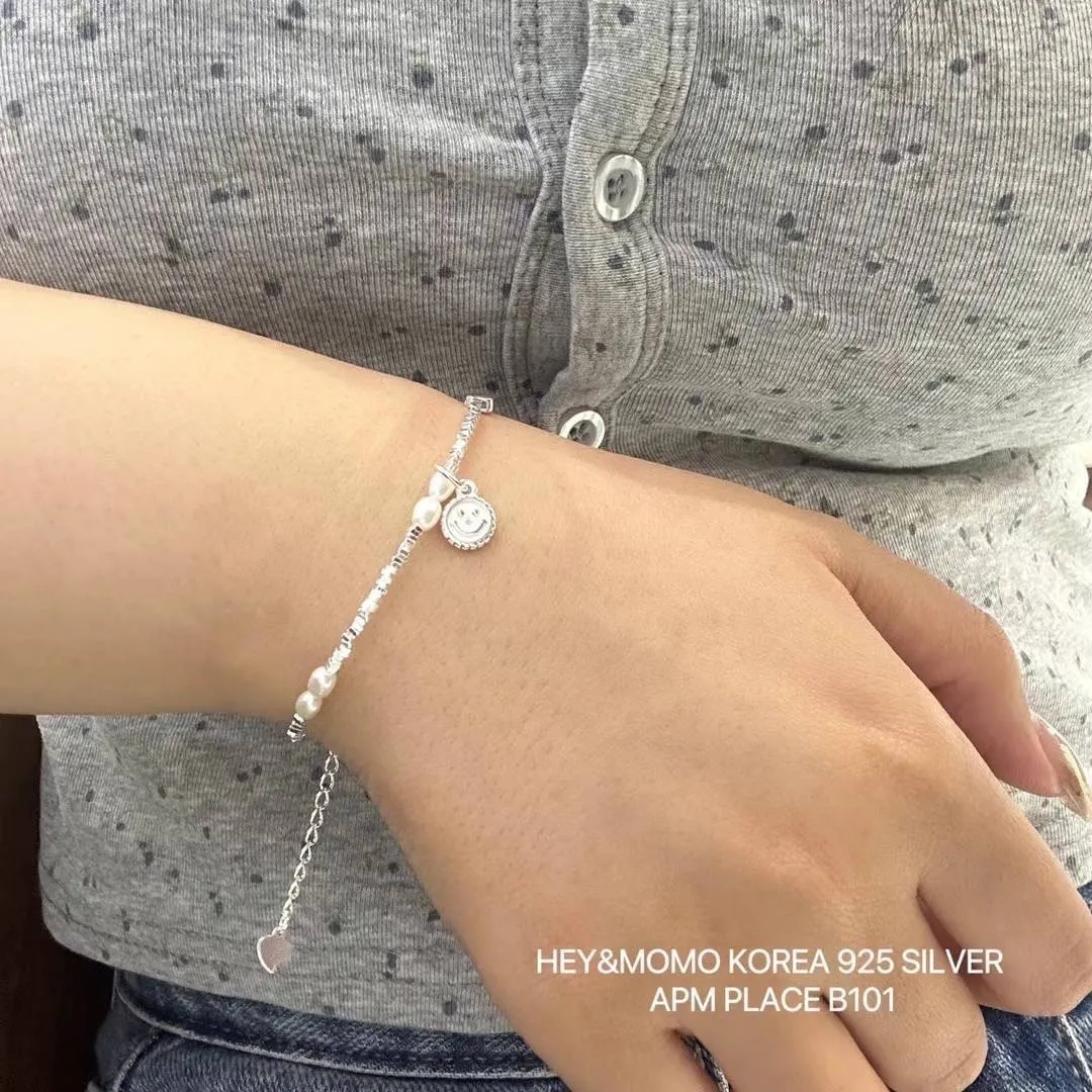 HJ315笑臉碎銀鑲嵌珍珠純銀925手鍊 官網價$650 線上價$630