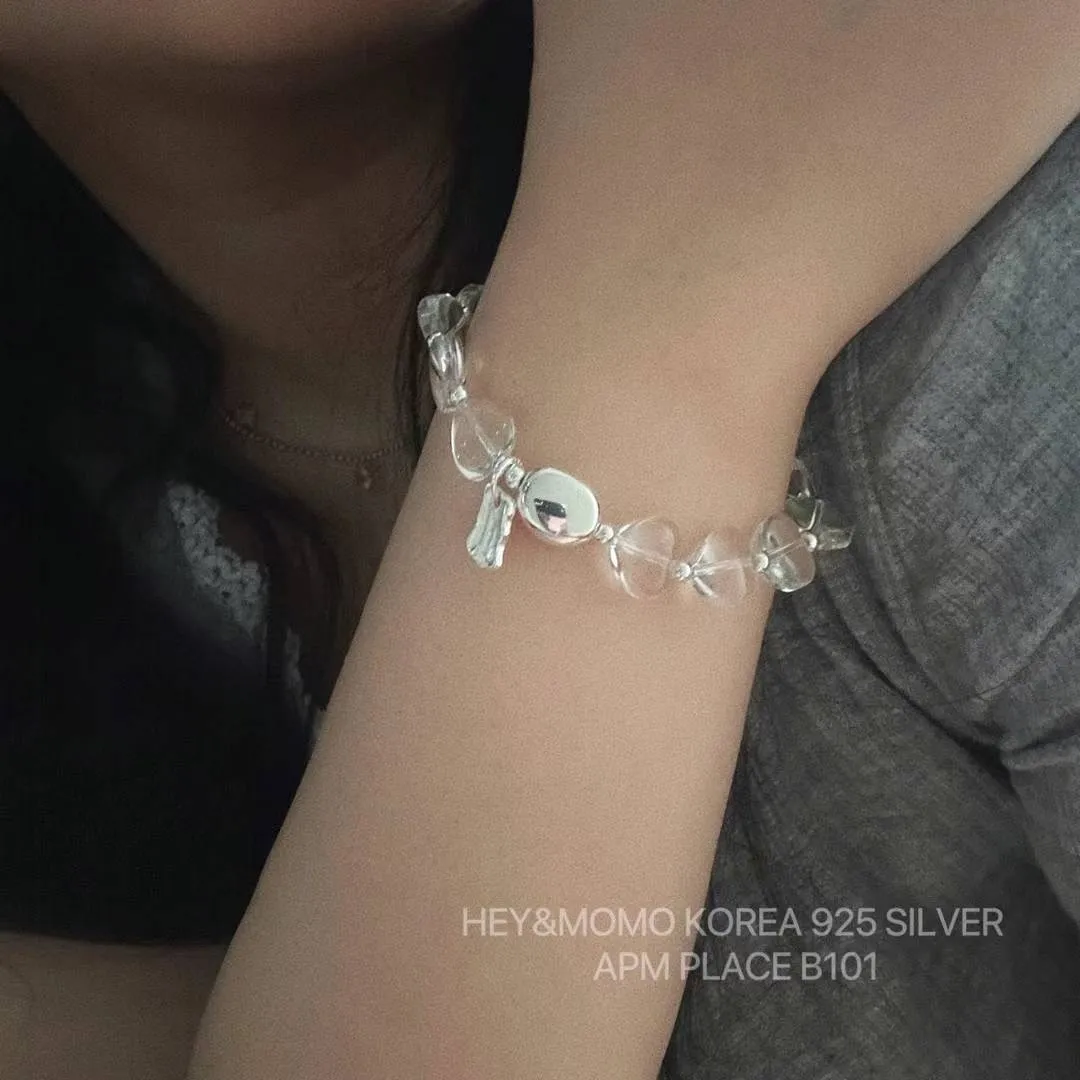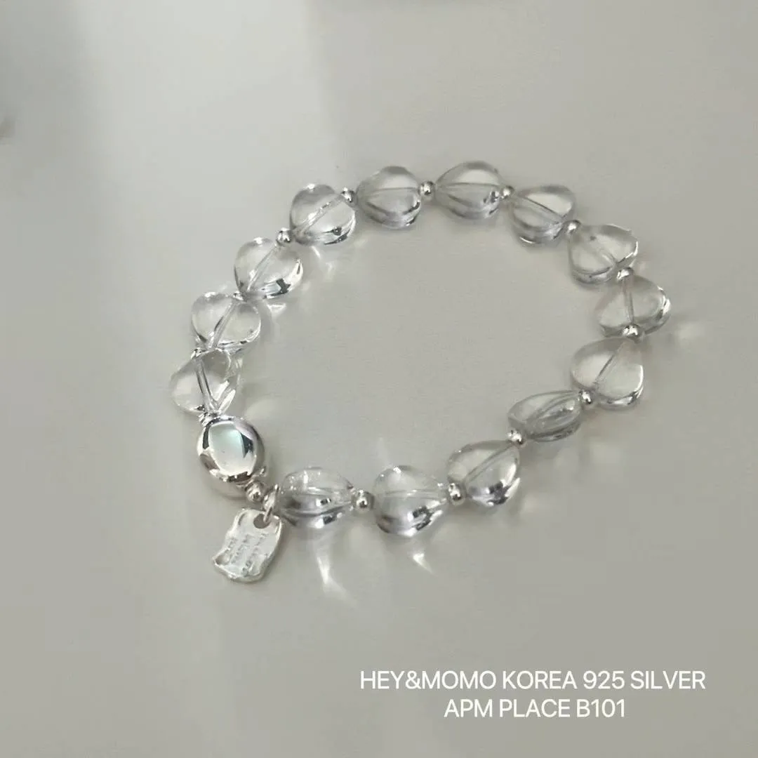 HJ330透明愛心小吊牌純銀925手鍊