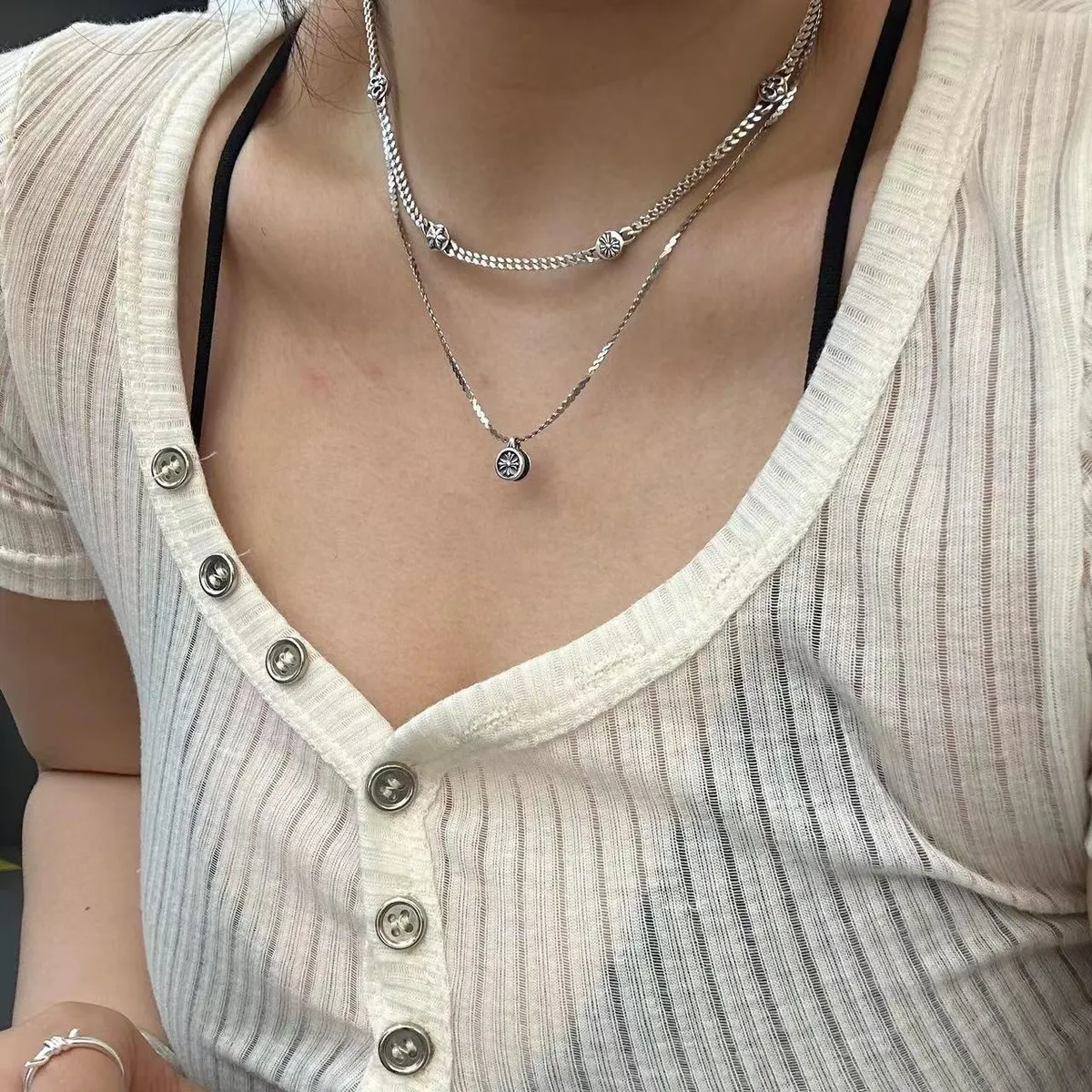 HJ356小圓克羅星單顆純銀925細鍊項鍊