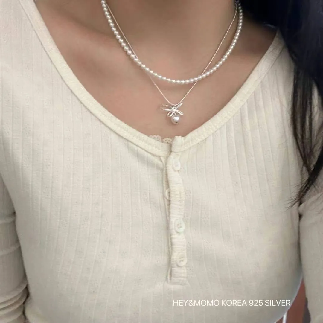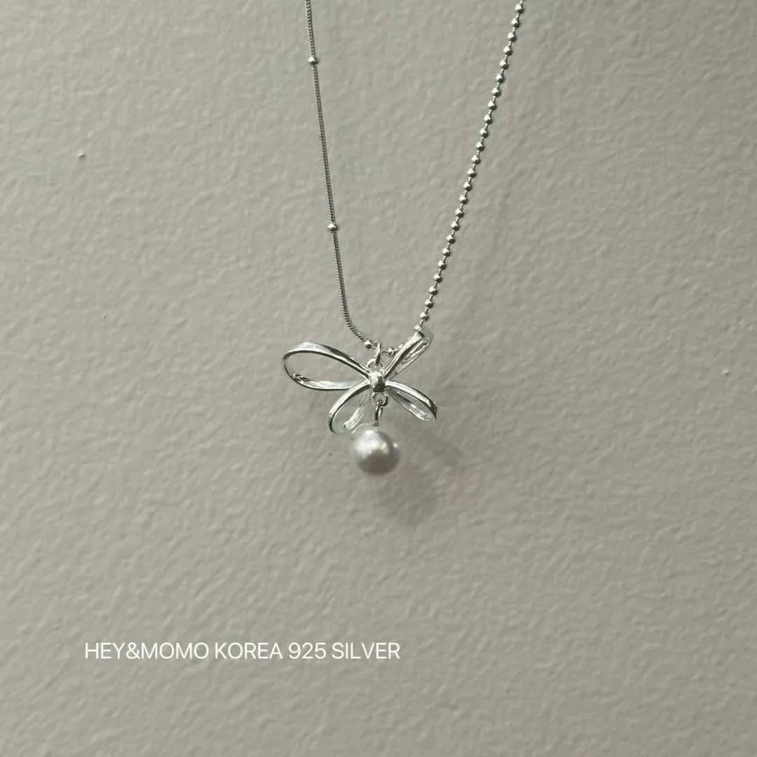 HJ364秀氣珍珠蝴蝶結純銀925項鍊