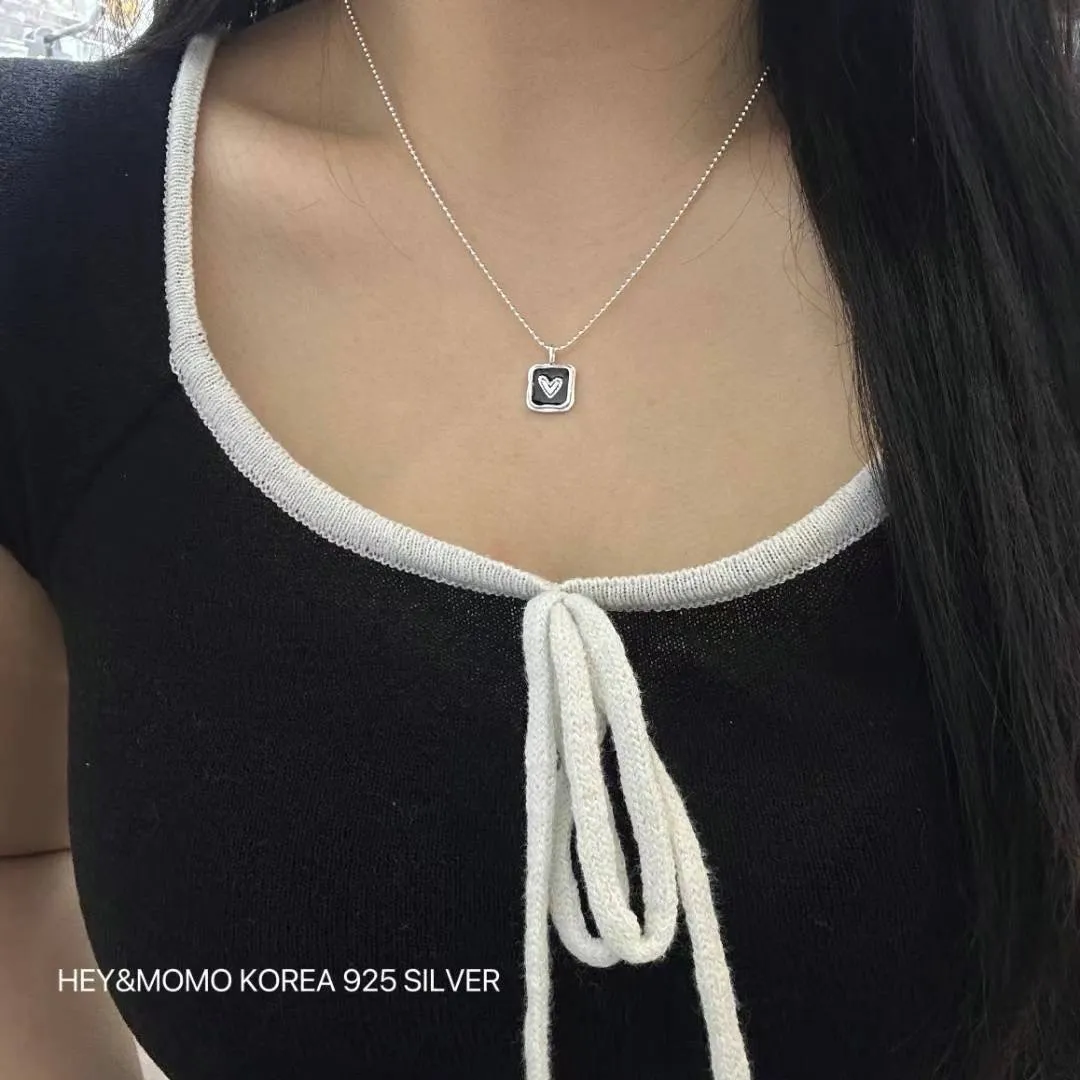 HJ366愛心黑色小吊牌純銀925項鍊 官網價$740 線上價$720