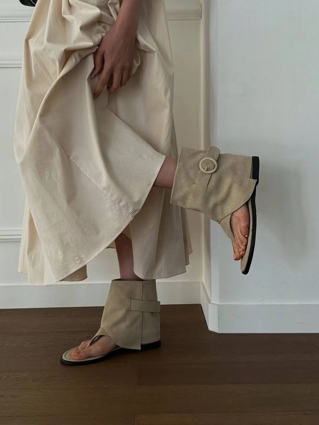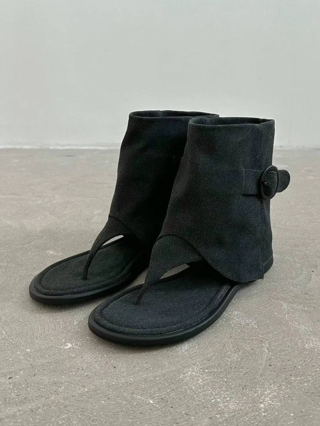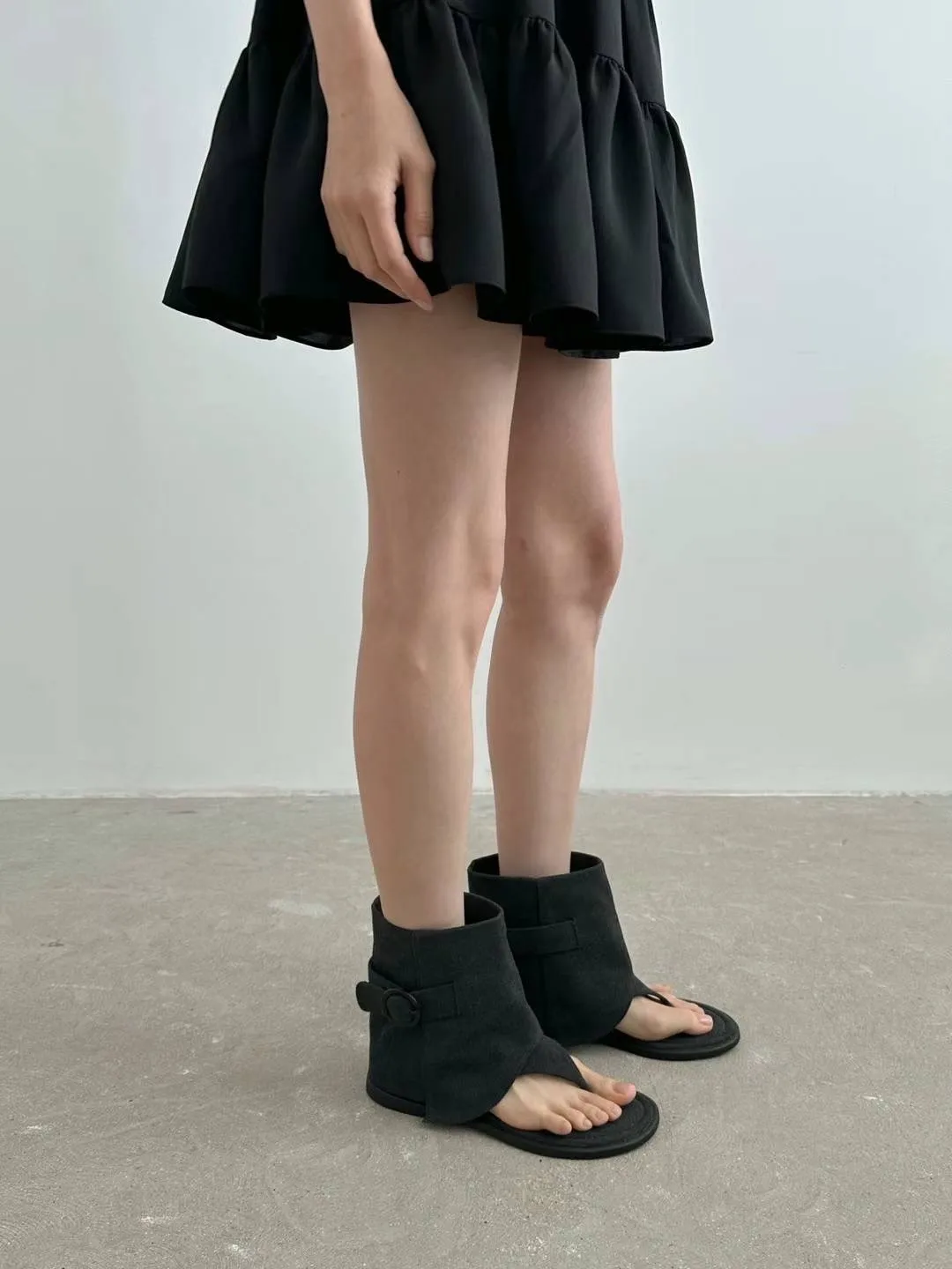 HJ372低筒露趾側釦帆布靴子 米 灰 225-250(有半號) $1080