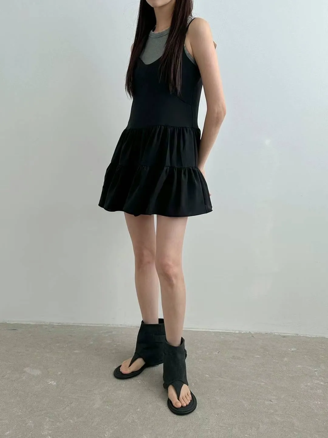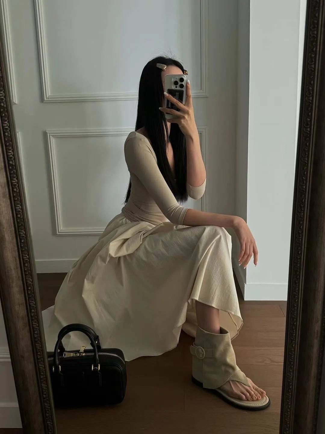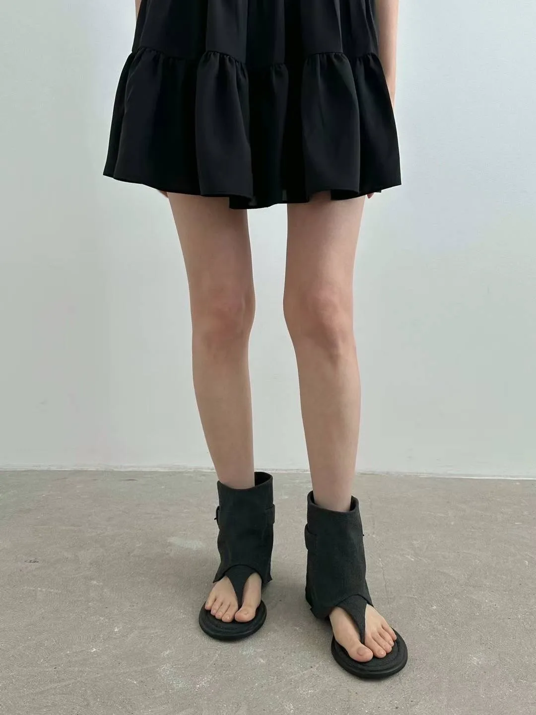 HJ372低筒露趾側釦帆布靴子 米 灰 225-250(有半號) $1080
