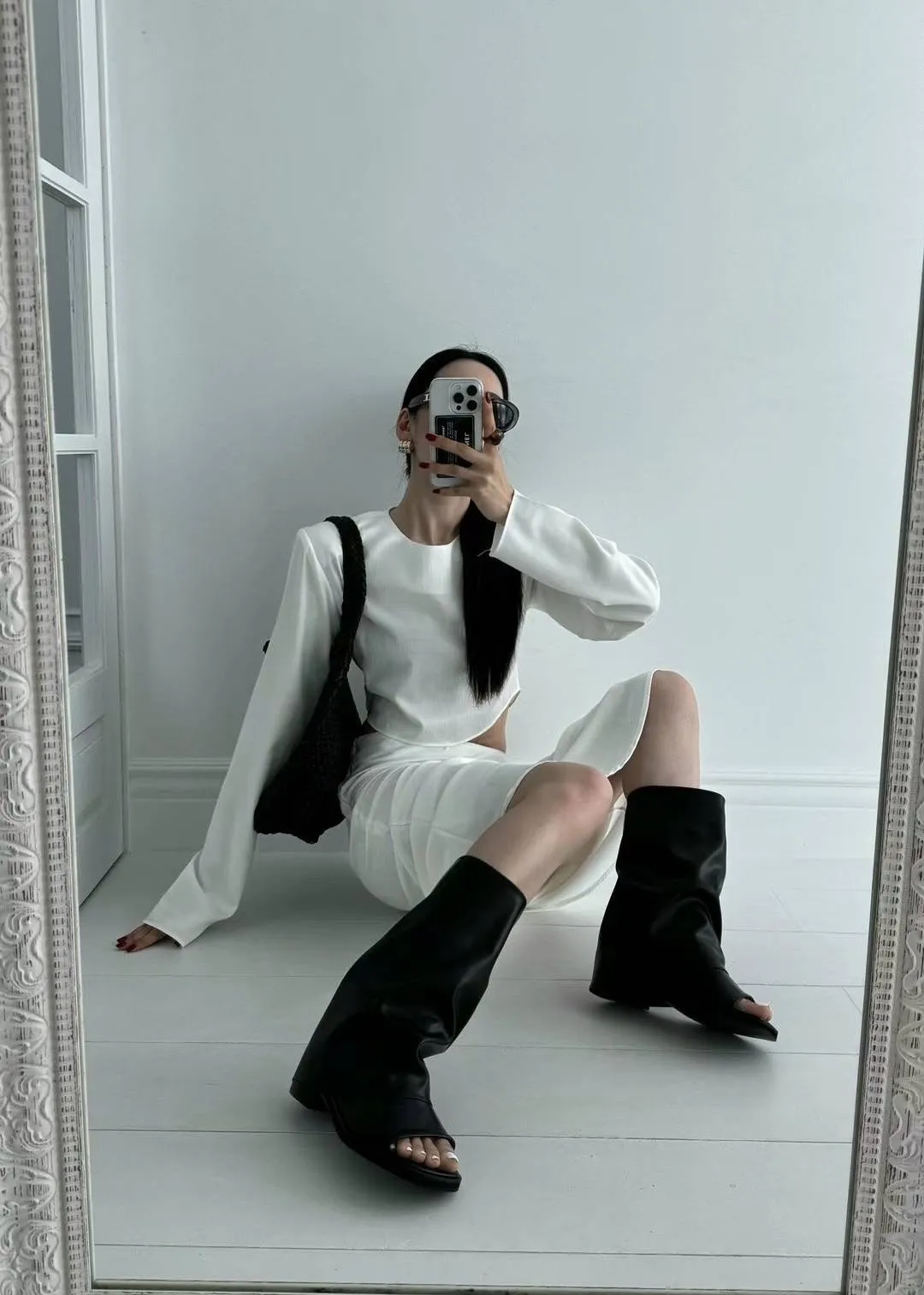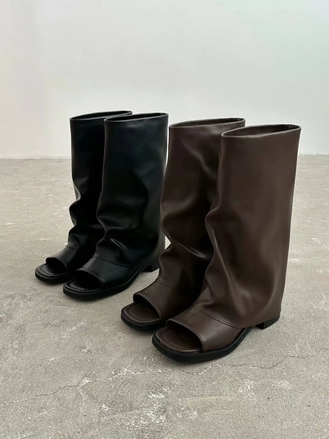 HJ374拖鞋開口款皮革靴 咖 黑 225-250(有半號) $1320