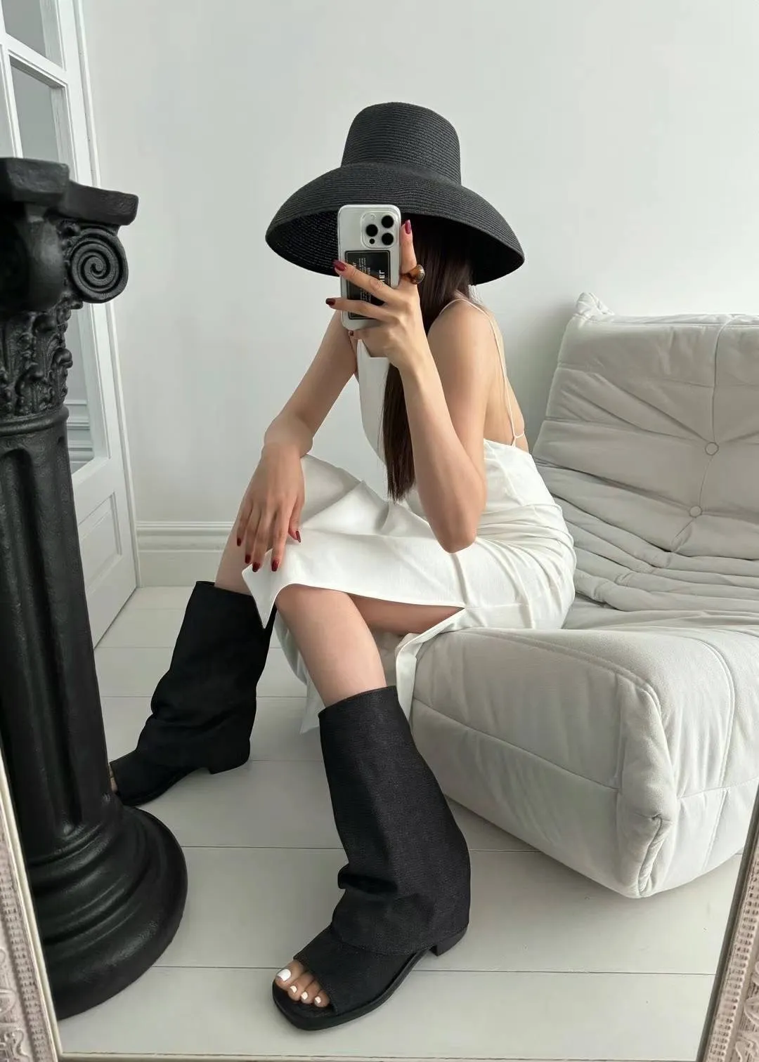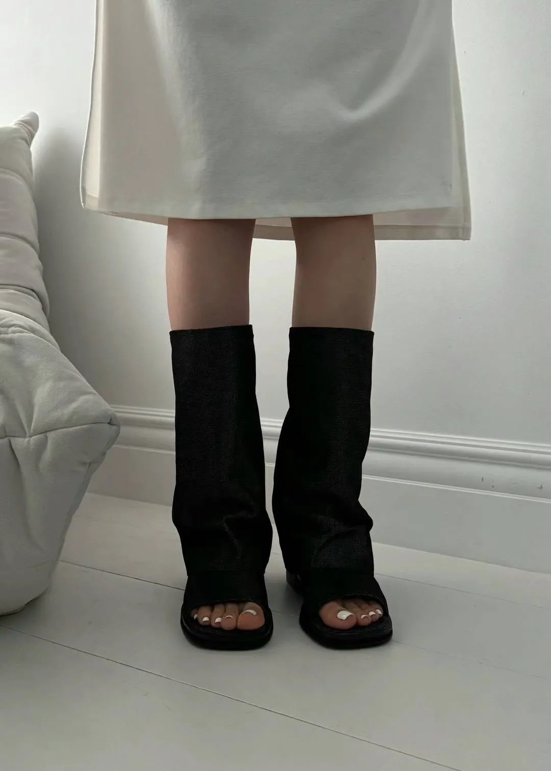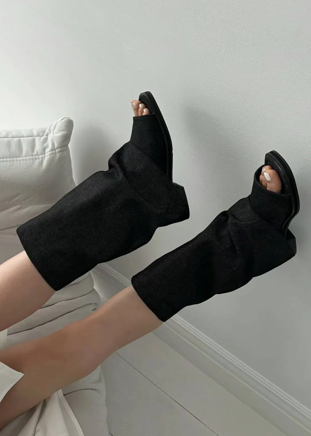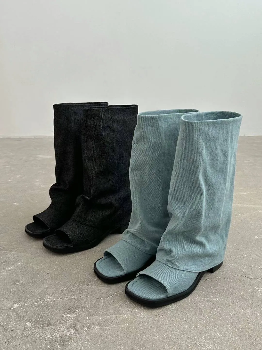 HJ375拖鞋開口款斜紋棉靴 藍 灰 225-250(有半號) $1320