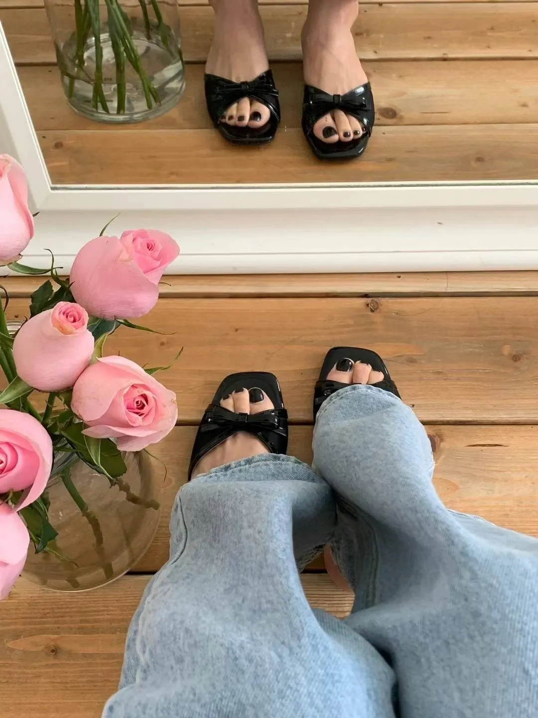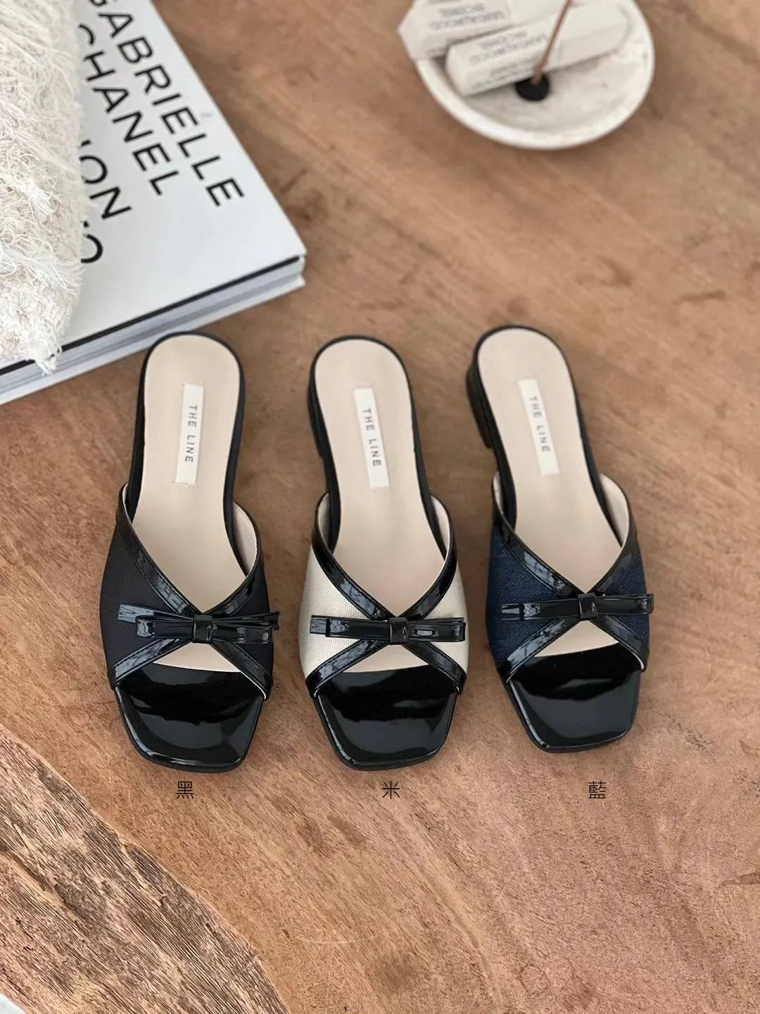 HJ376魚口蝴蝶結拖鞋 米 藍 黑 230-250(有半號) $899