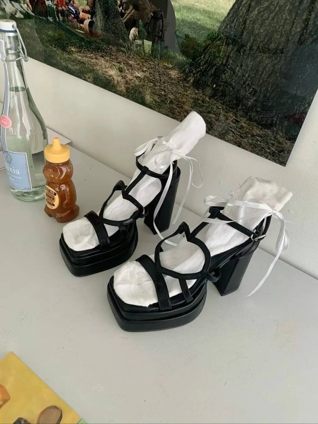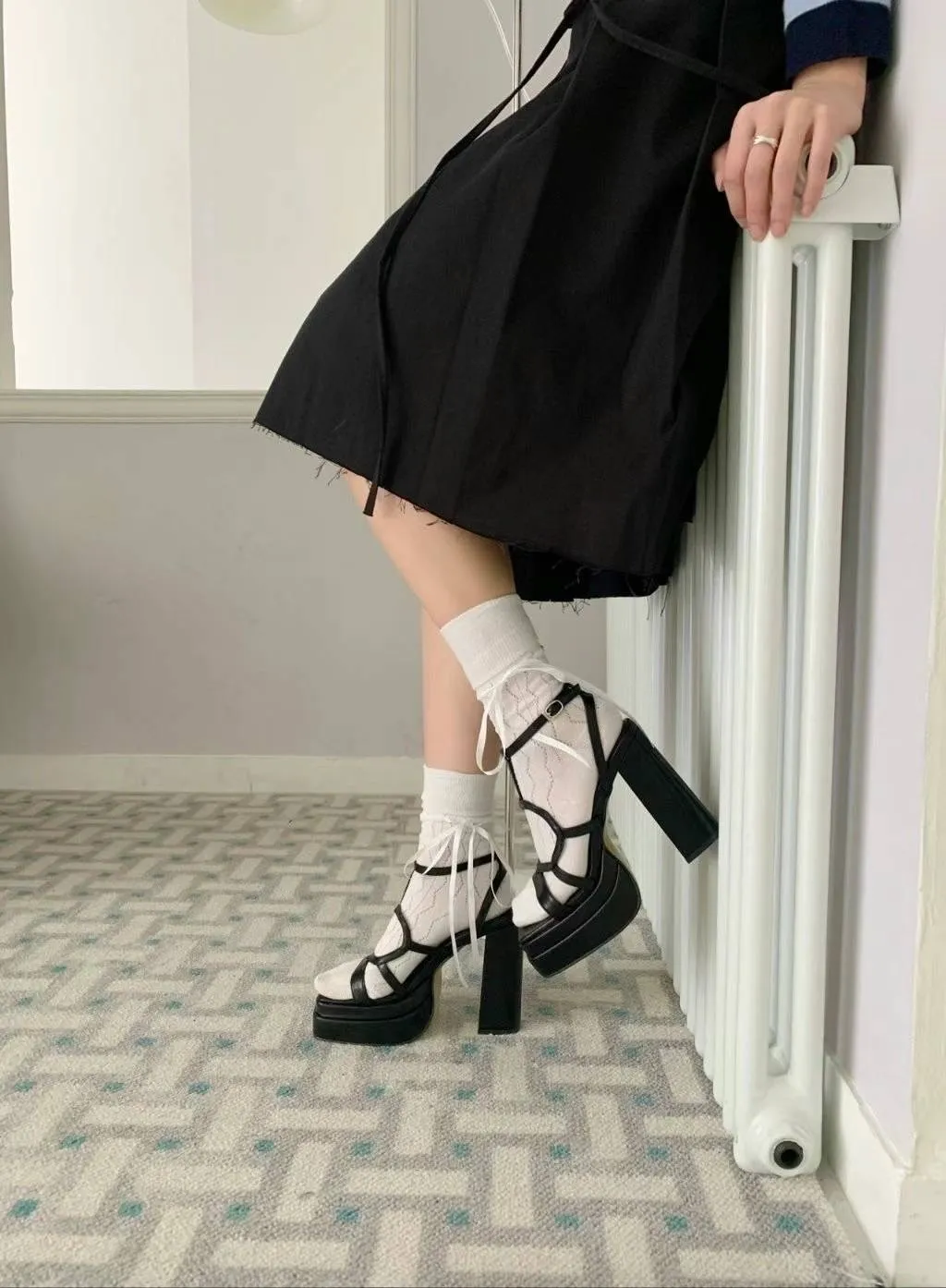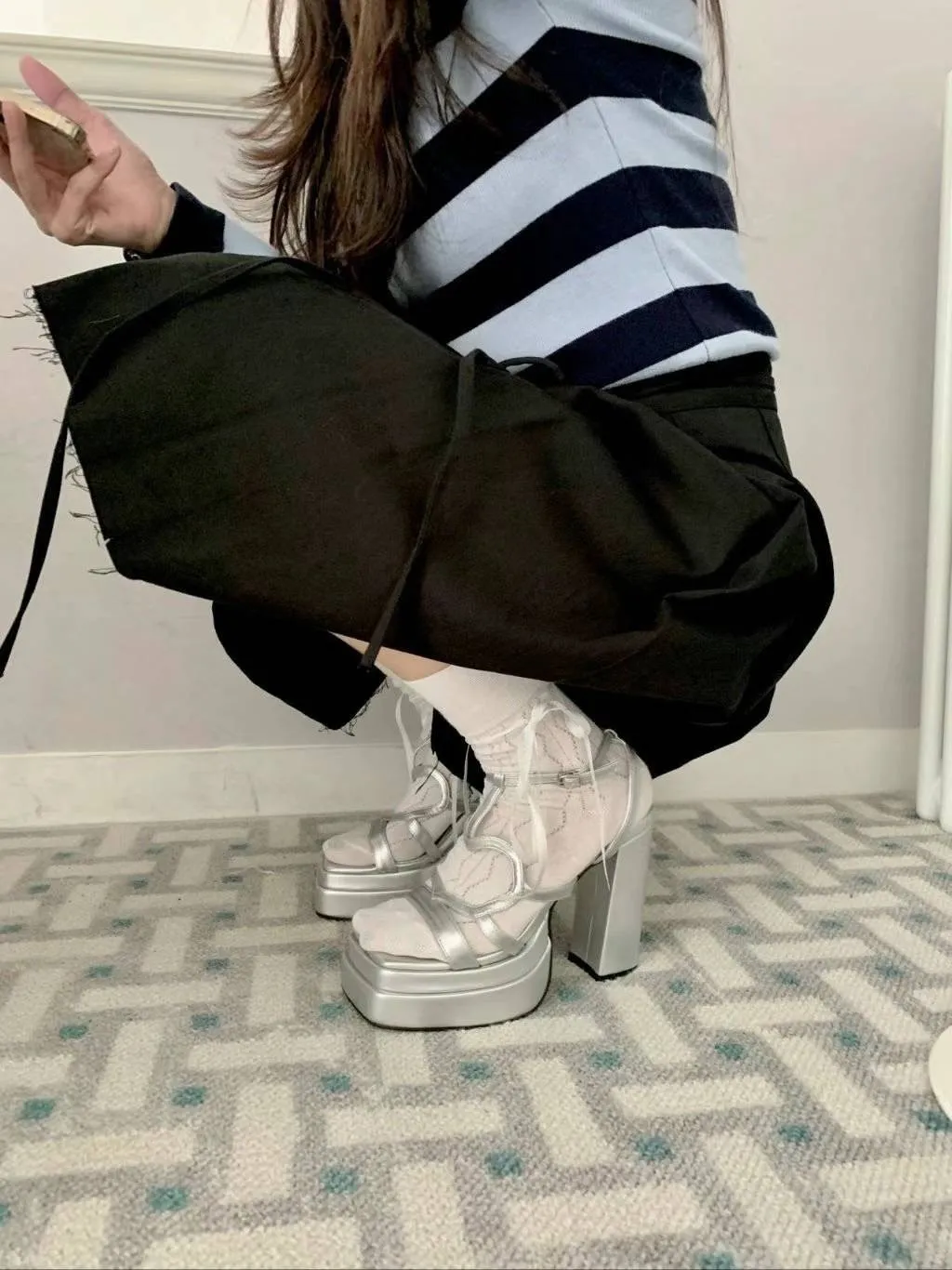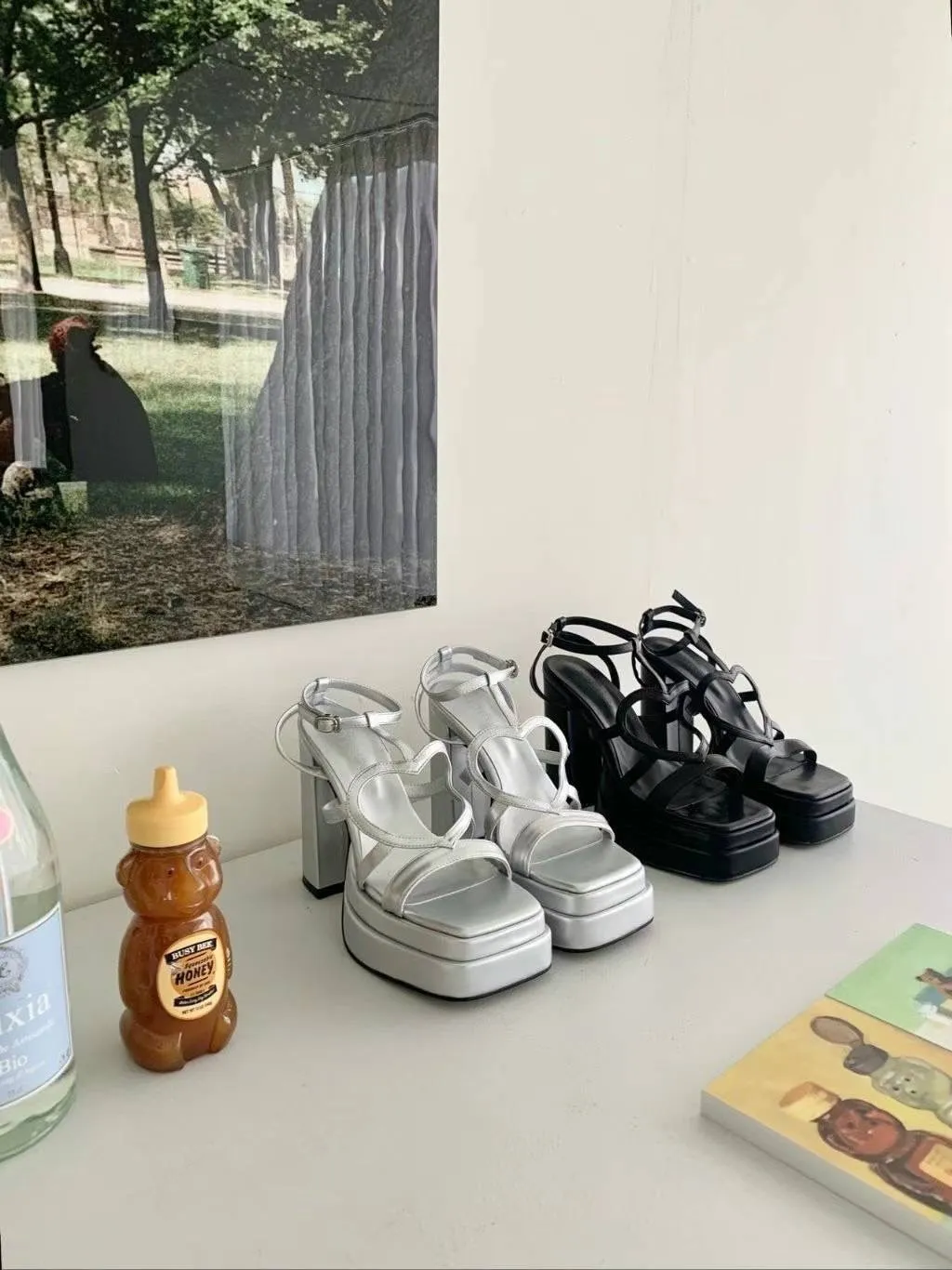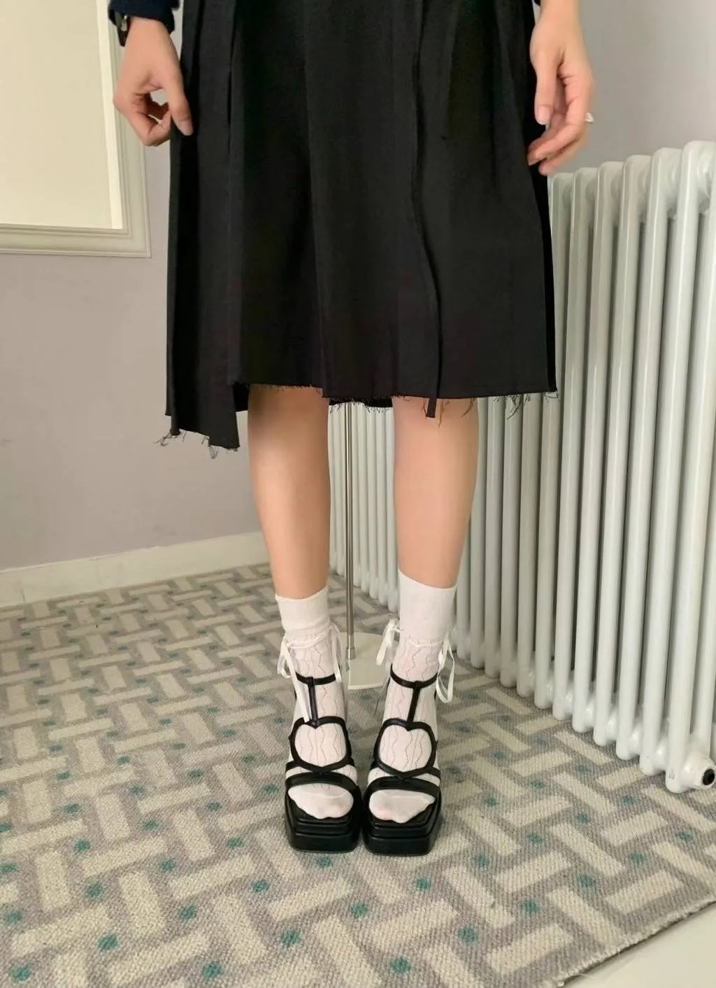 HJ384方頭簍空愛心厚底涼鞋 銀 黑 230-250(有半號) $1080