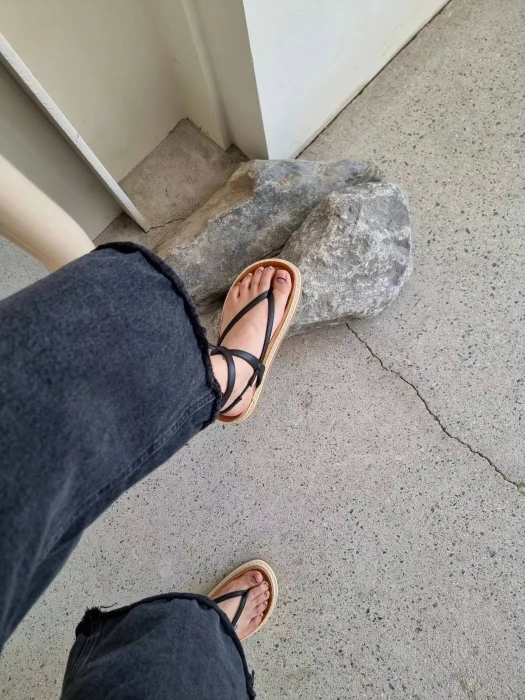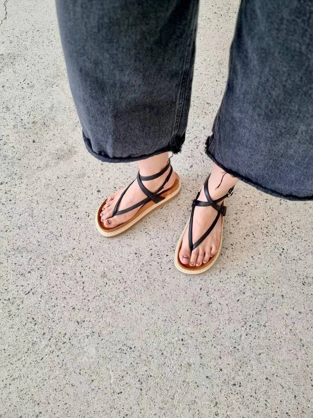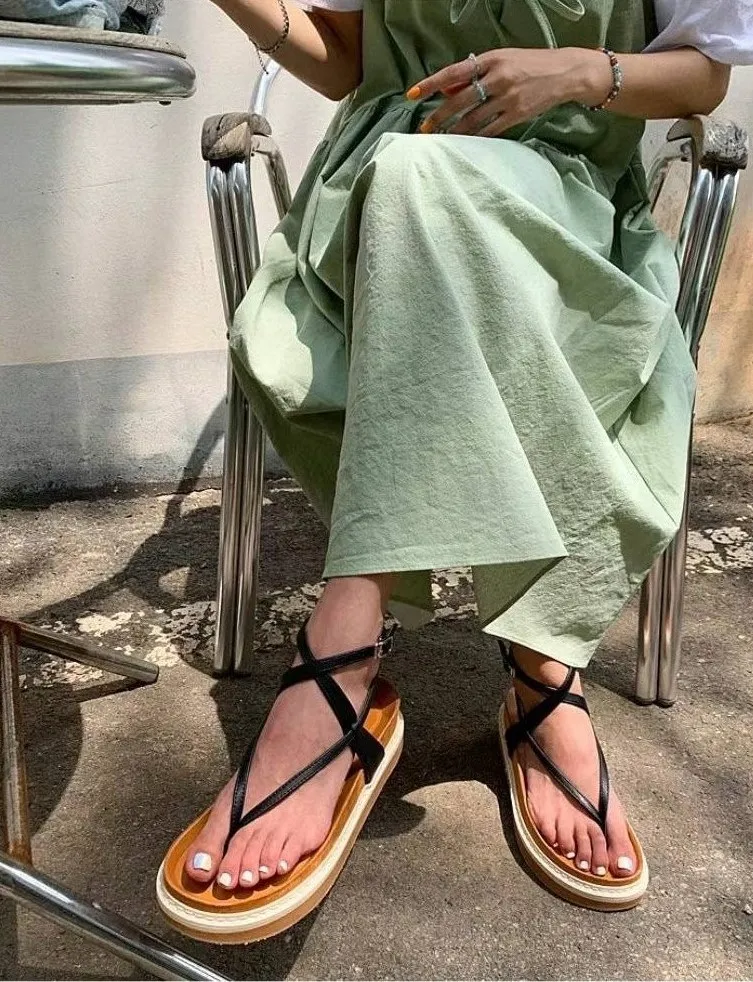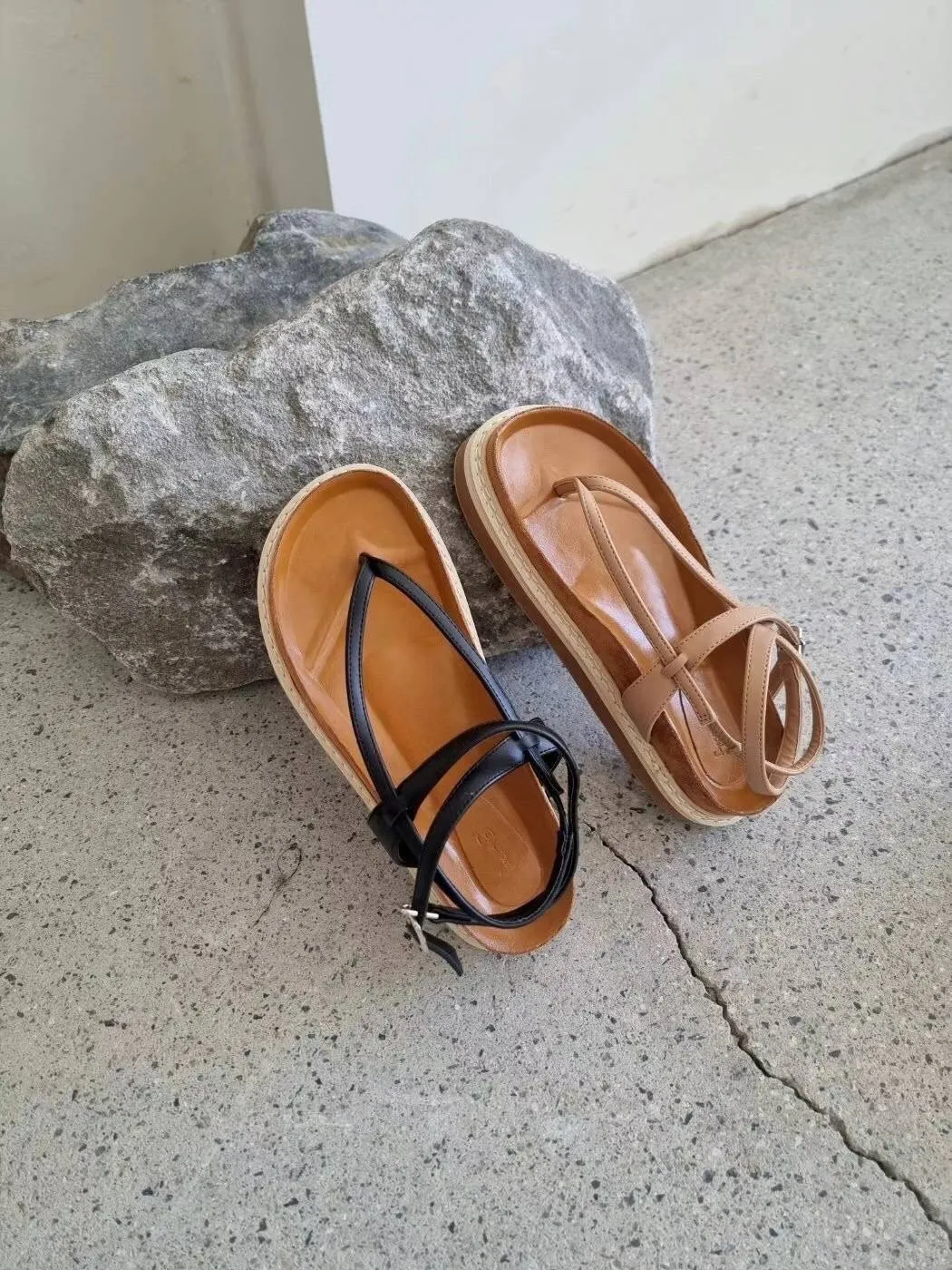 HJ385交叉層次感鞋底涼鞋 咖 黑230-250(有半號) $990