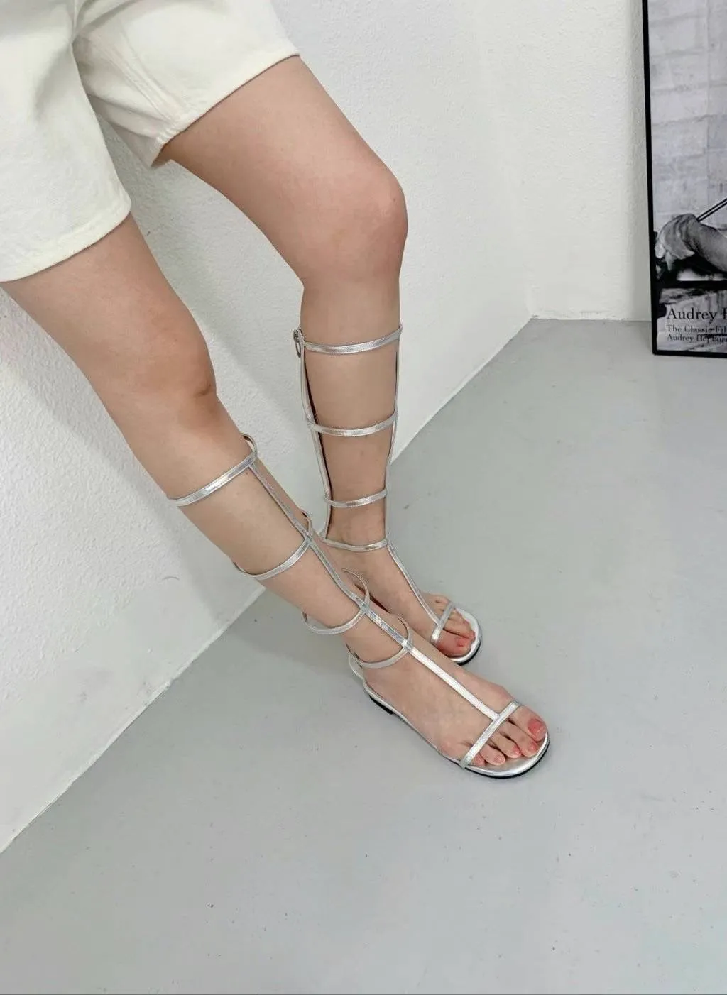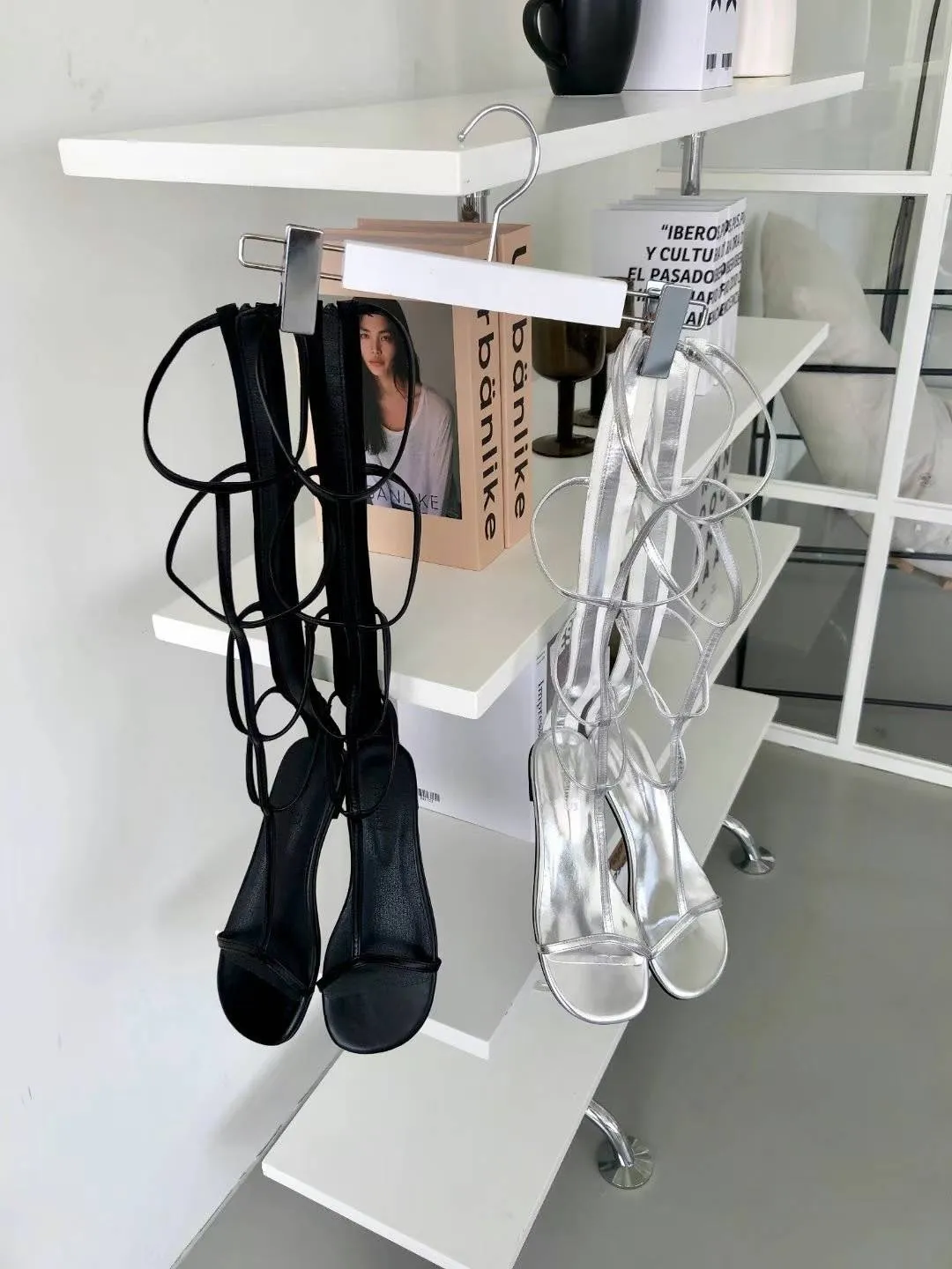 HJ386設計感簍空魚骨靴 銀 黑 230-250(有半號) $1060