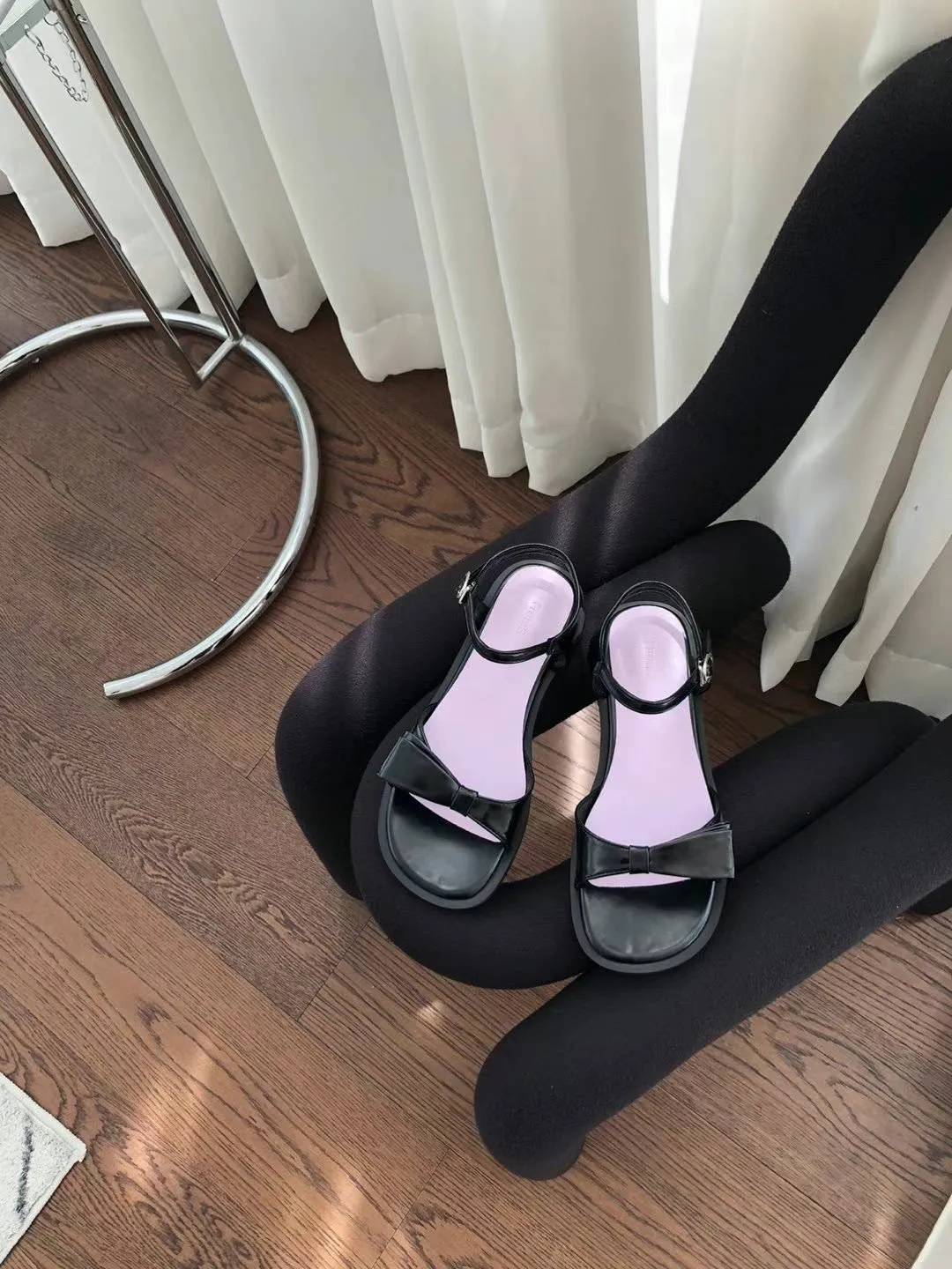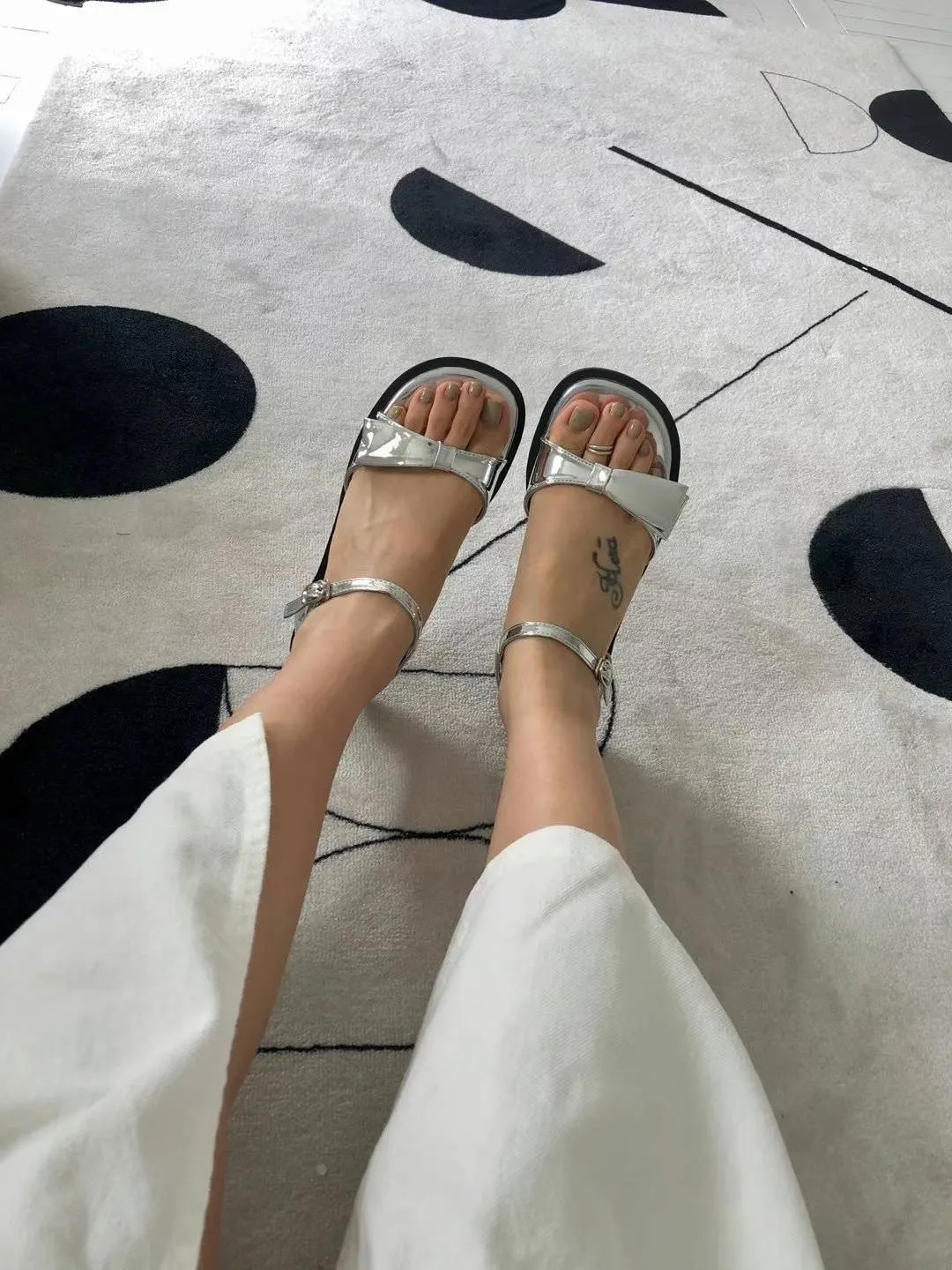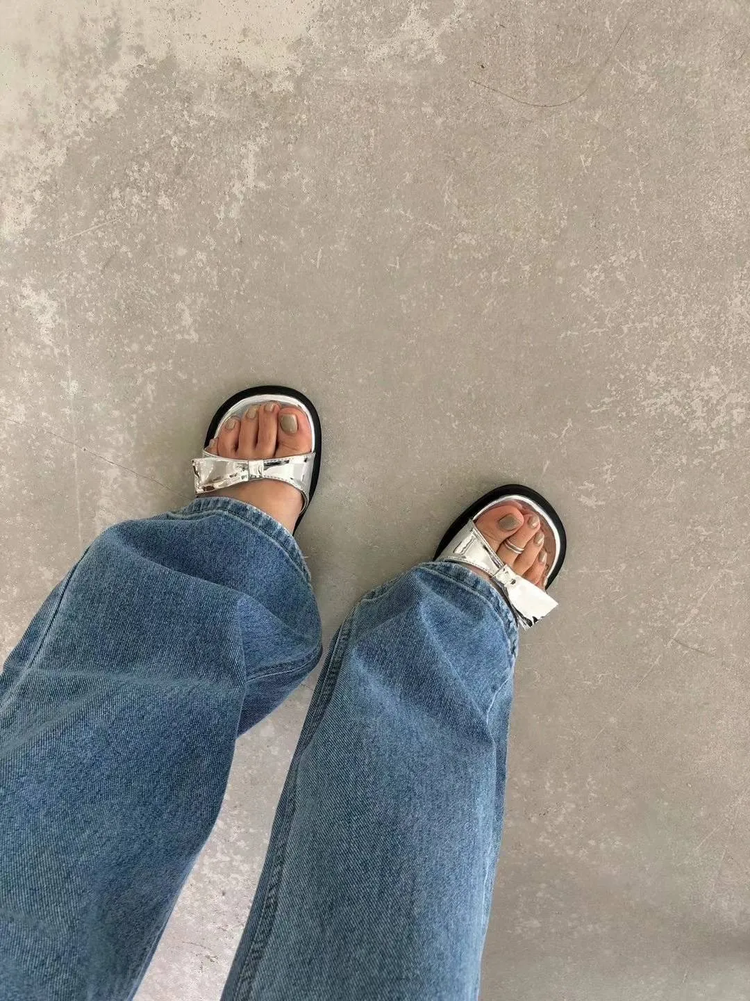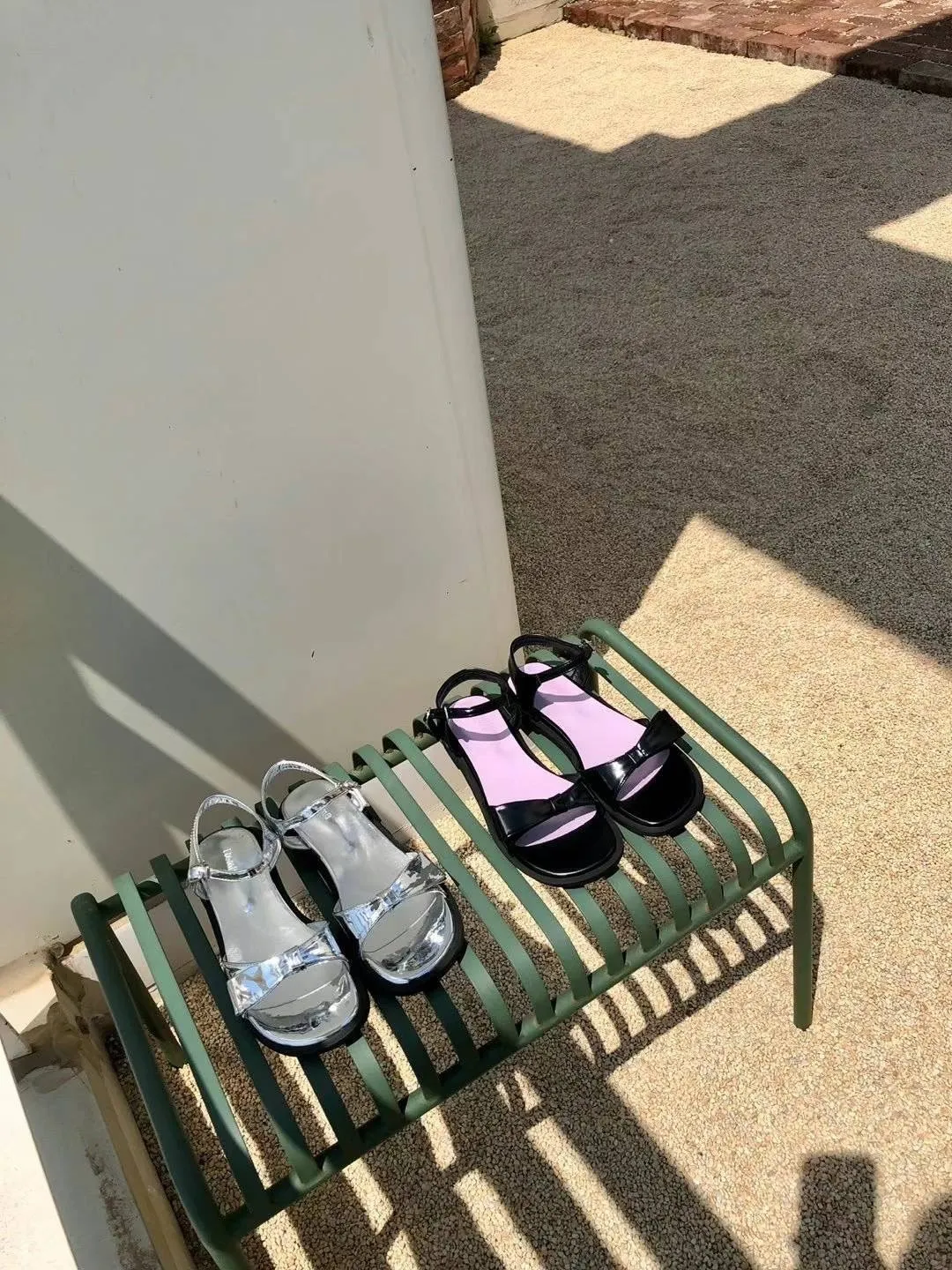 HJ388蝴蝶結圓頭涼鞋 銀 黑 230-250(有半號) $980