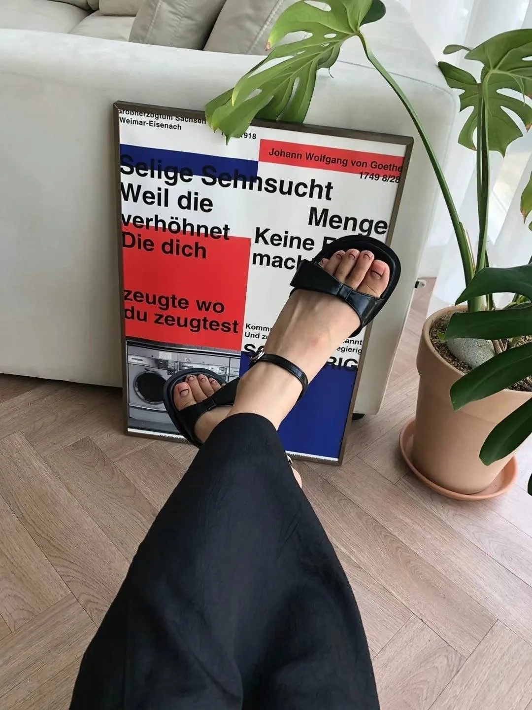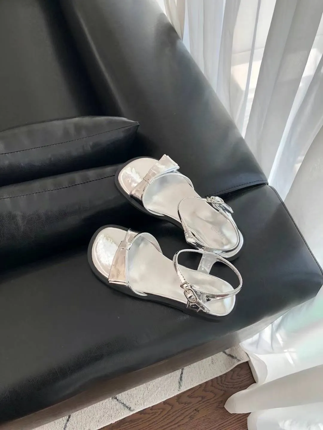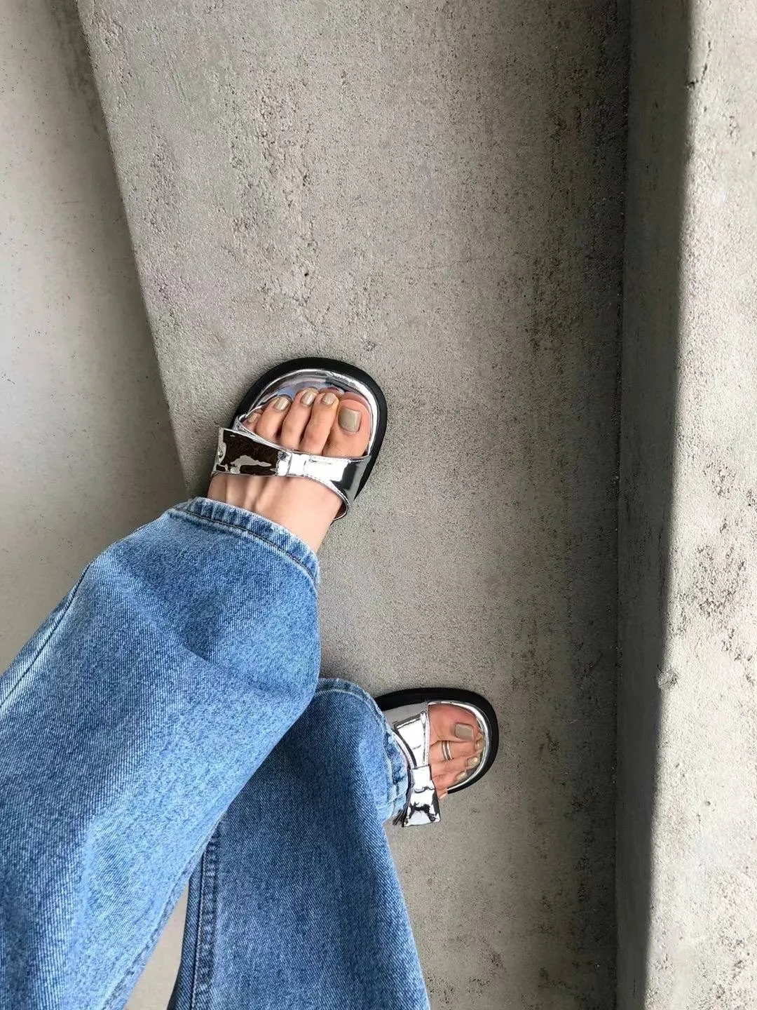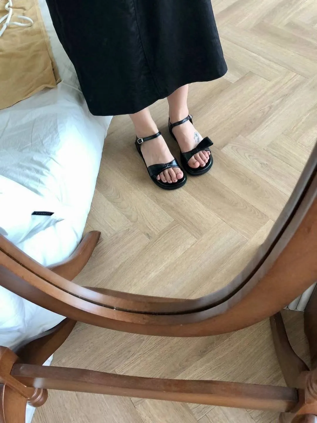 HJ388蝴蝶結圓頭涼鞋 銀 黑 230-250(有半號) $980