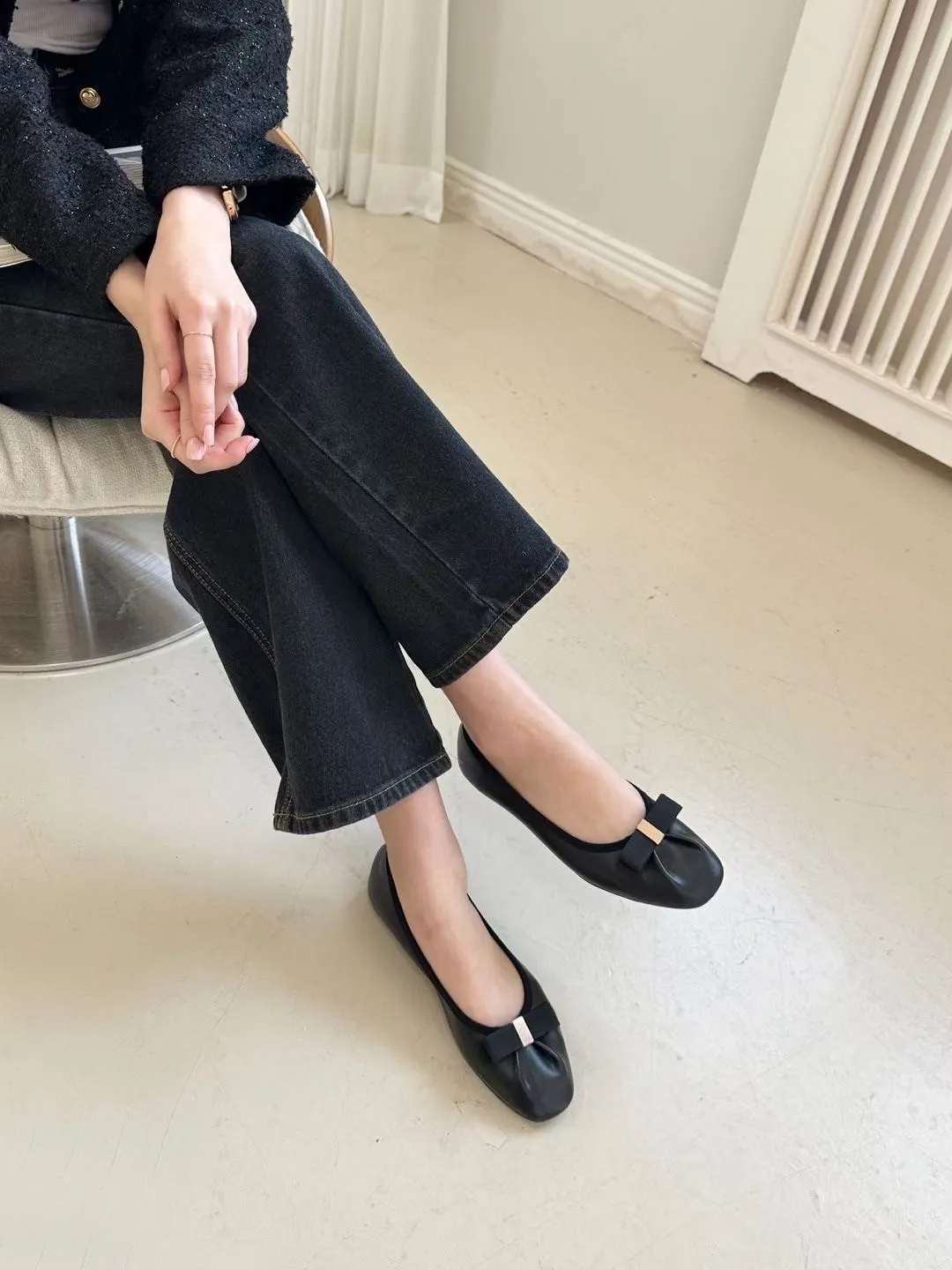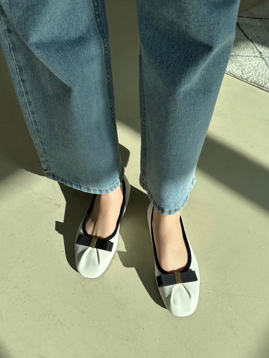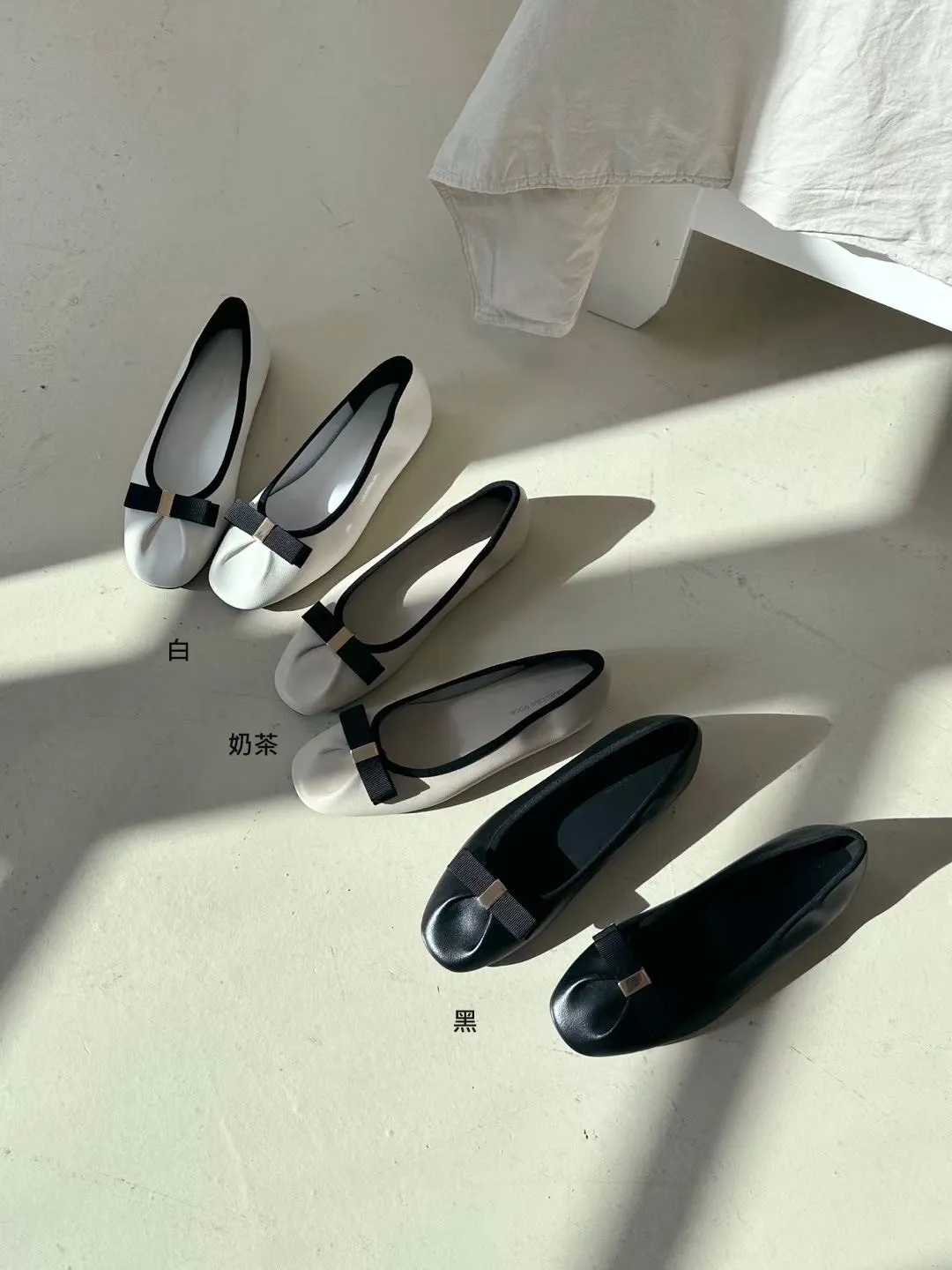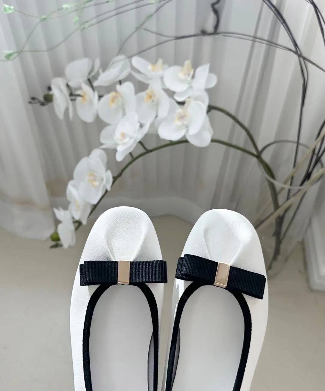 HJ398牛皮方塊金屬蝴蝶結娃娃鞋 白 奶茶 黑 230-255(有半號) $990