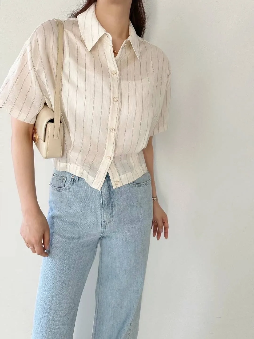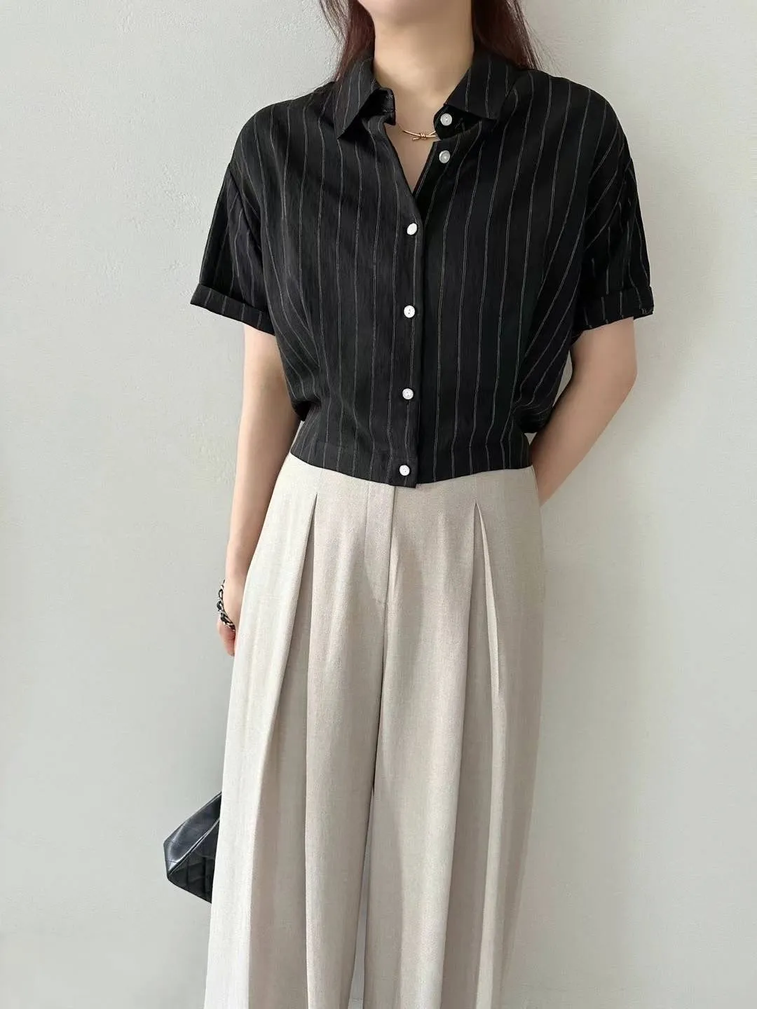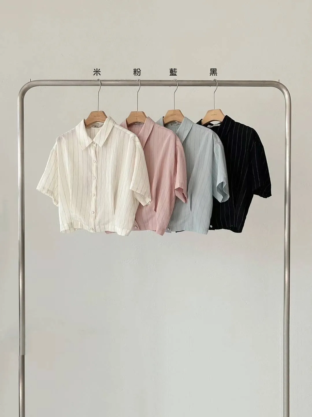 HJ437薄款質感細條紋短袖襯衫 米 粉 藍 黑 官網價$1160 線上價$1130