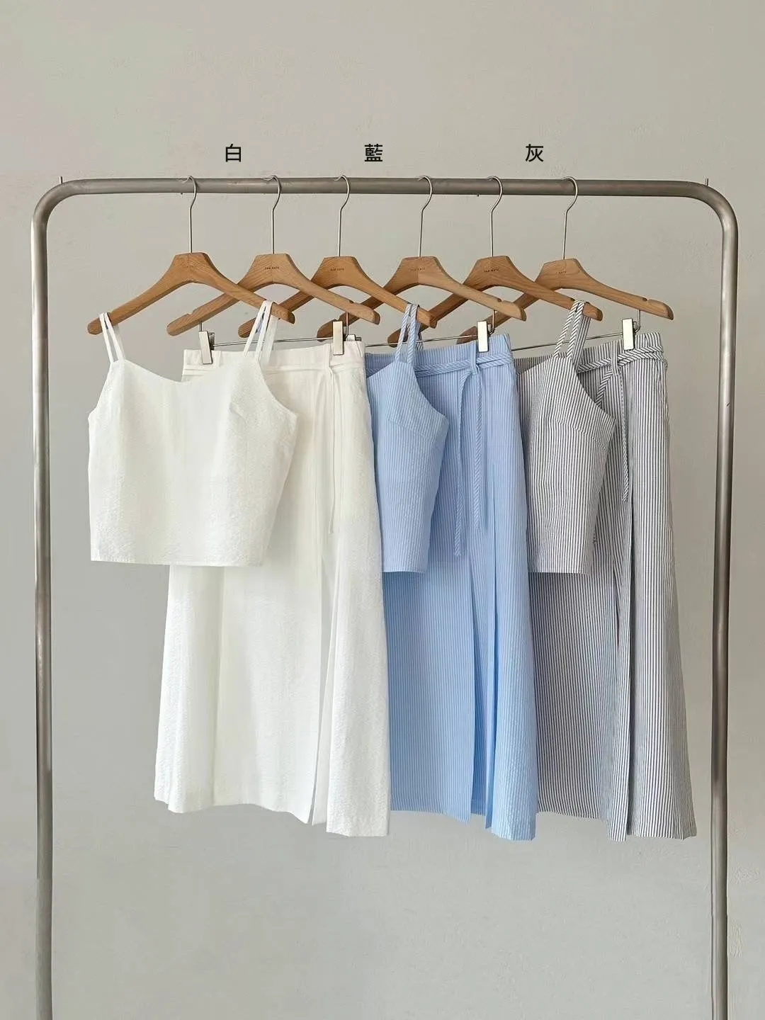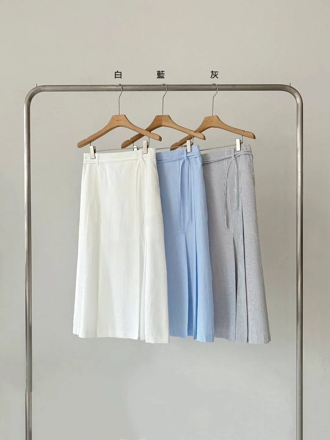 棉+聚酯 腰綁帶 有口袋 前側開叉 白灰有內裡 藍色無內裡