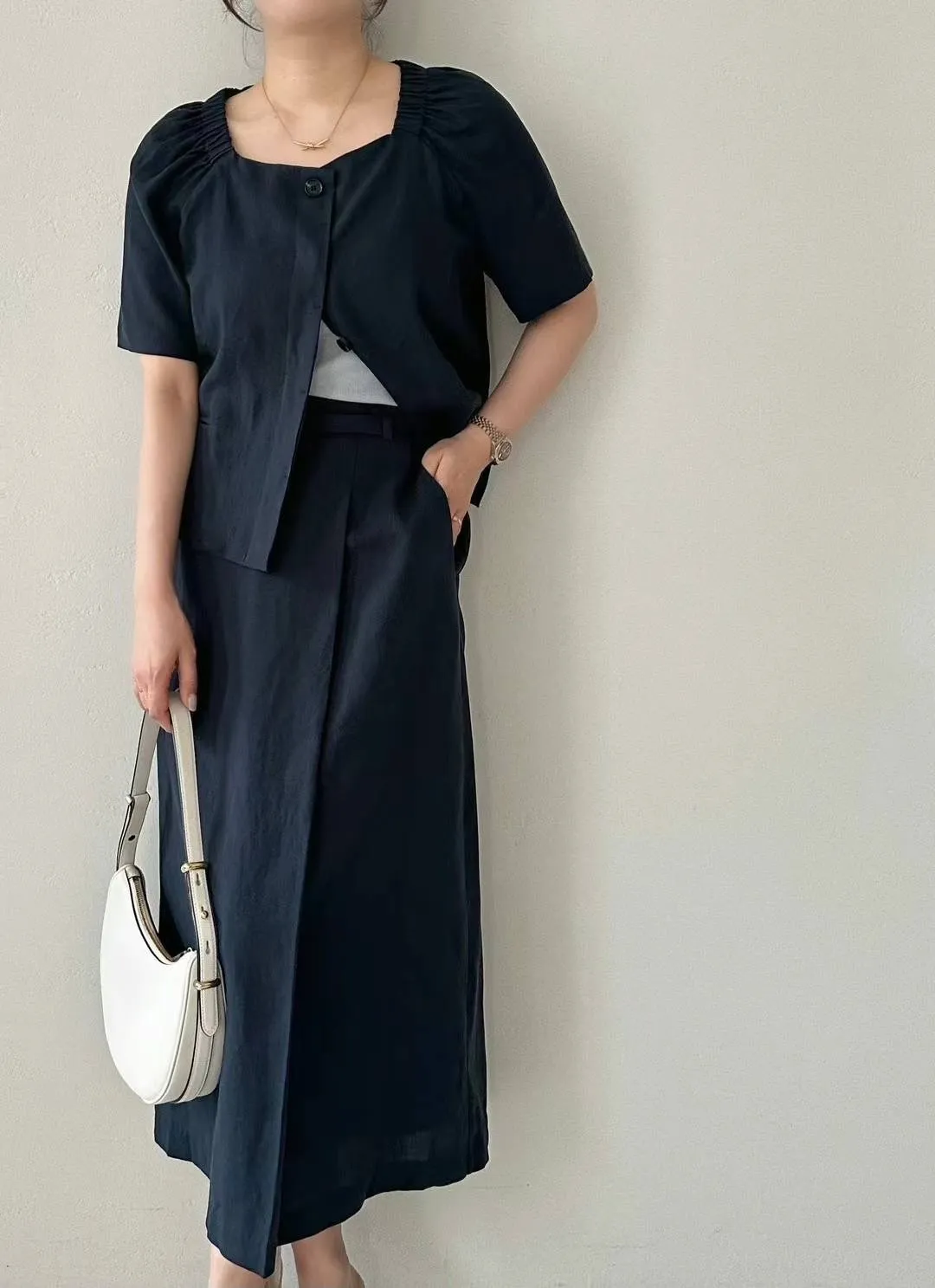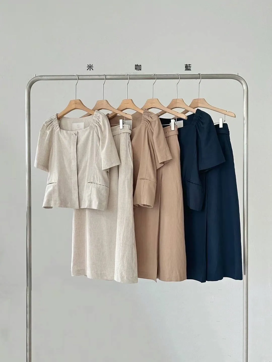 HJ444套裝的天絲亞麻裙子(附腰帶) 米 咖 藍 官網價$1370 線上價$1340