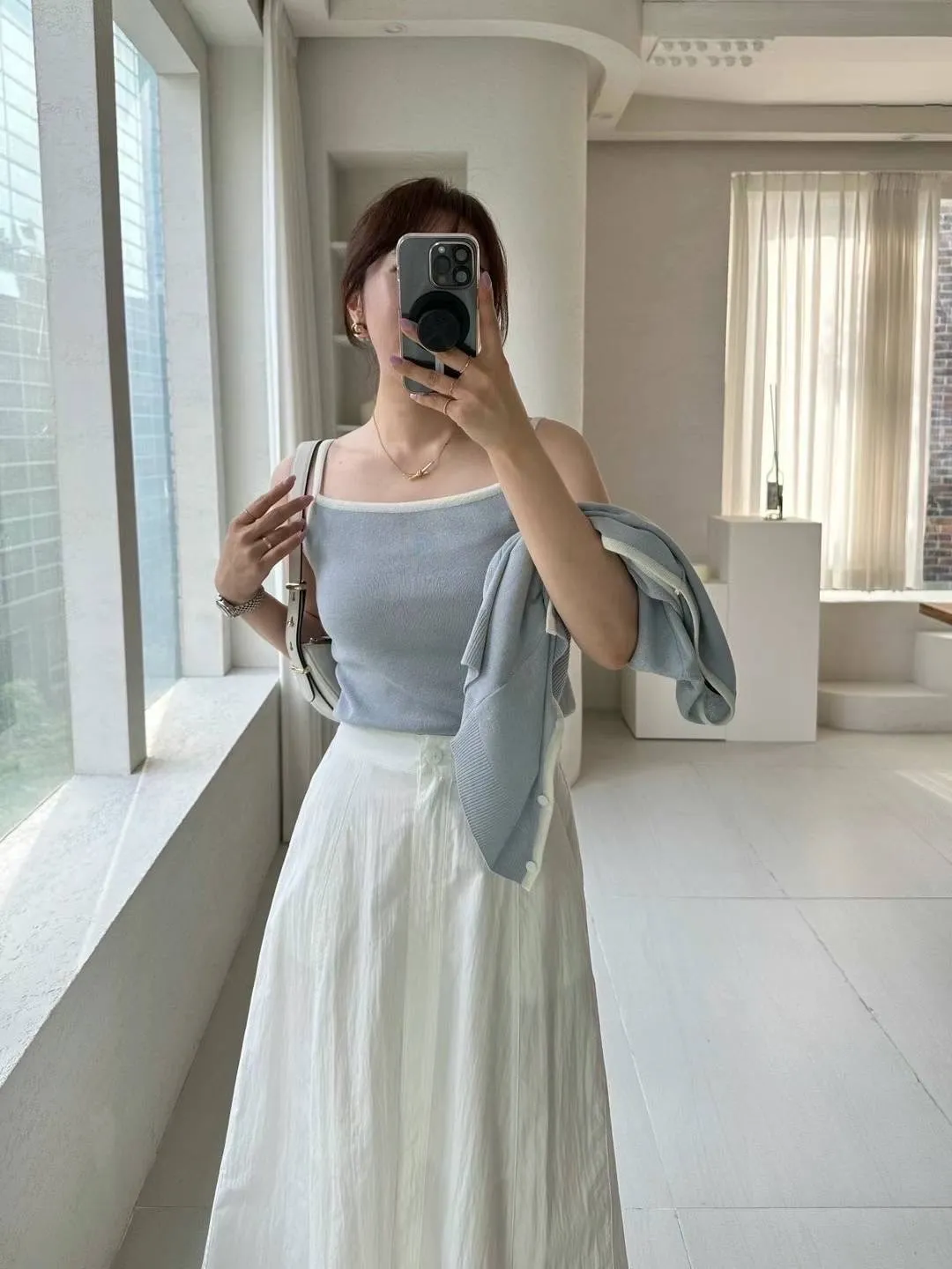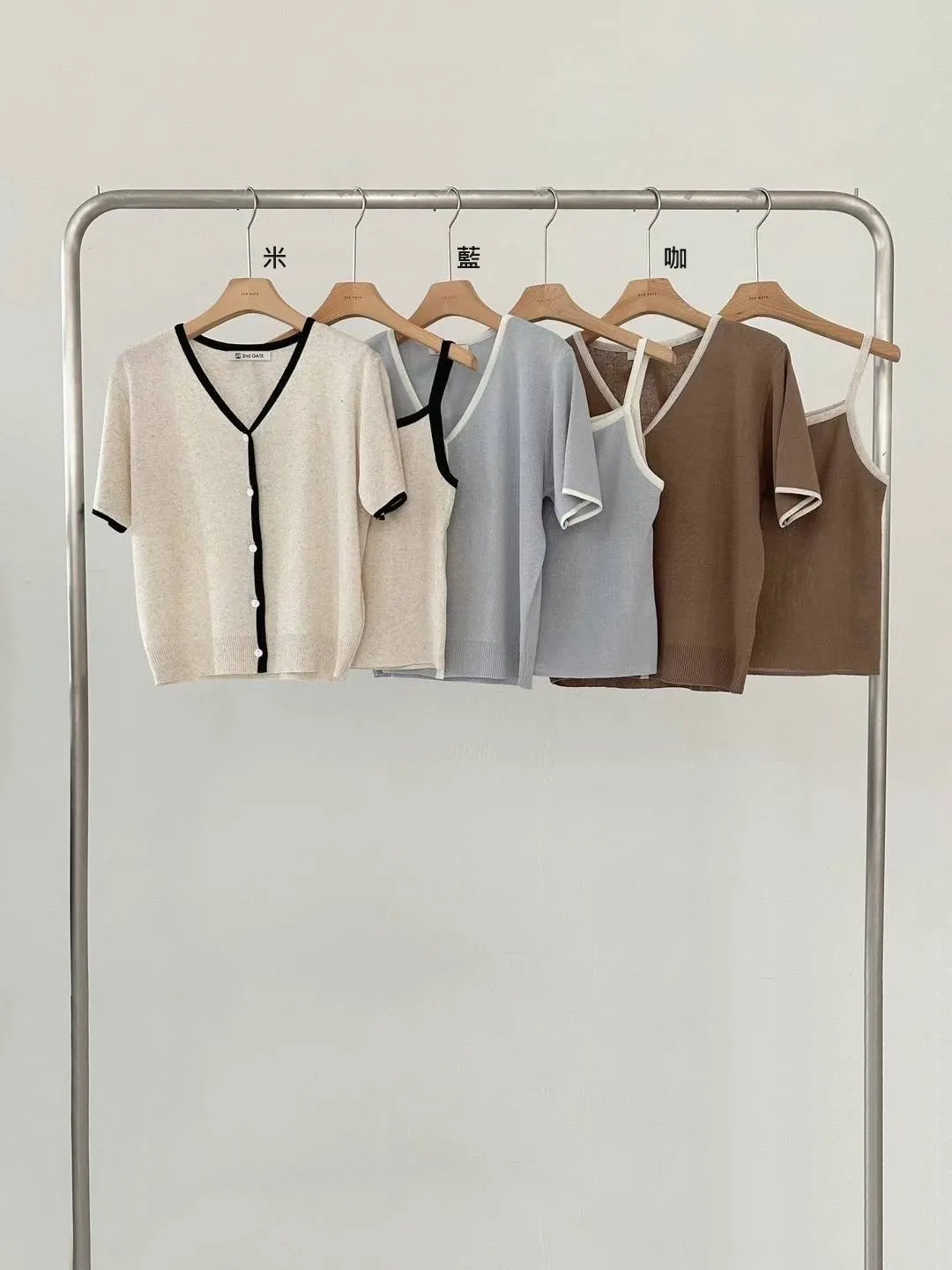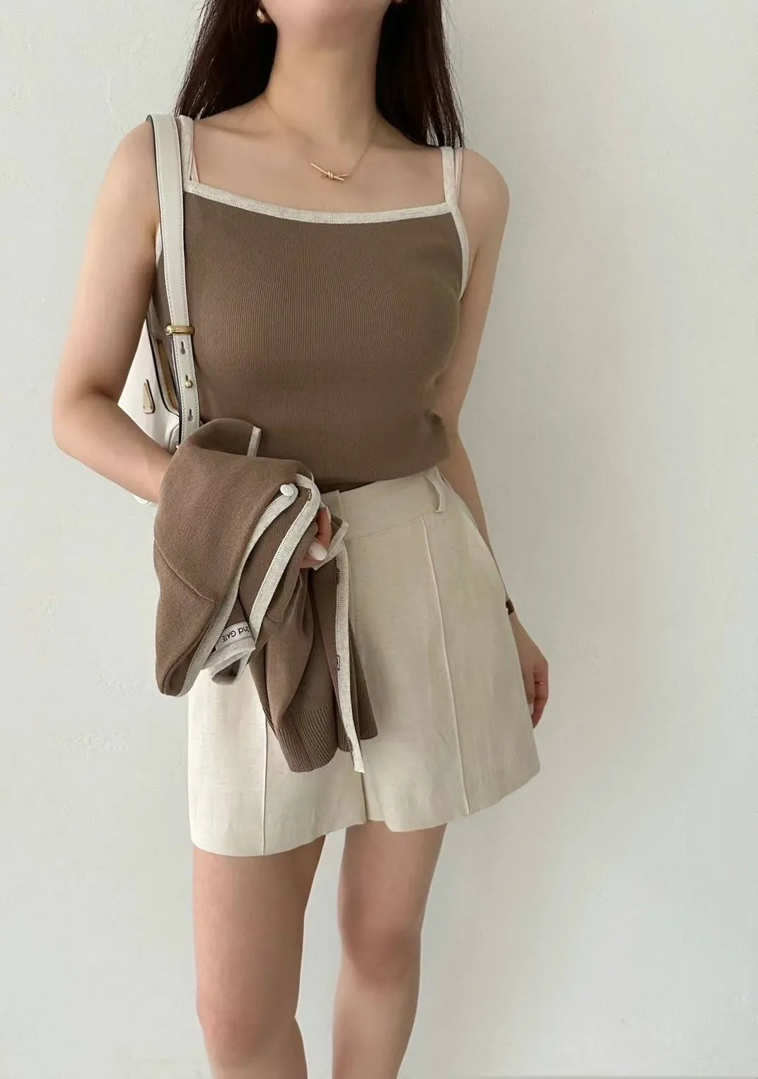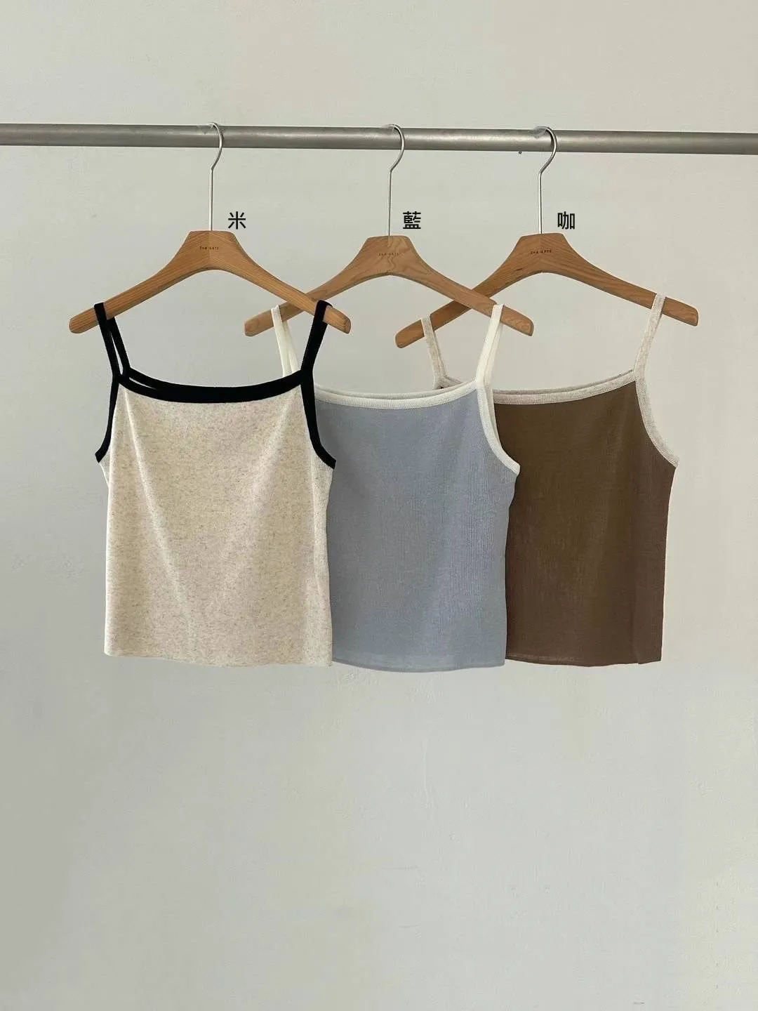 HJ445跳色滾邊背心 米 藍 咖 官網價$720 線上價$690