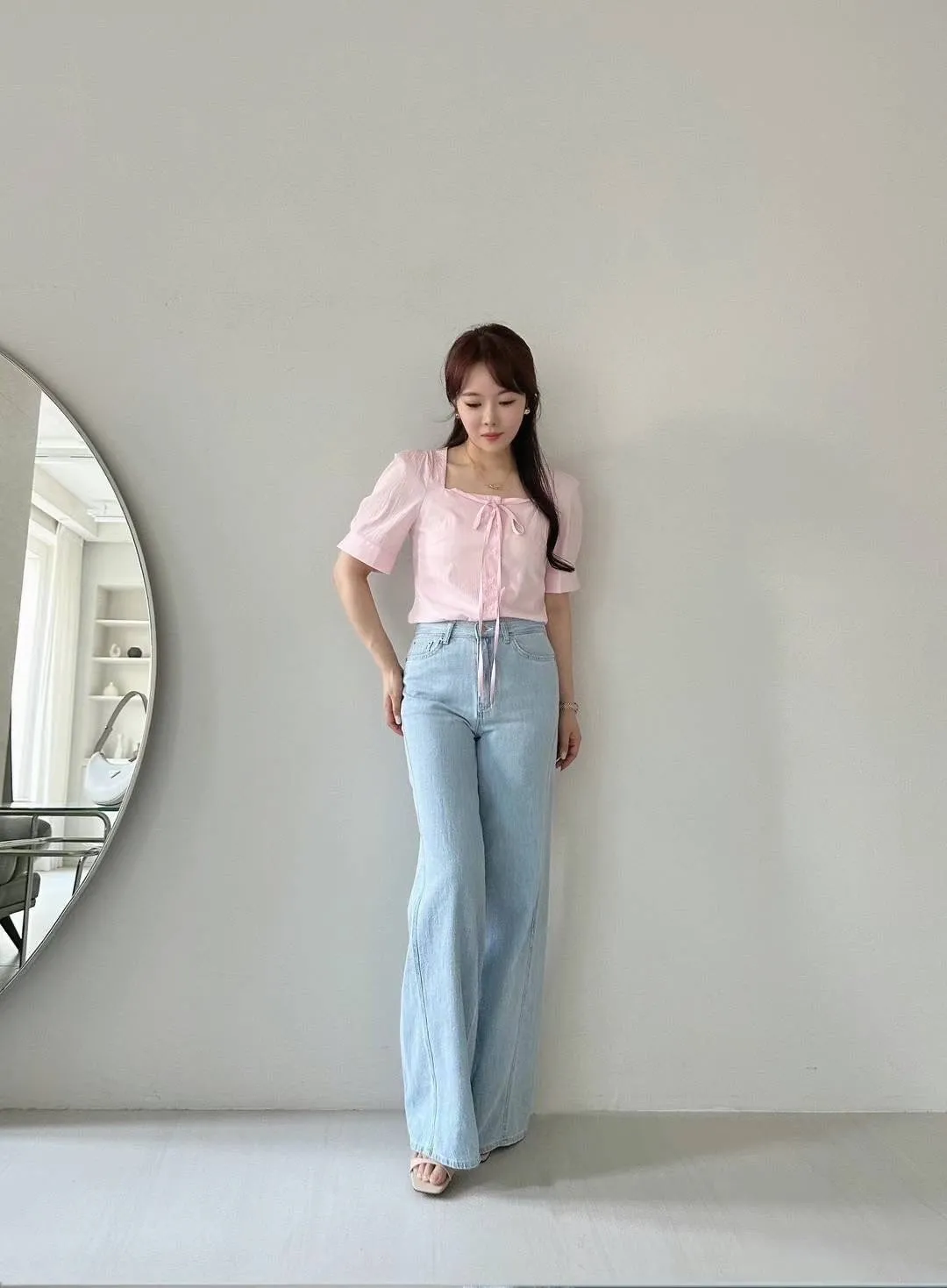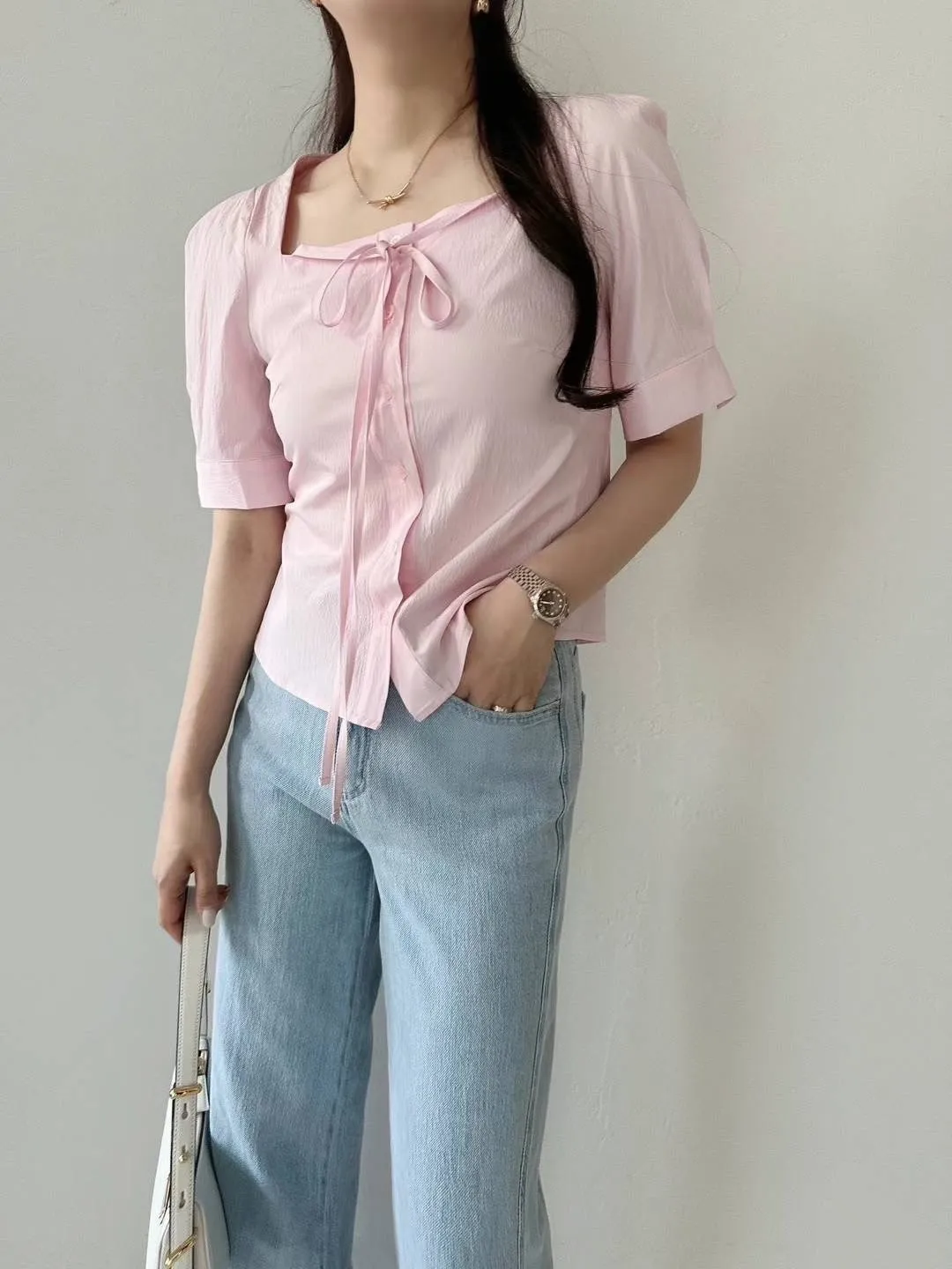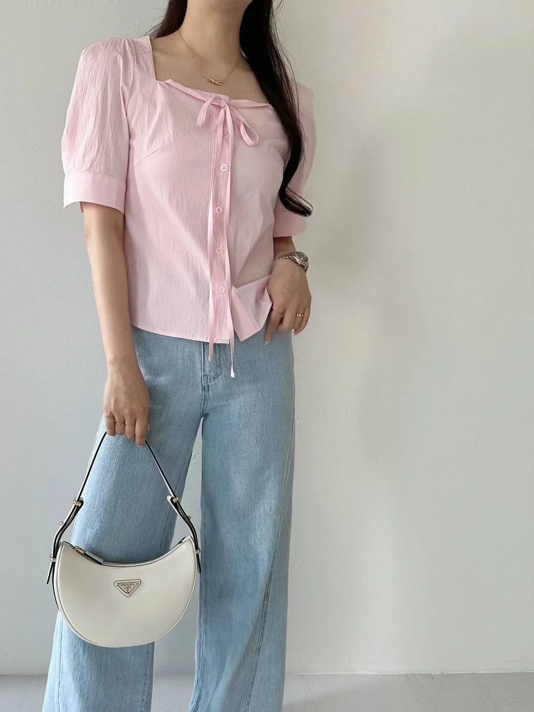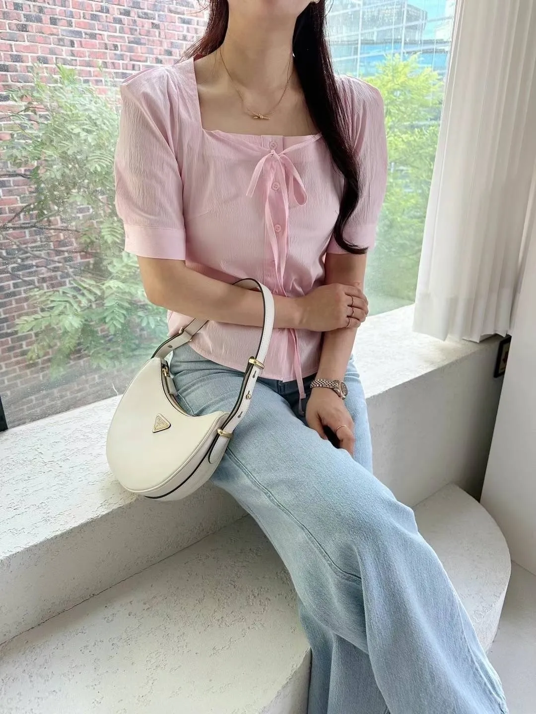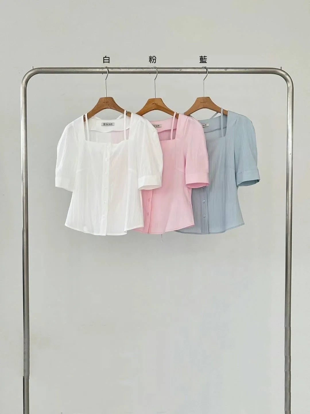 HJ449胸綁帶方領上衣 白 粉 藍 官網價$1210 線上價$1180