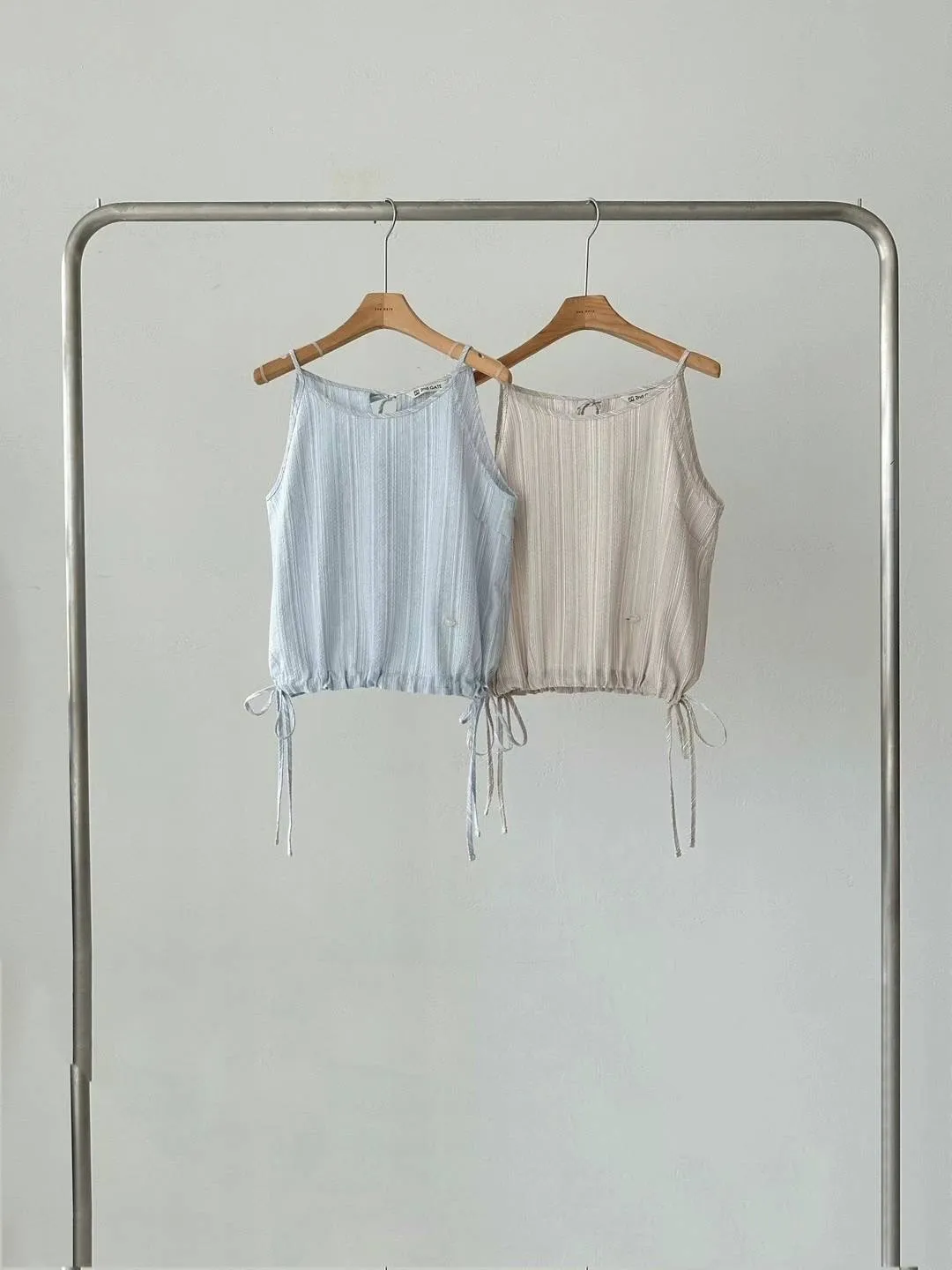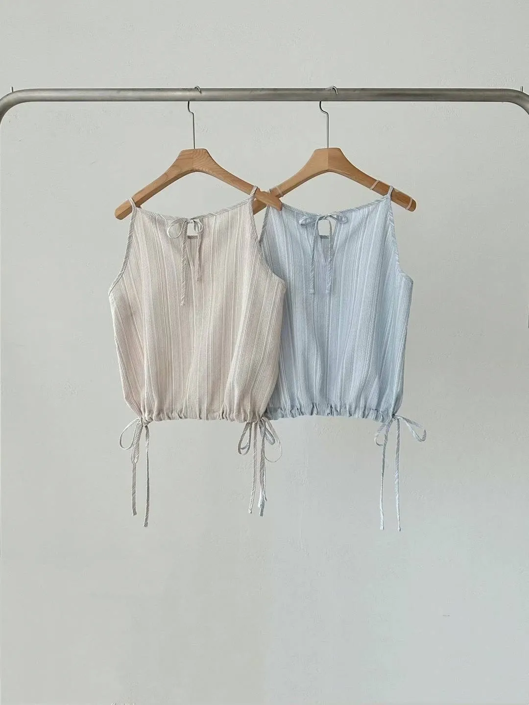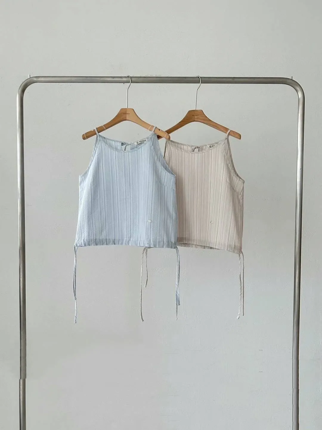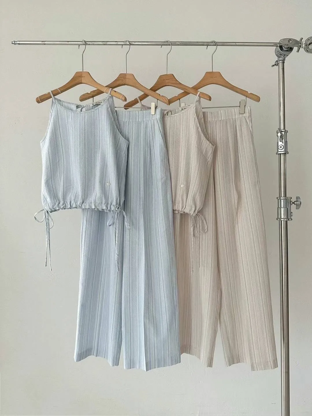 HJ452套裝的細緻條紋上衣 米 藍 官網價$880 線上價$850