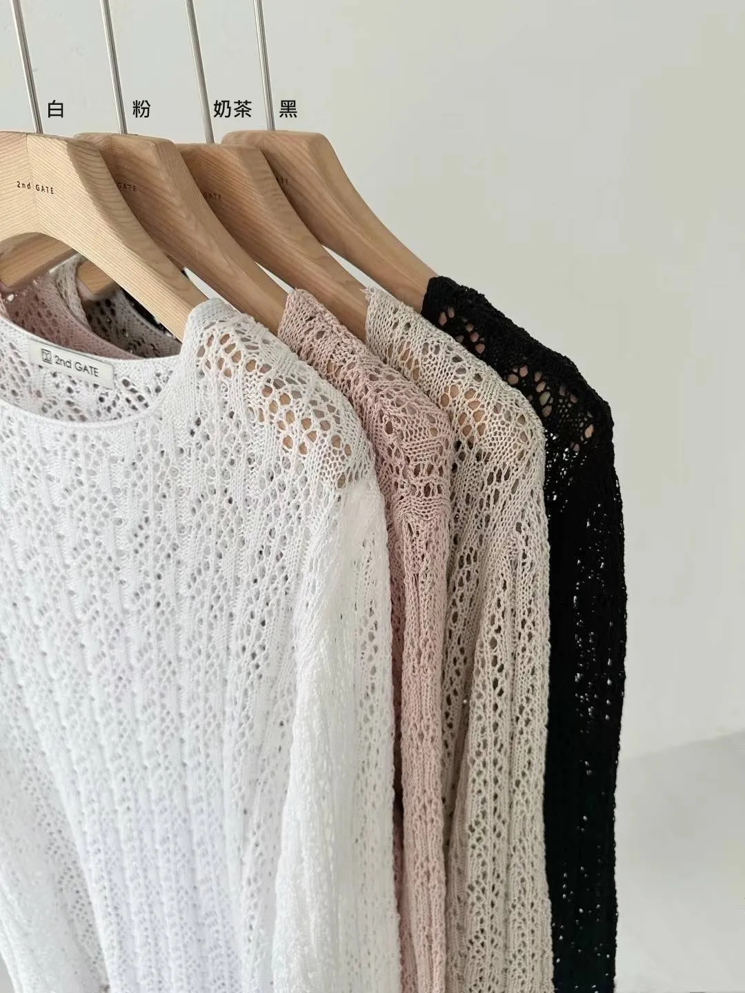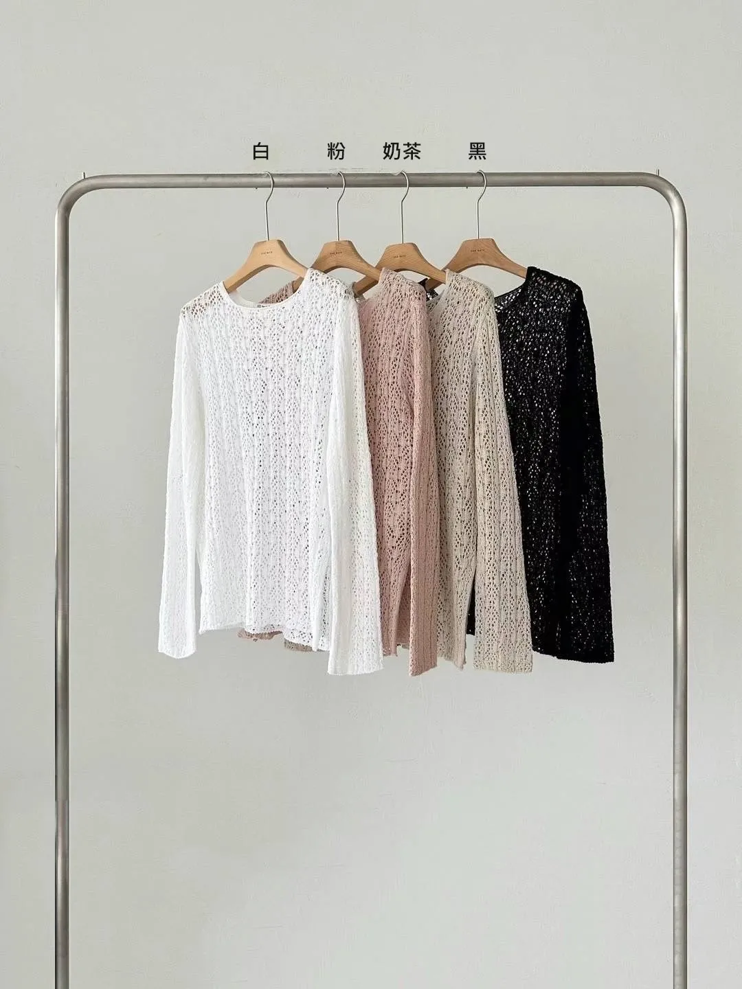 HJ457透光簍空針織衣 白 粉 黑 奶茶 官網價$950 線上價$920