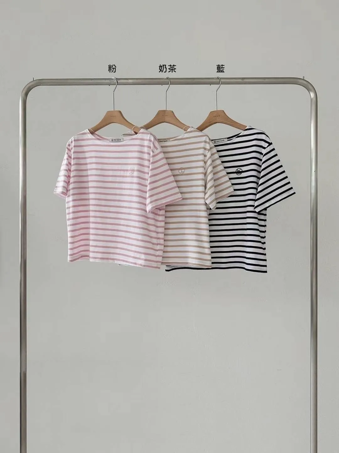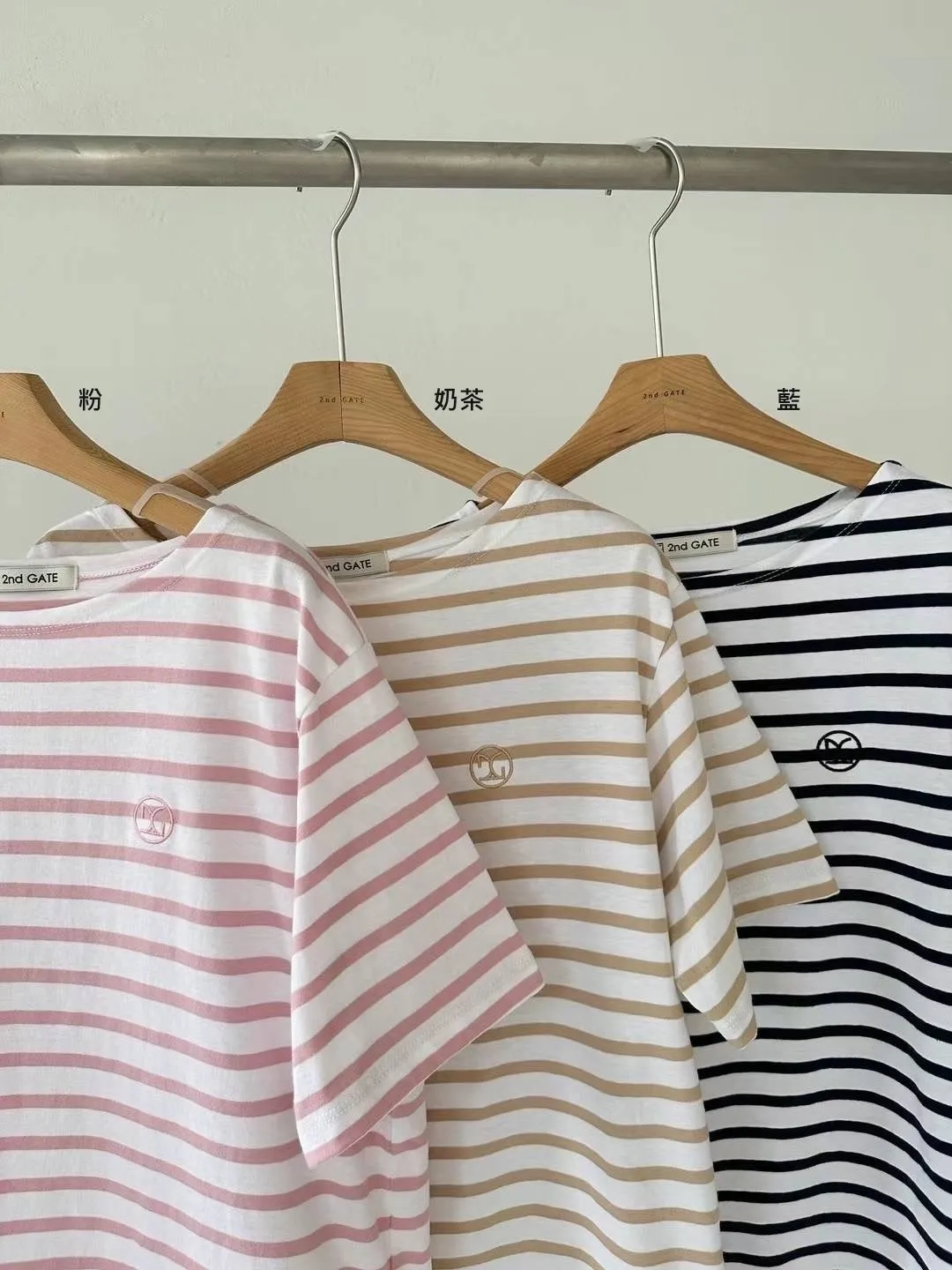 HJ459船型領條紋上衣 粉 藍 奶茶 官網價$650 線上價$620