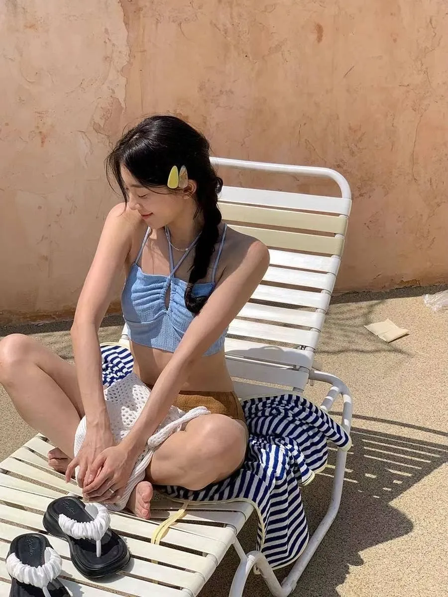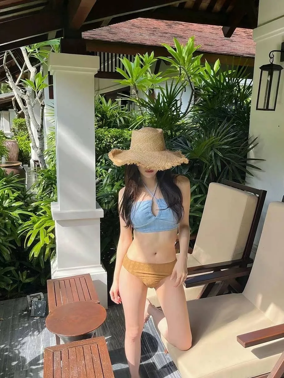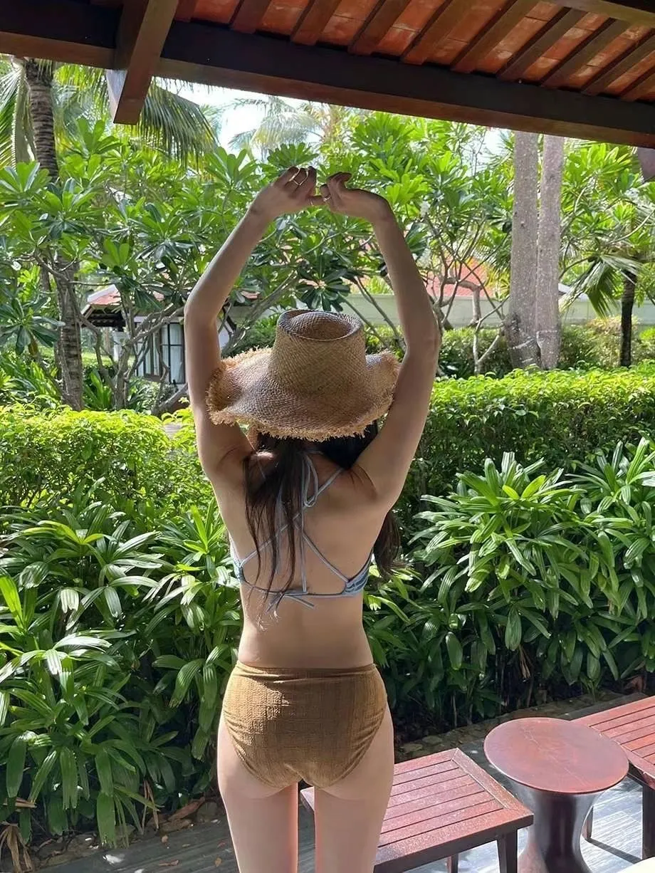 HJ510藍咖胸交叉簍空兩截式泳裝(試穿品)