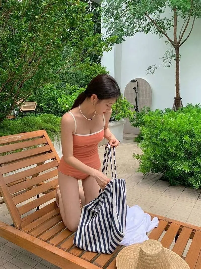 HJ511滾邊平口橘色連身泳裝(試穿品)