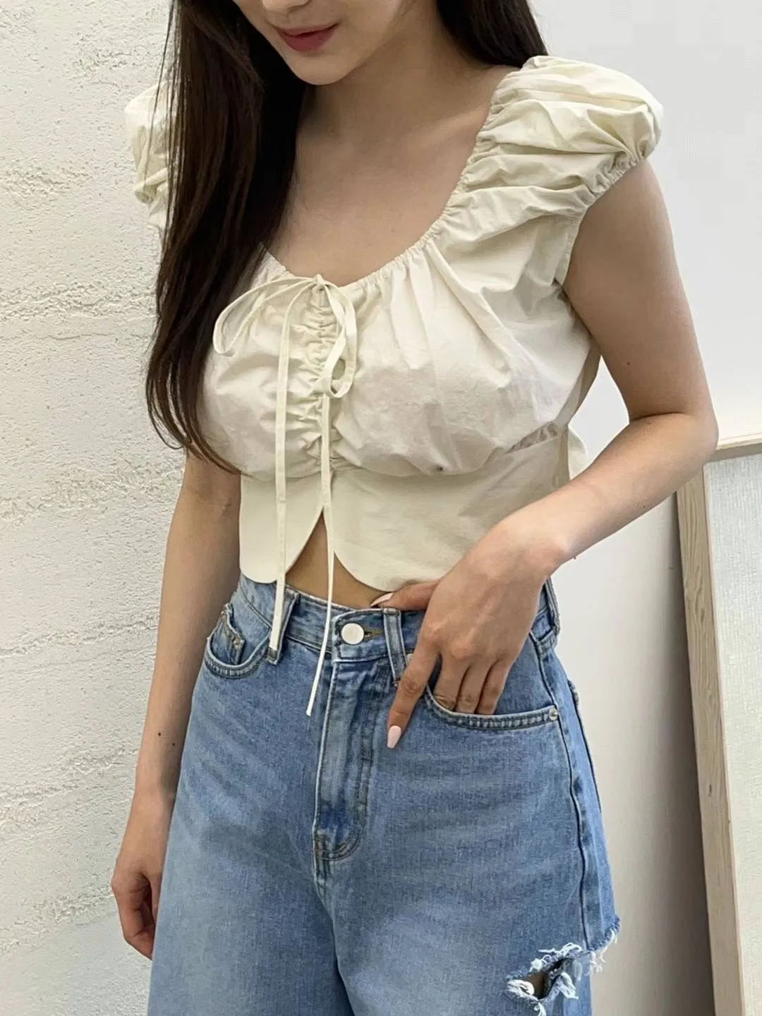 棉 胸綁帶 可拉一次領 下擺圓弧開叉 視覺胸up效果