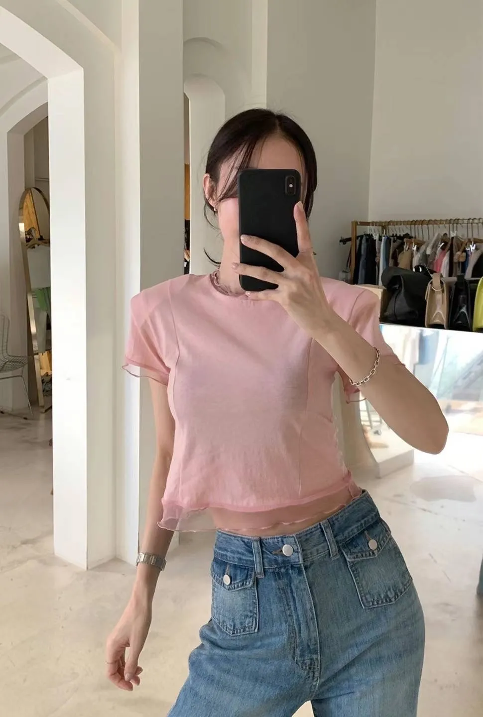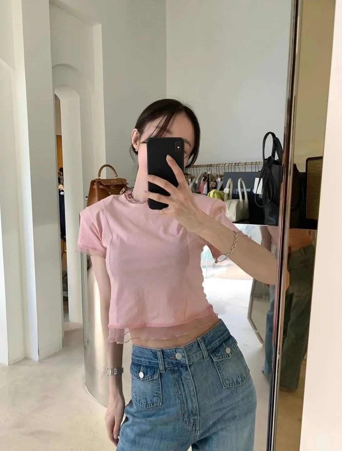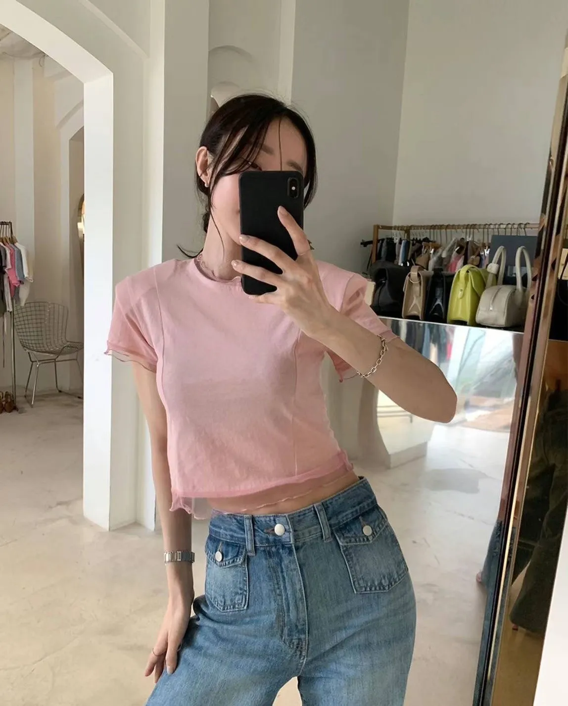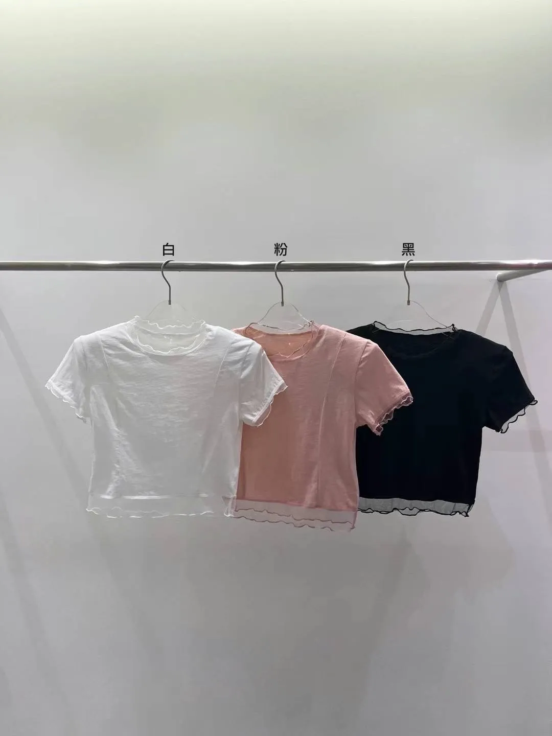 棉+聚酯 薄款 柔軟舒適 顯瘦雙車線 微短版