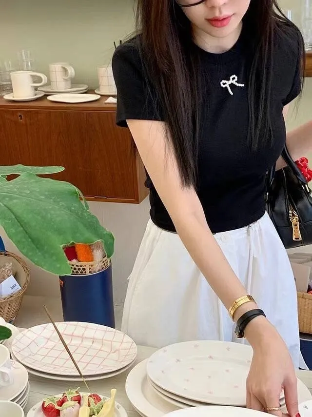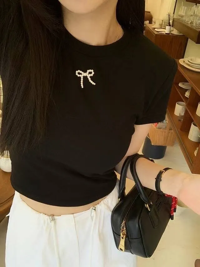 棉+聚酯+彈力 立體珍珠蝴蝶結 有彈性 有墊肩可拆