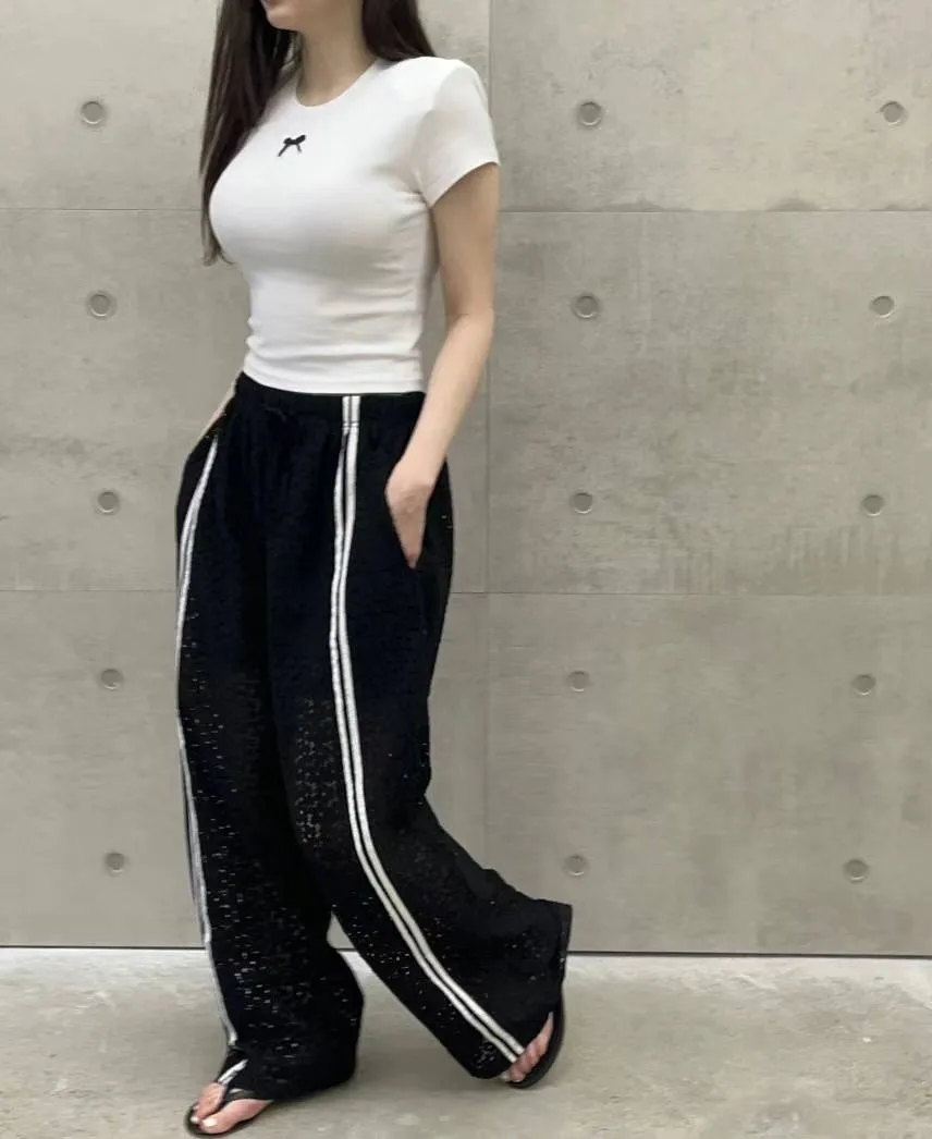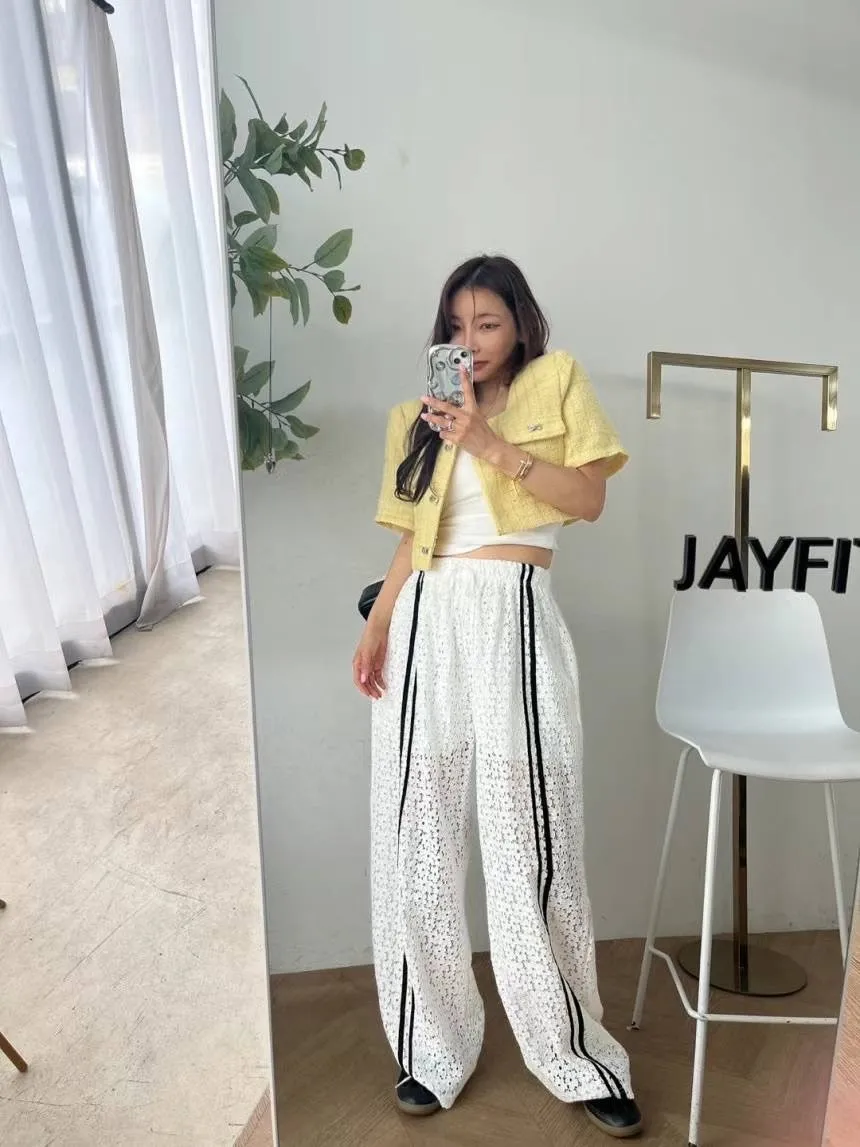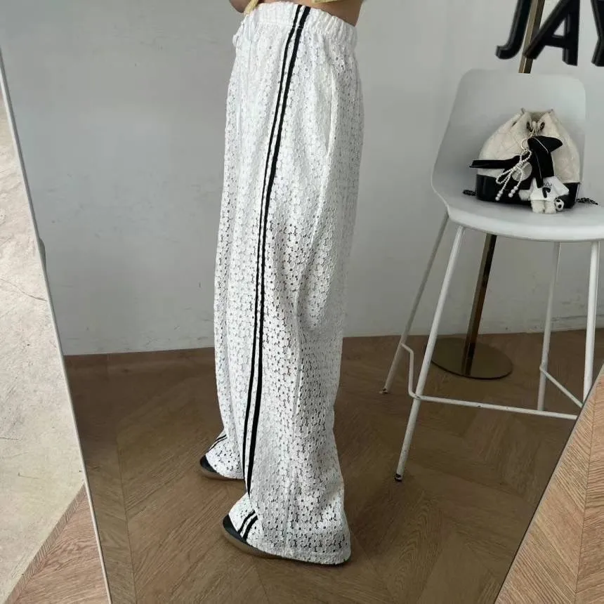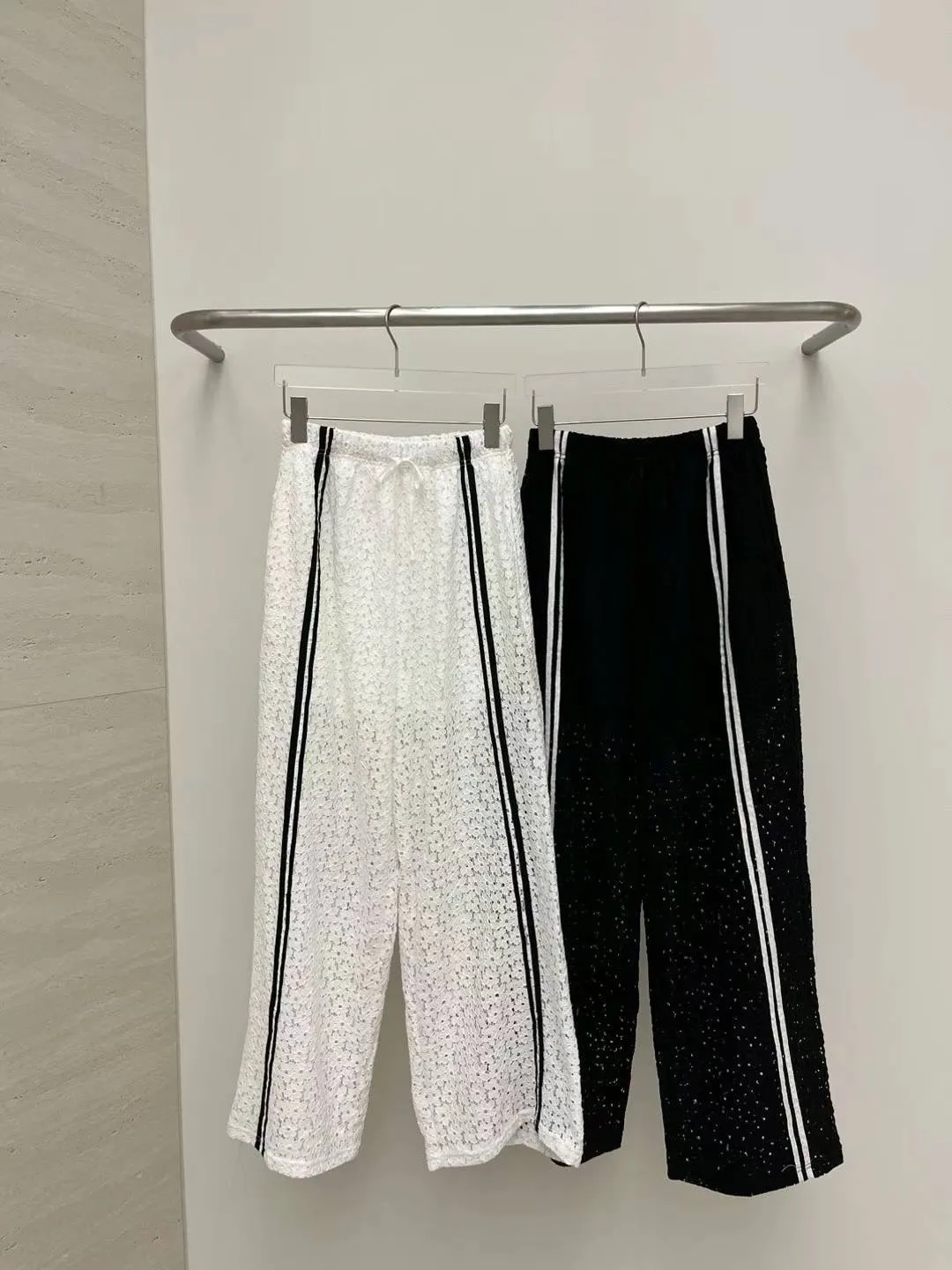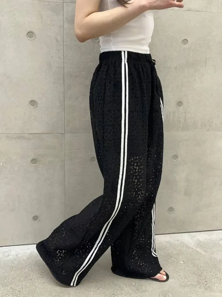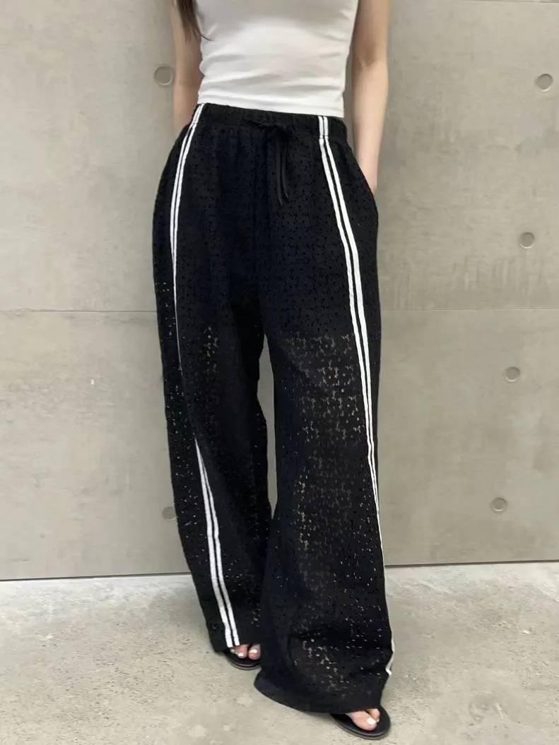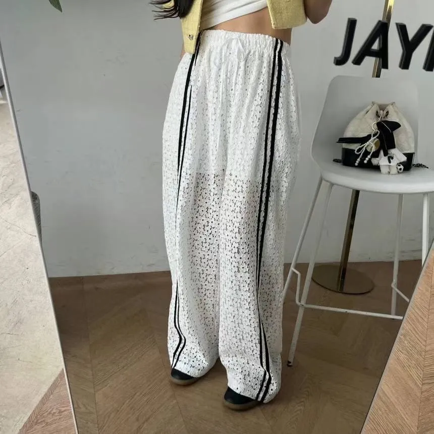 跳色車線 全腰鬆緊有抽繩 隱約透光 內裡到大腿 簍空涼爽
