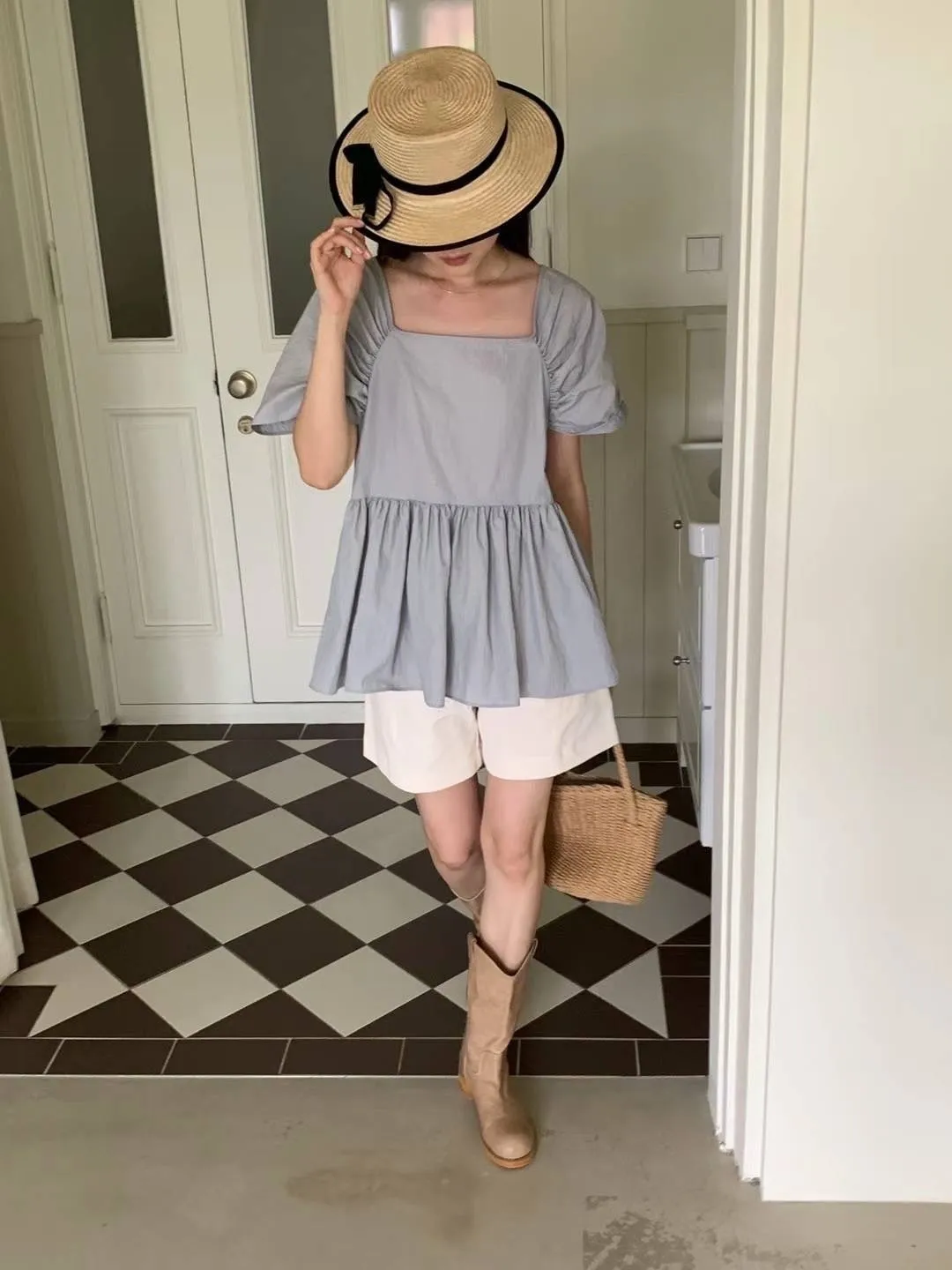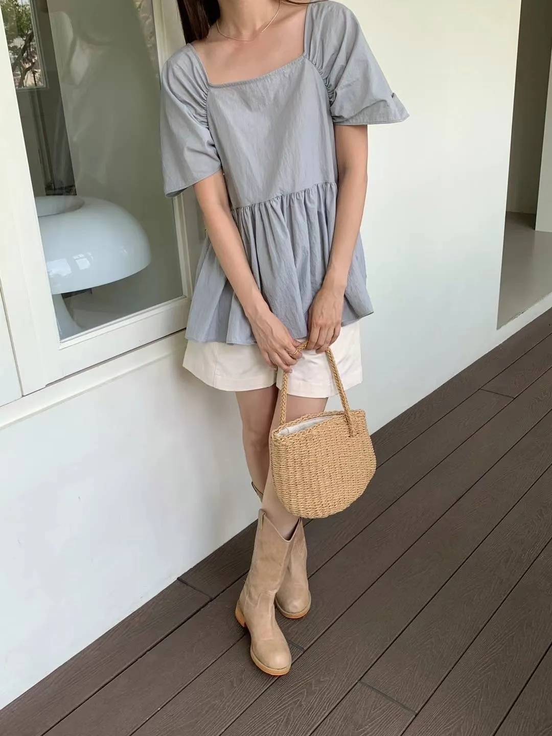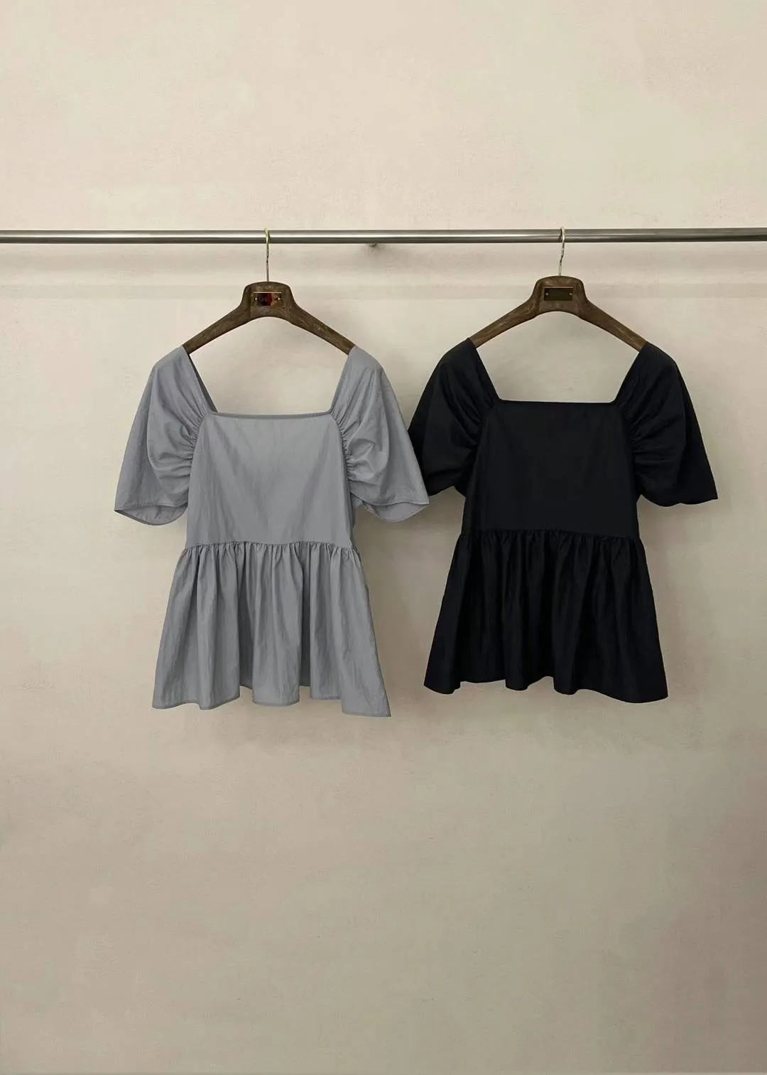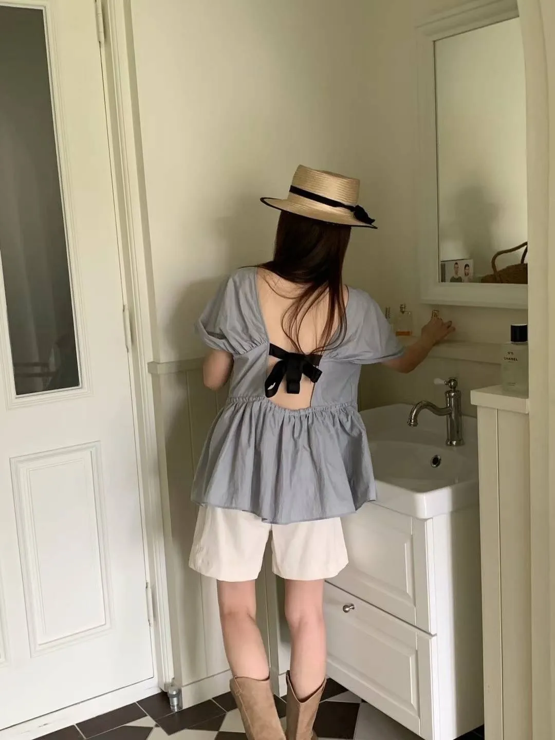 聚酯,方領顯瘦 公主袖 背後簍空綁帶 空間寬鬆