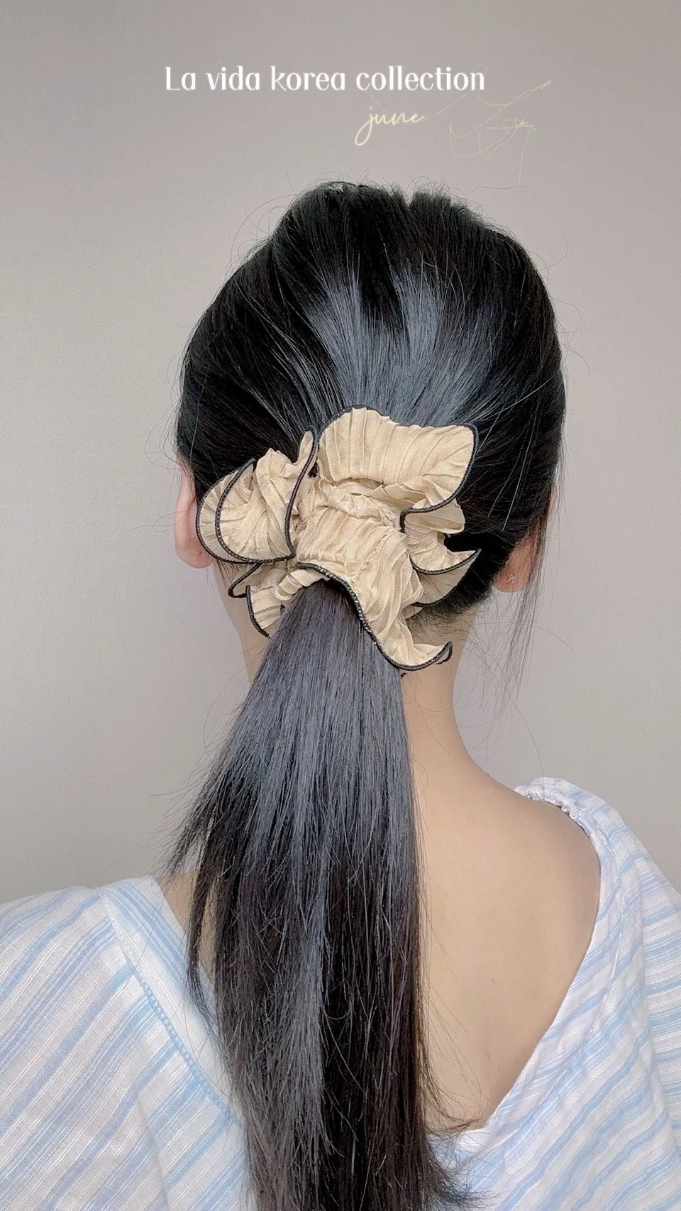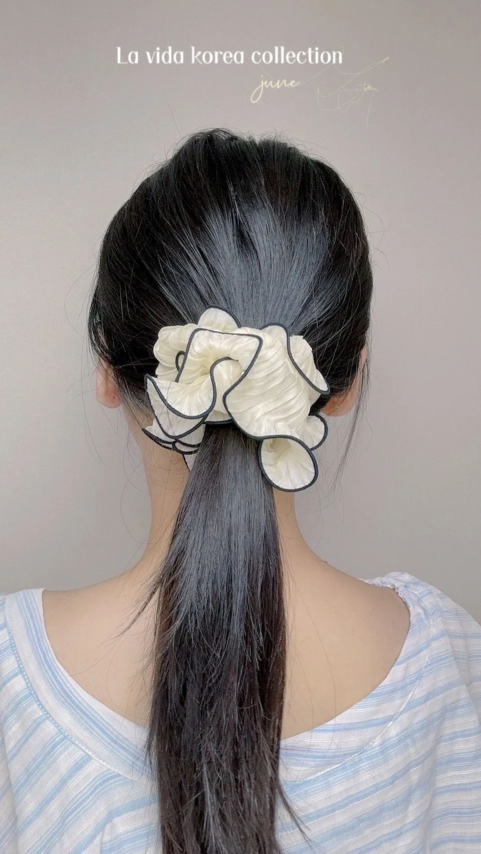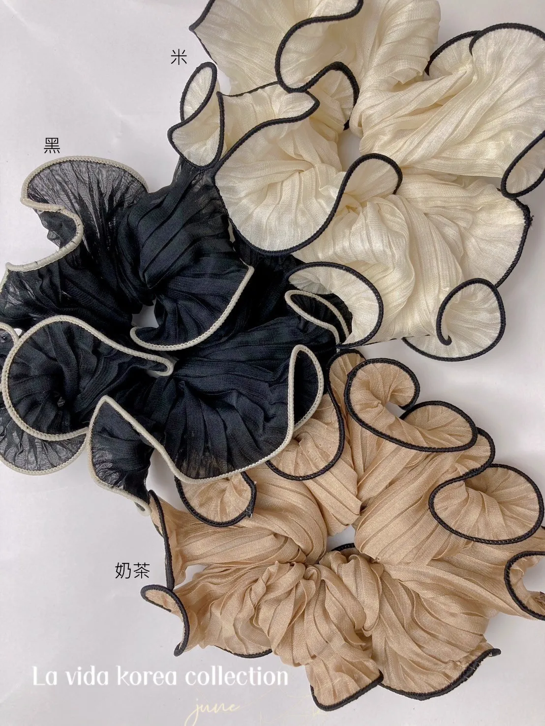 HJ776超美氣質描邊波浪雪紡髮圈 米 黑 奶茶 官網價$89 永恆甜甜價$69