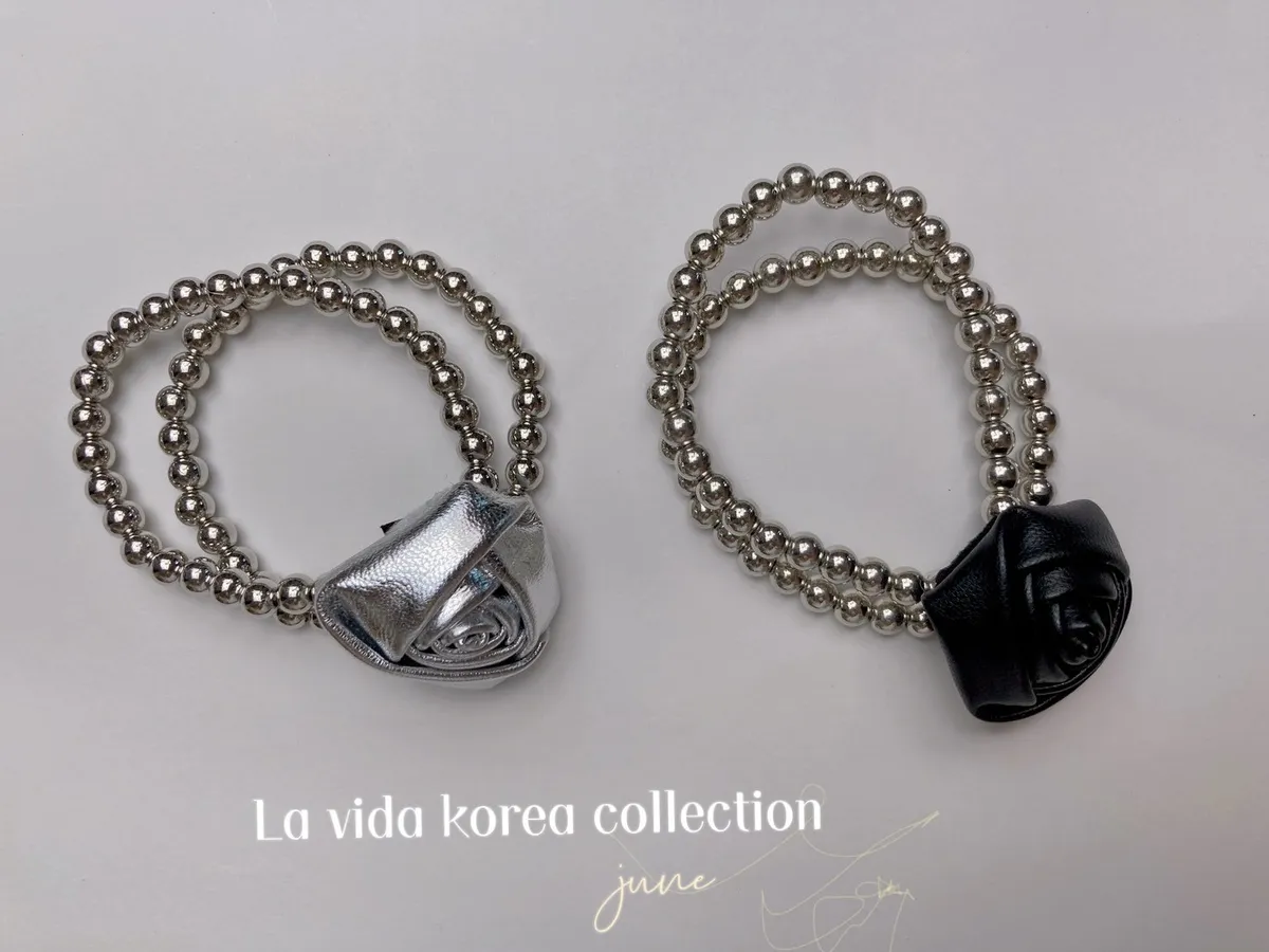 HJ781玫瑰花雙圈銀珠髮圈 銀 黑 官網價$120 永恆甜甜價$90