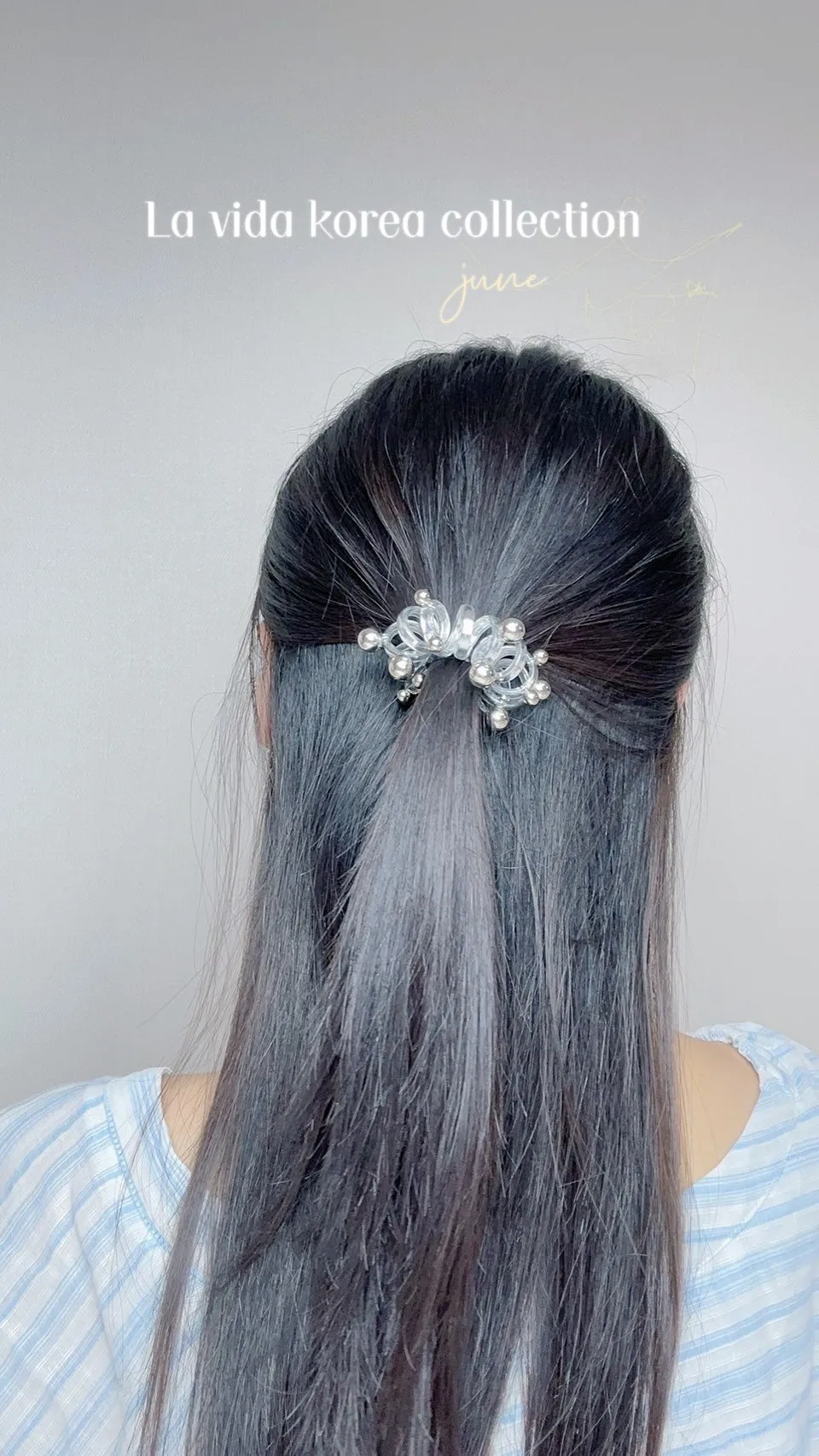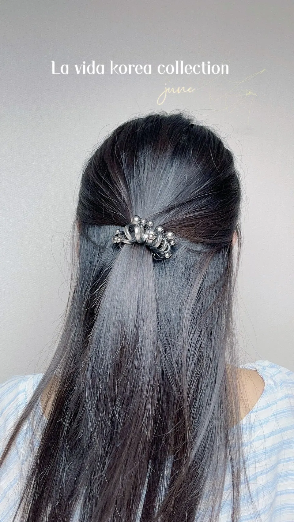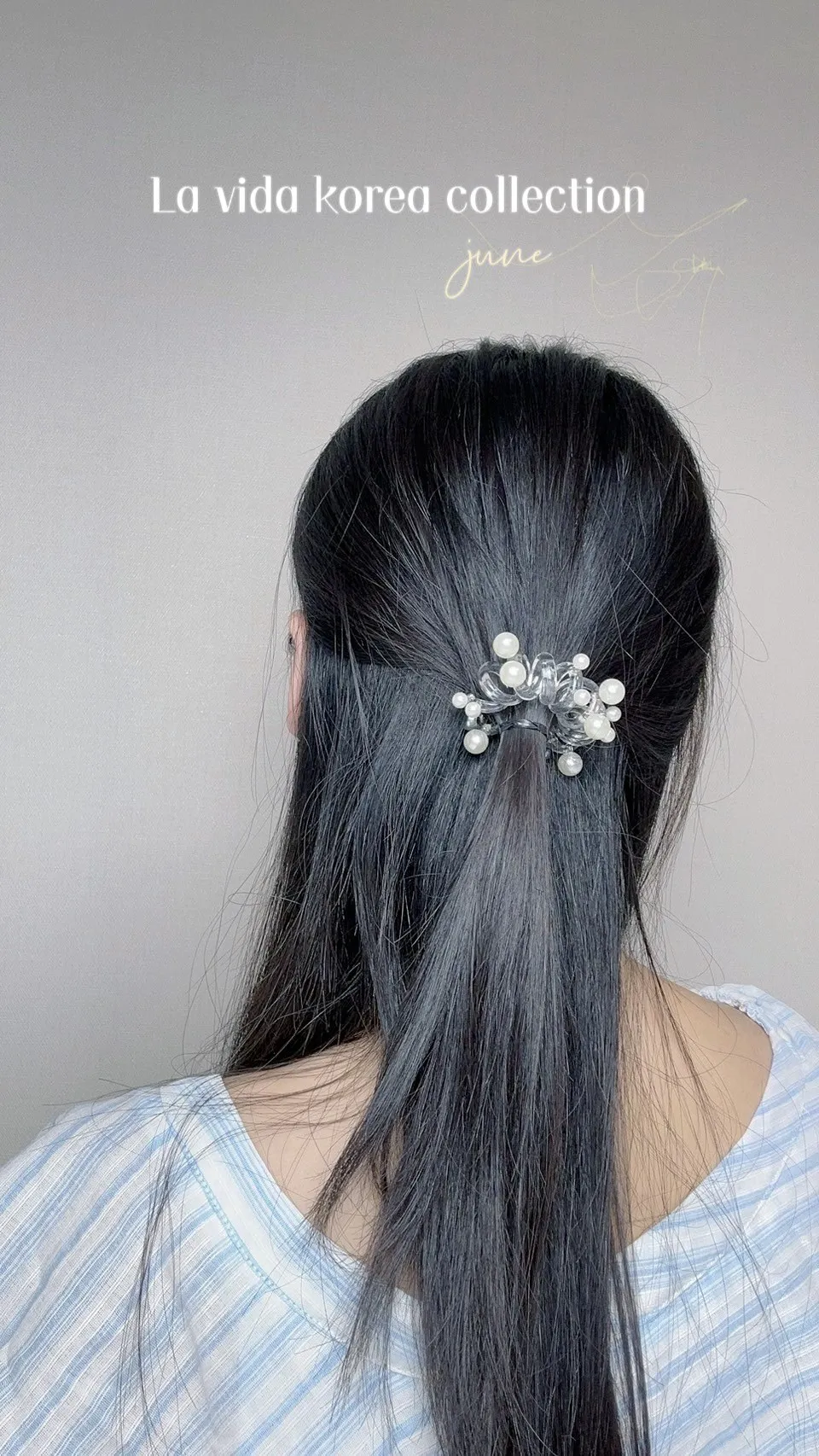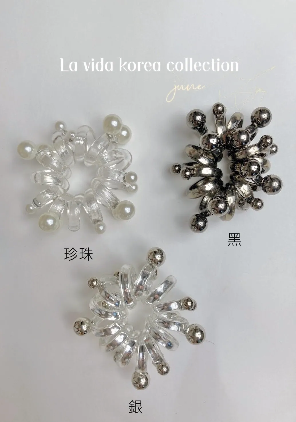 HJ788層次珍珠透明電話線髮圈 銀 黑 珍珠官網價$86 永恆甜甜價$66
