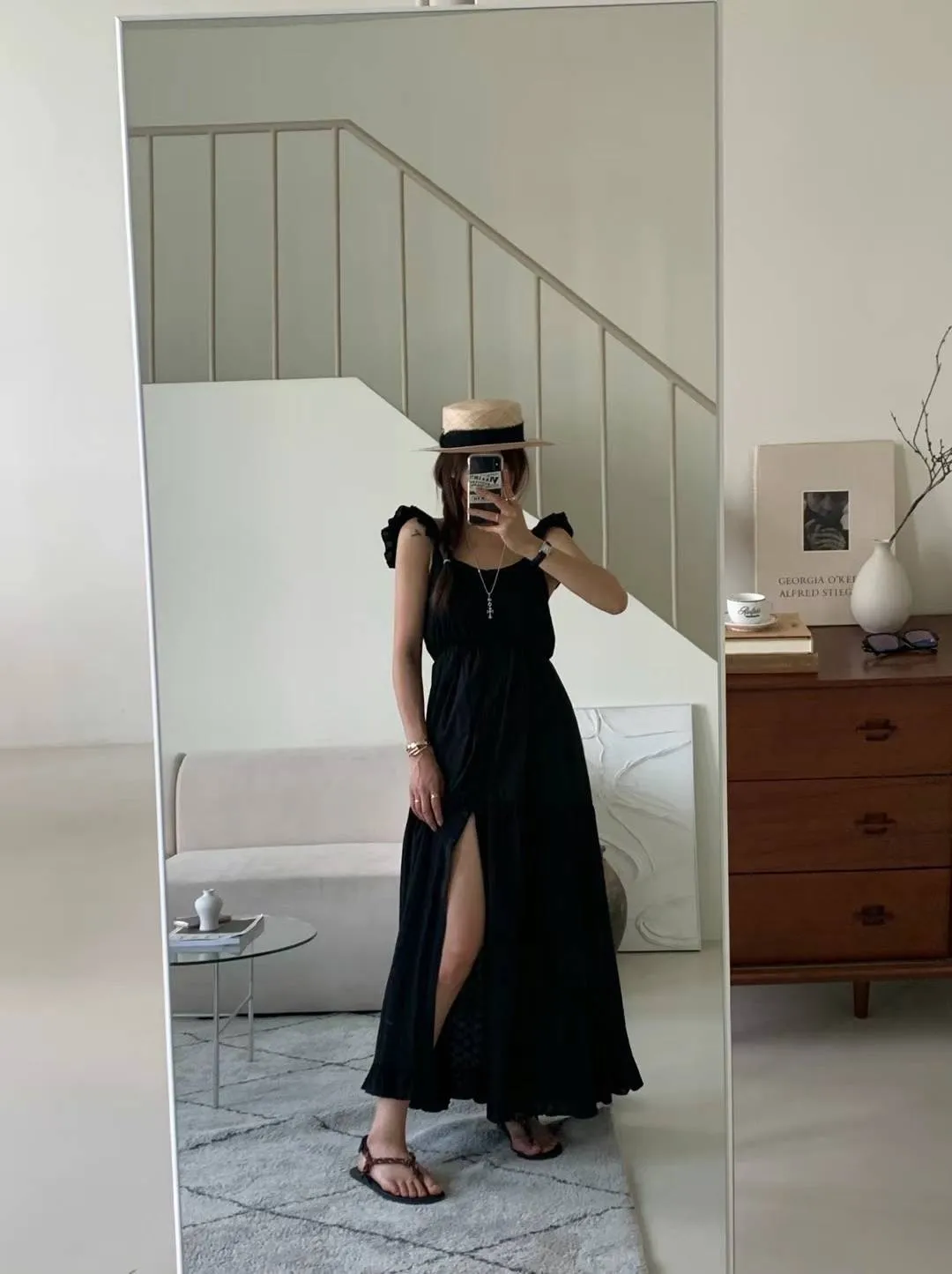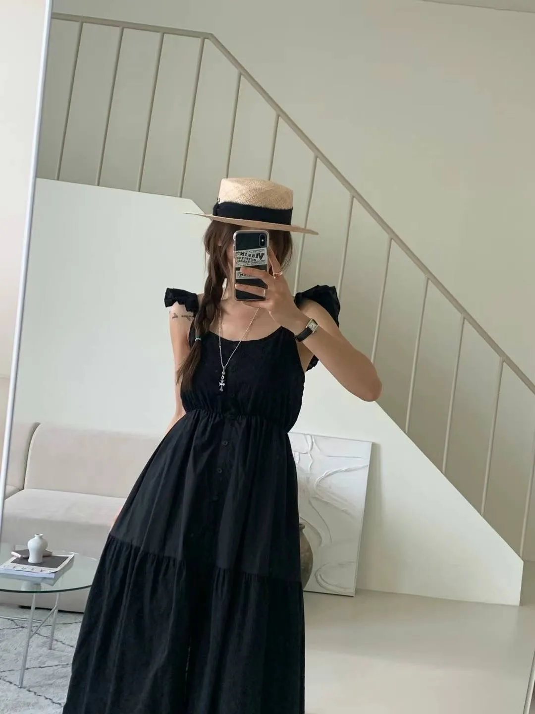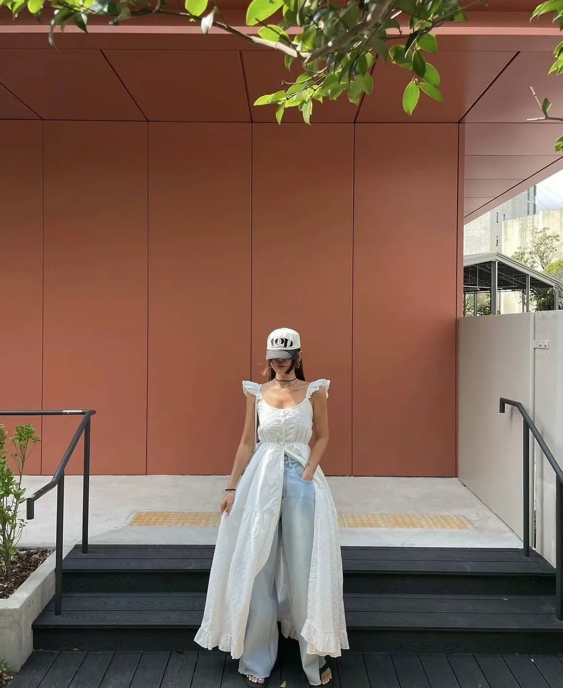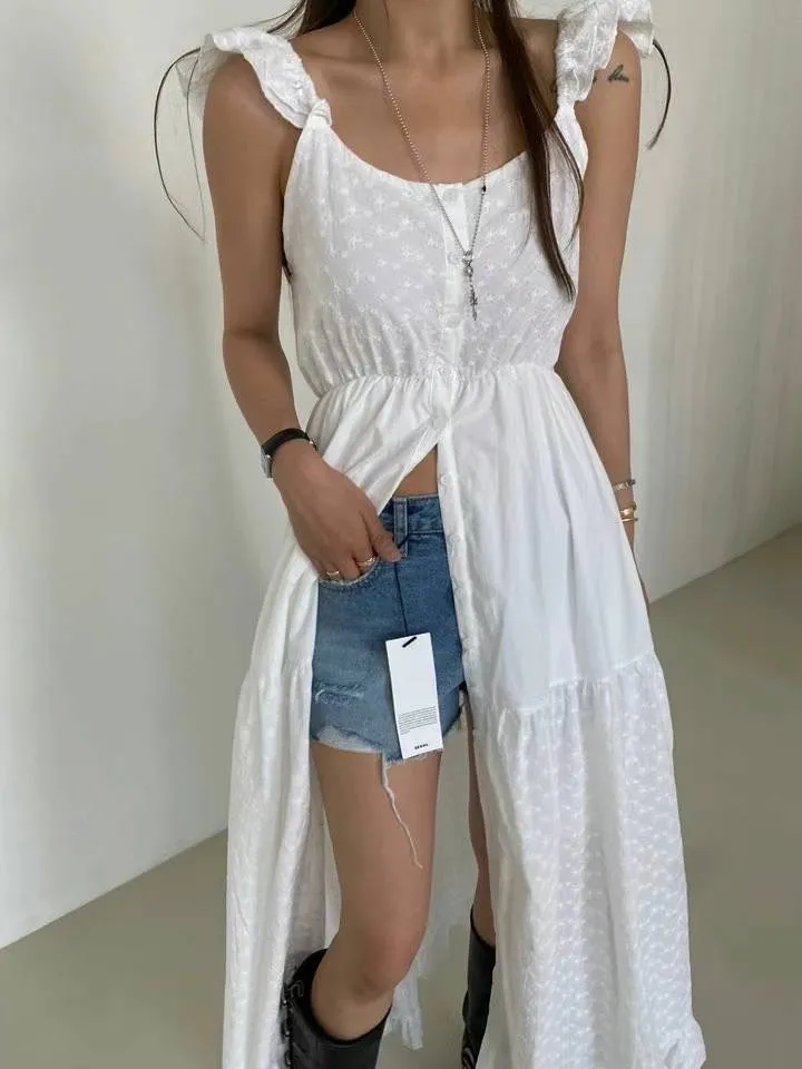 棉 肩帶有彈性 雙層荷葉袖 有內裡 穿到L號