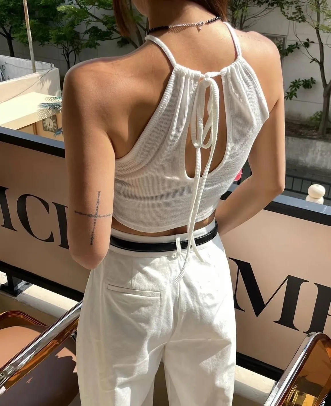 棉,綁帶穿脫 小肚兜美背簍空 短版微露腰 涼爽舒適 穿到小L