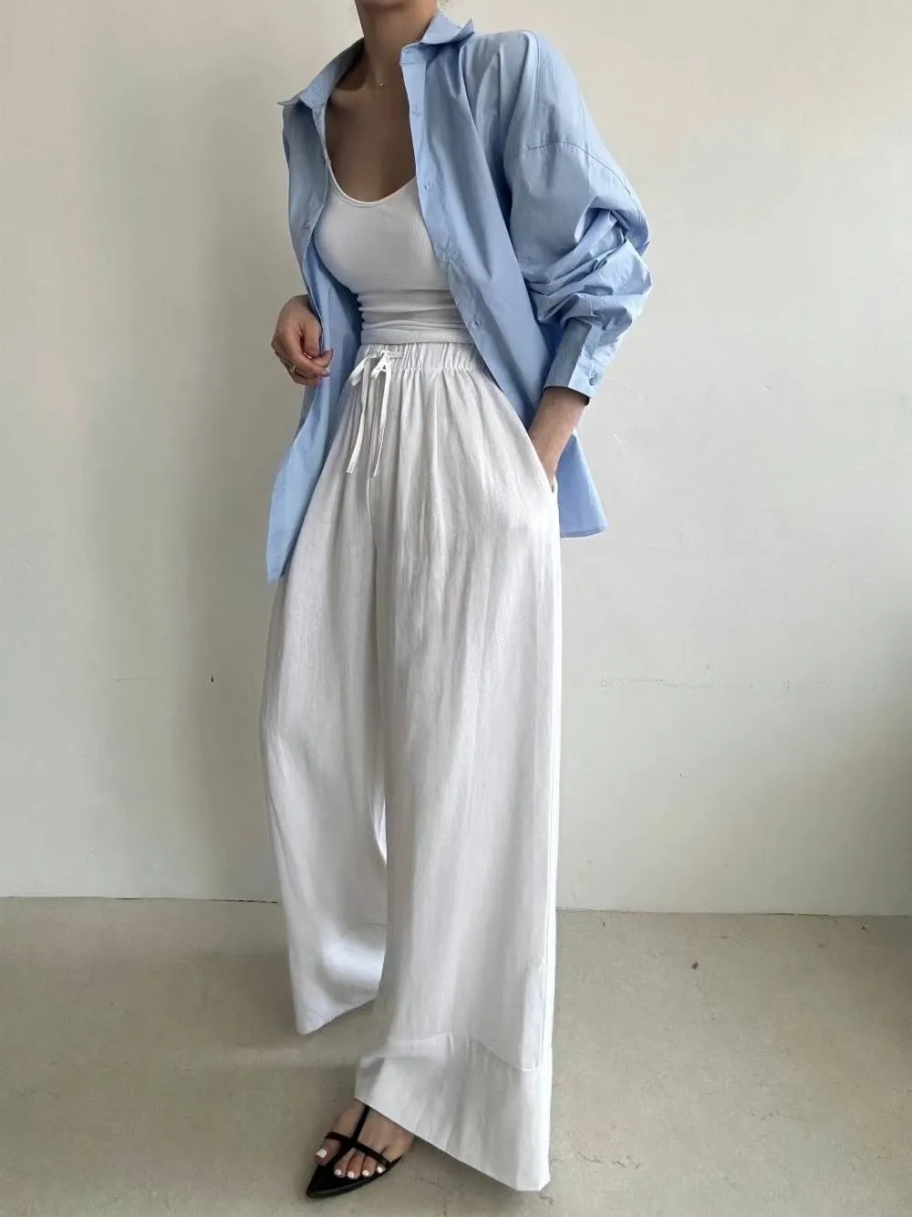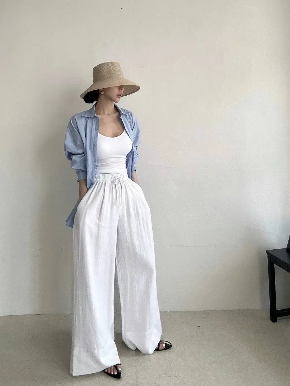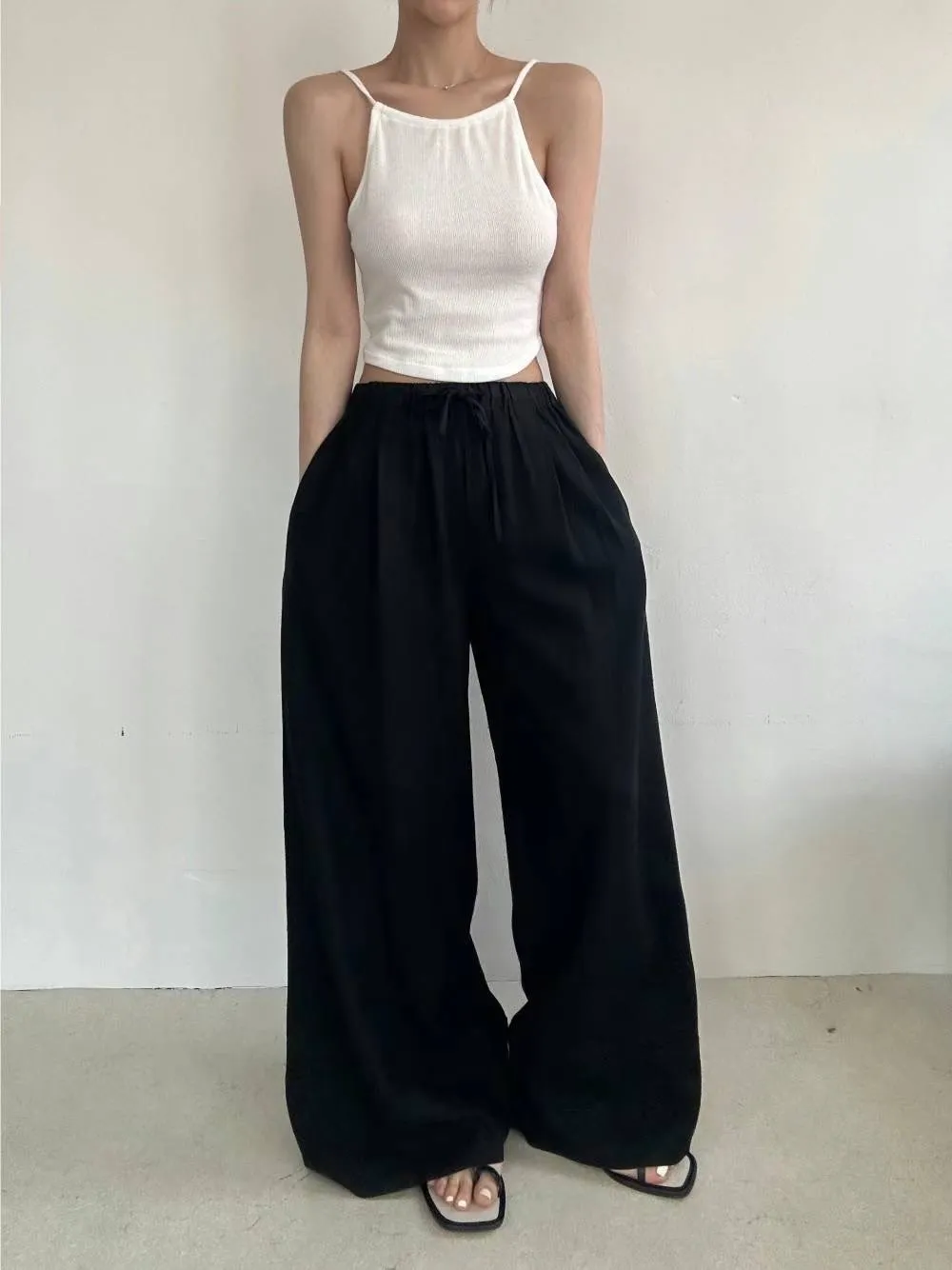 棉麻,薄款 厚度1.3 全腰鬆緊有抽繩 有口袋