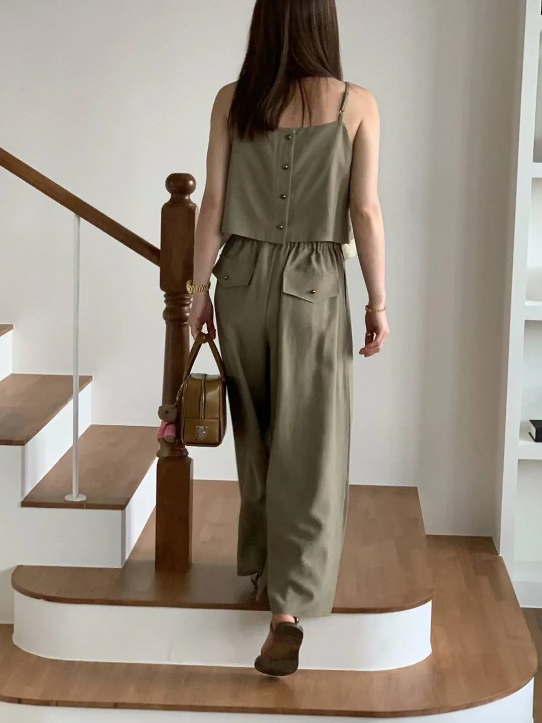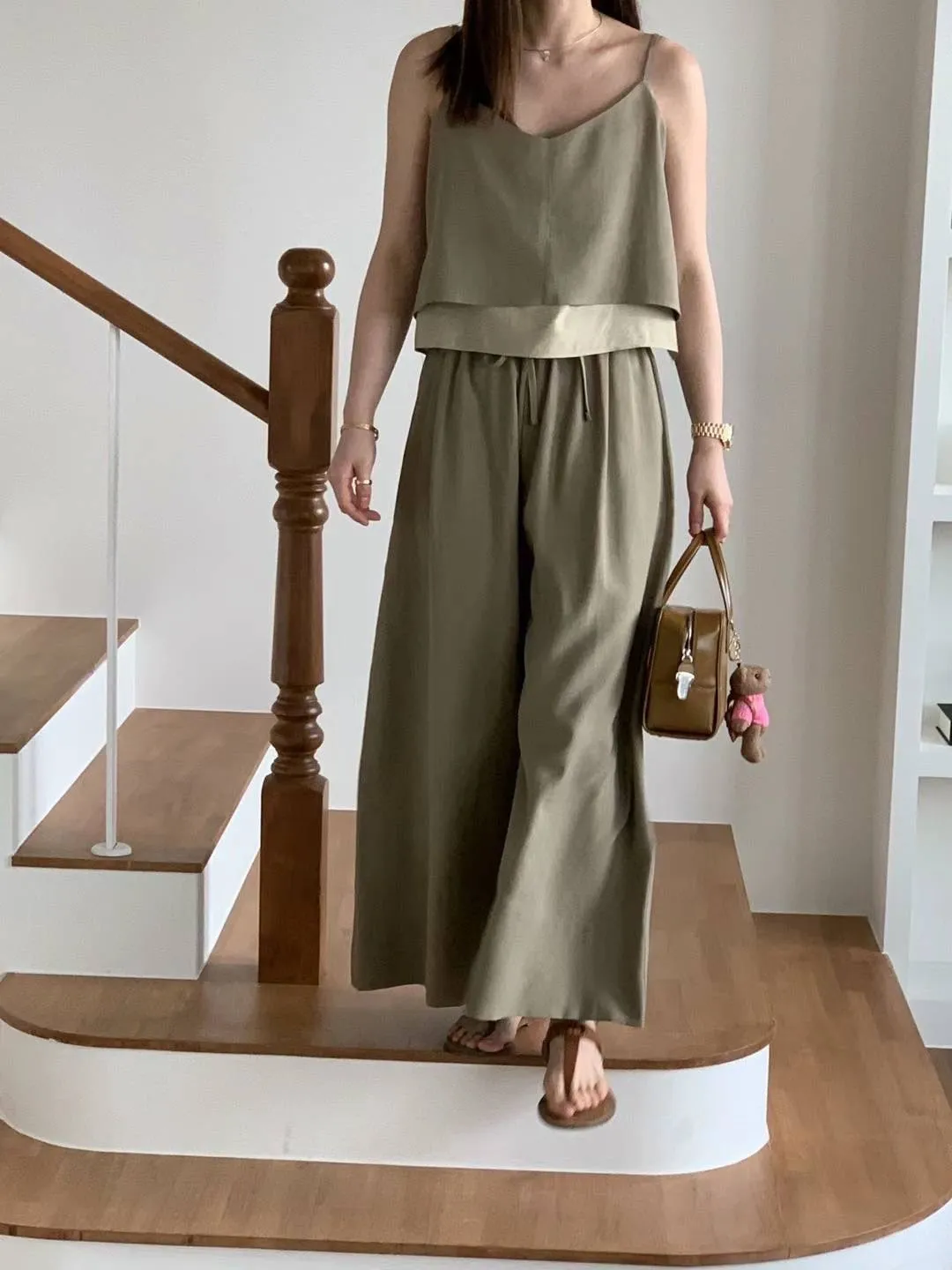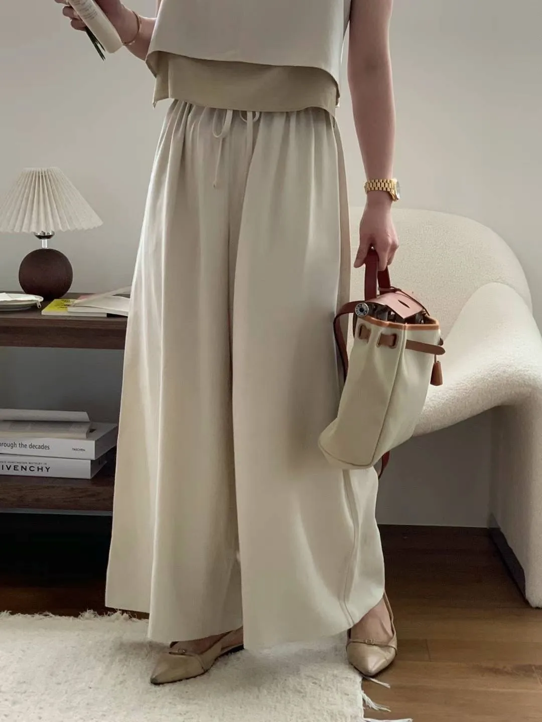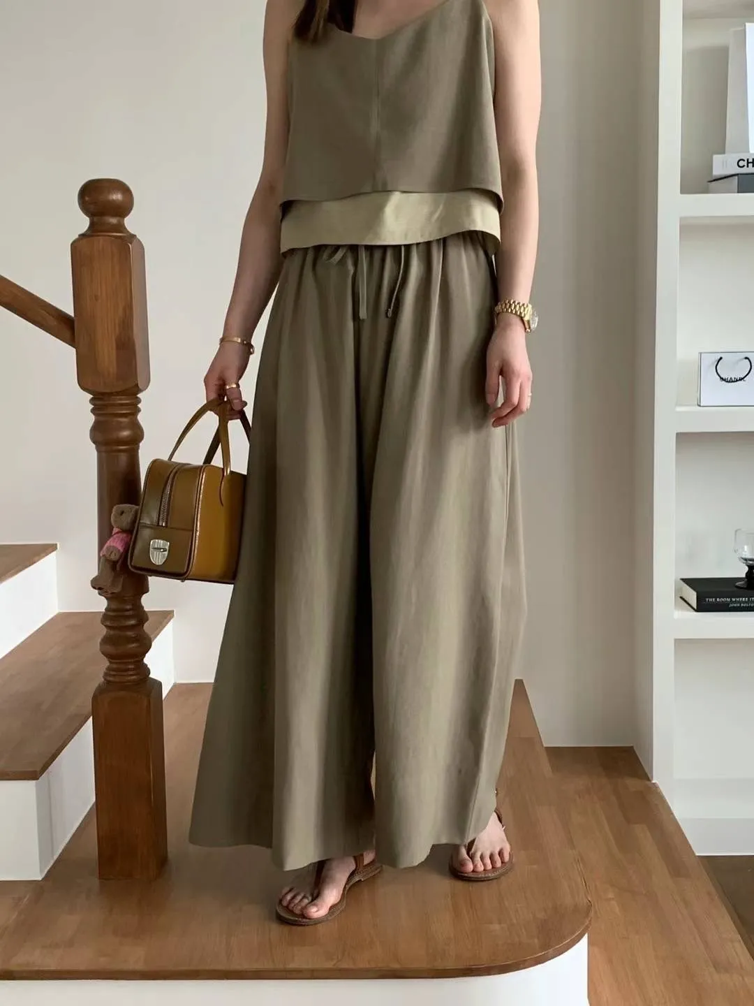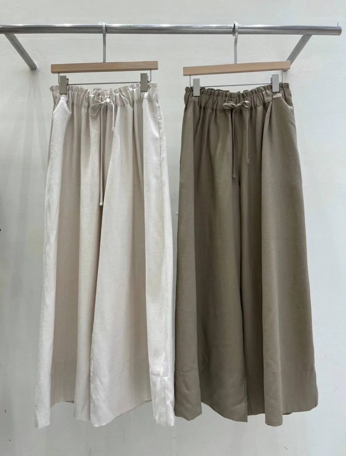 麻+人造絲 親膚舒適 全腰鬆緊有抽繩 有口袋