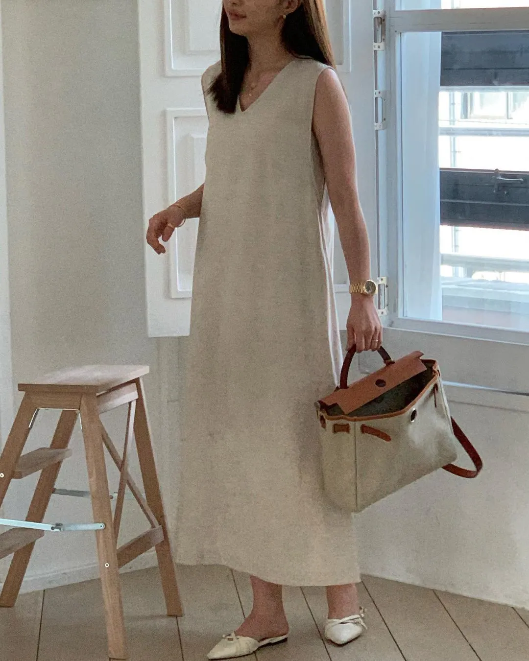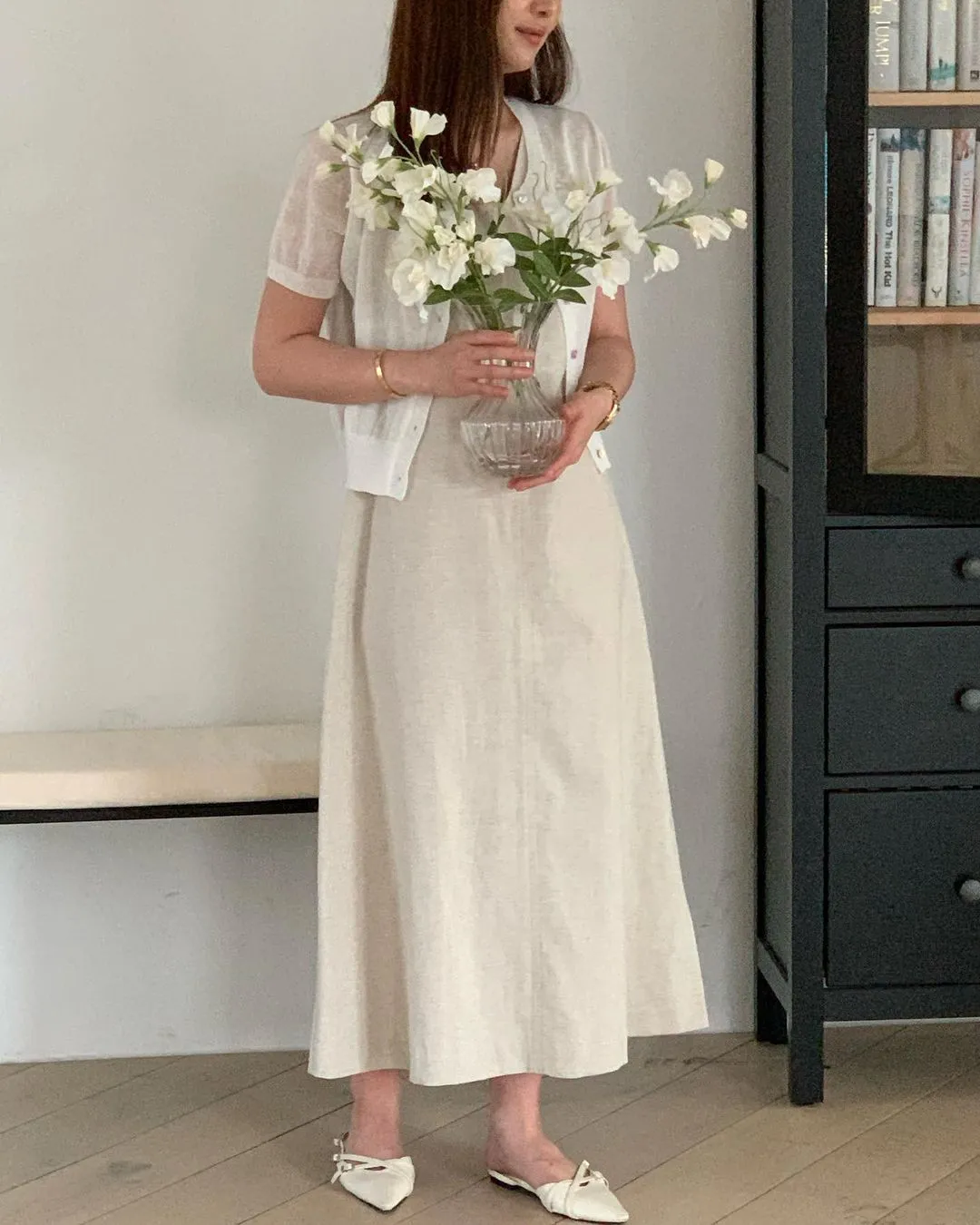 人造絲+麻 中車線好比例 側面腰身車線 L號友善
