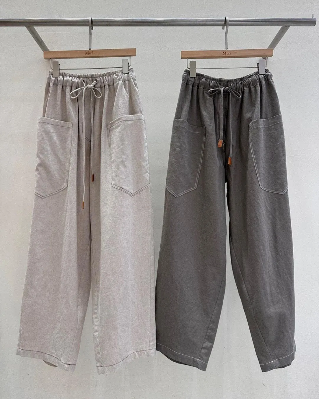 人造絲+麻 全腰鬆緊 雙側大口袋 俏皮男友褲 XXL友善