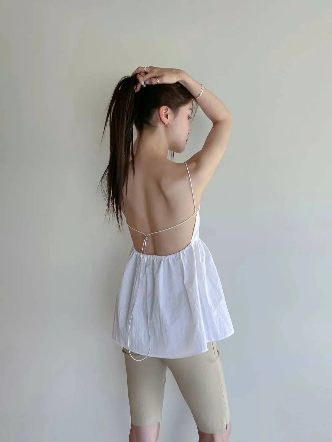 HJ880質感露背細肩帶上衣 白 黑 官網價$690 線上價$660
