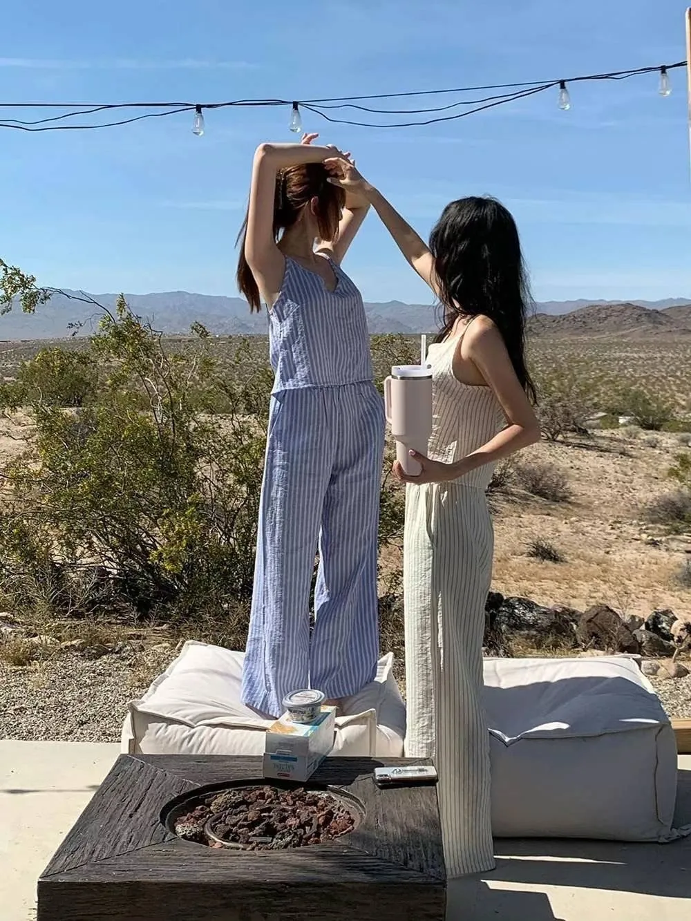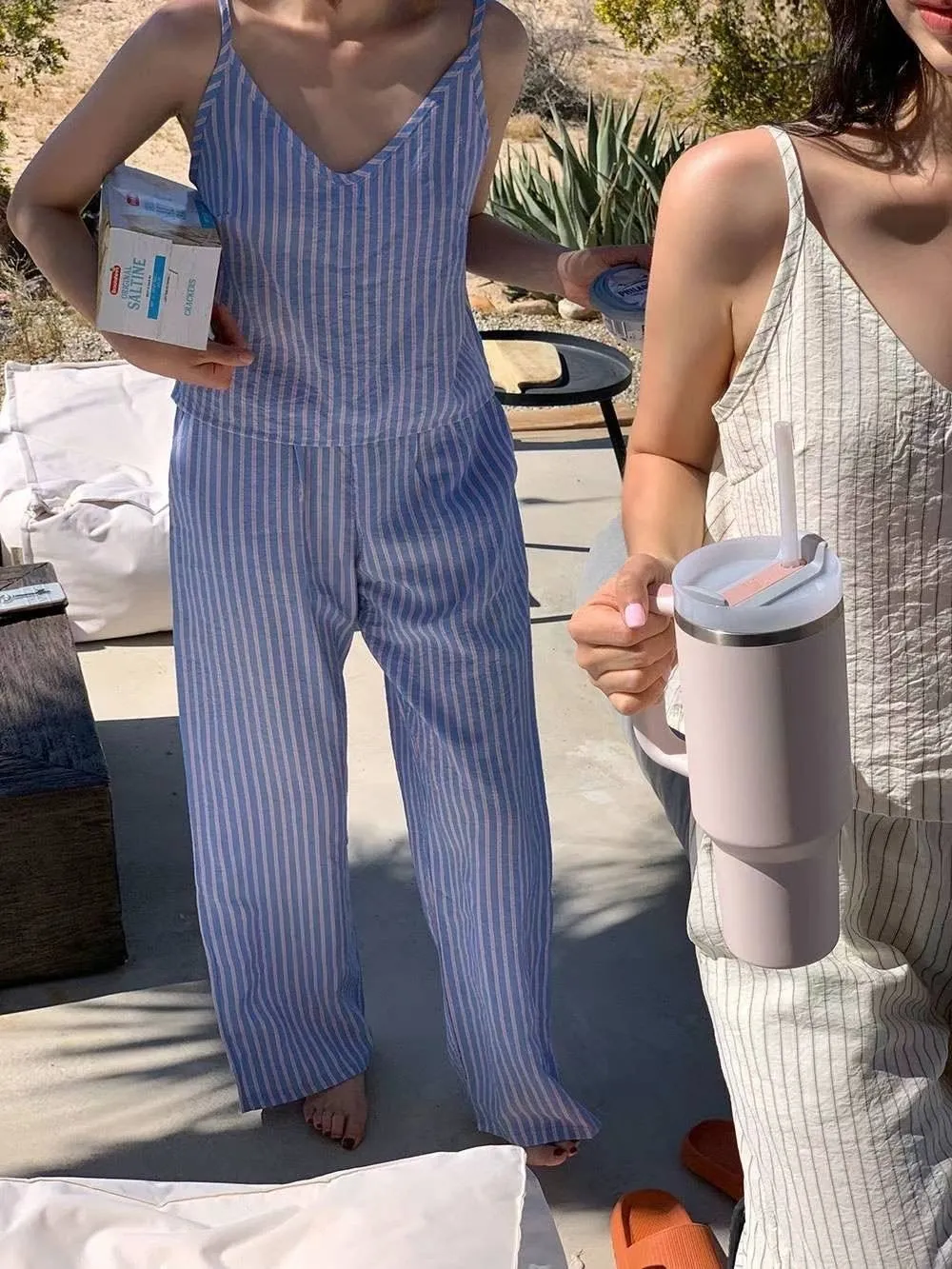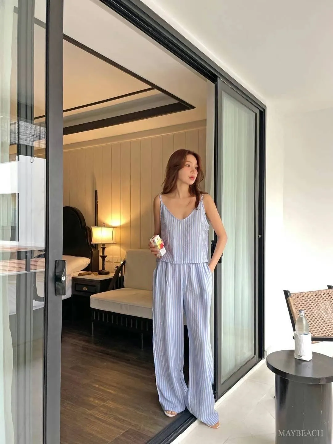 HJ886薄款條紋套裝(背心+長褲) 白 藍 官網價$1220 線上價$1190